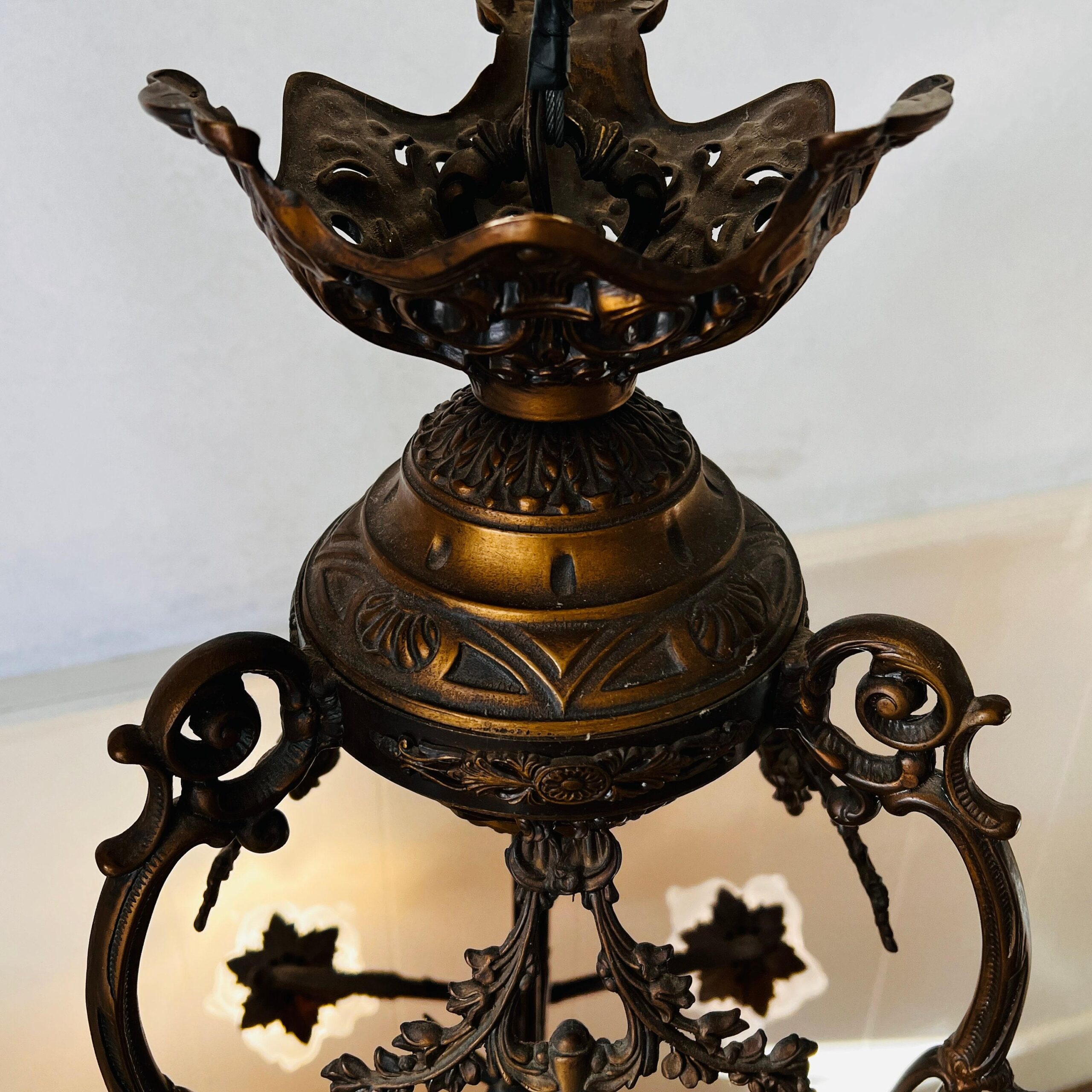 6-Arm Brass Chandelier with Depart de Peche Signed E. Moisant Inspired Lighting