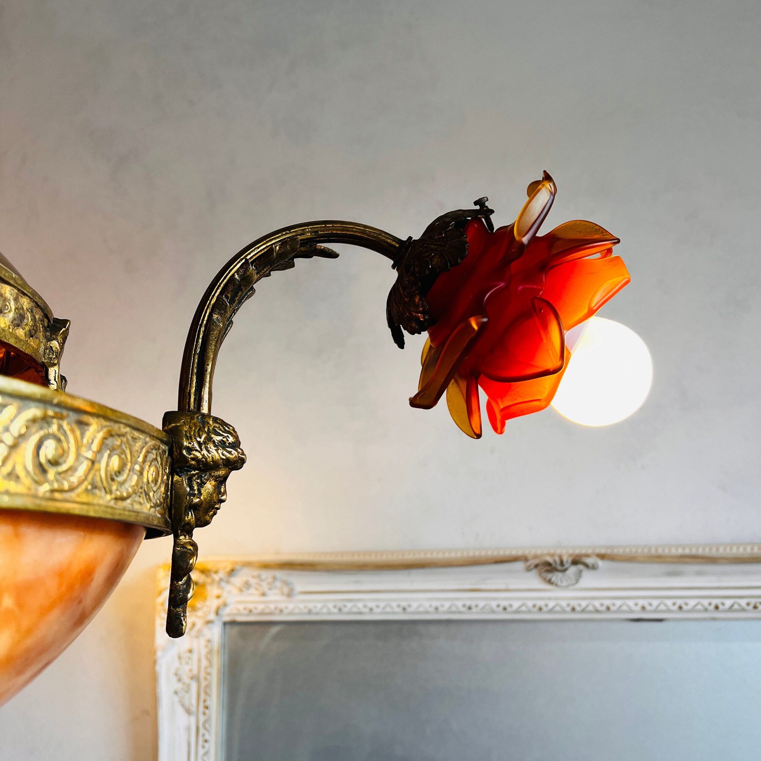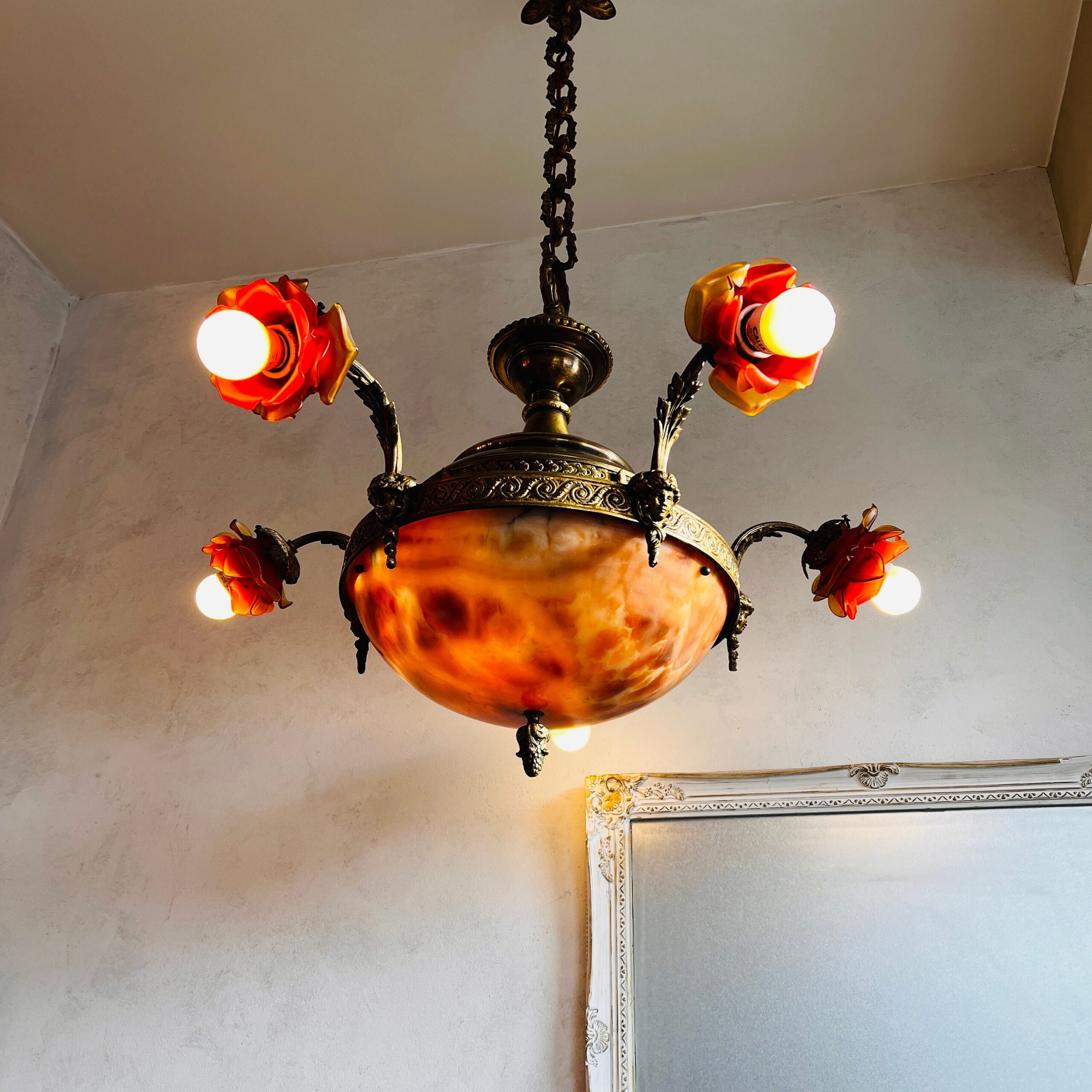 French Rococo Chandelier with Vianne Glass Shades – Louis XV Gold Tone 5-Light Fixture