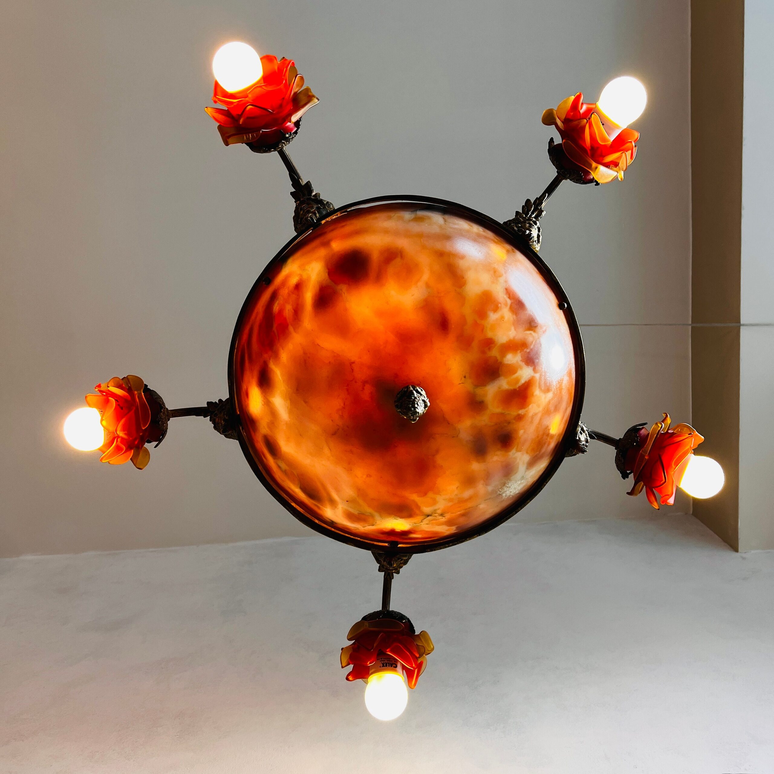 • Five gracefully curved arms with scalloped Vianne glass shades