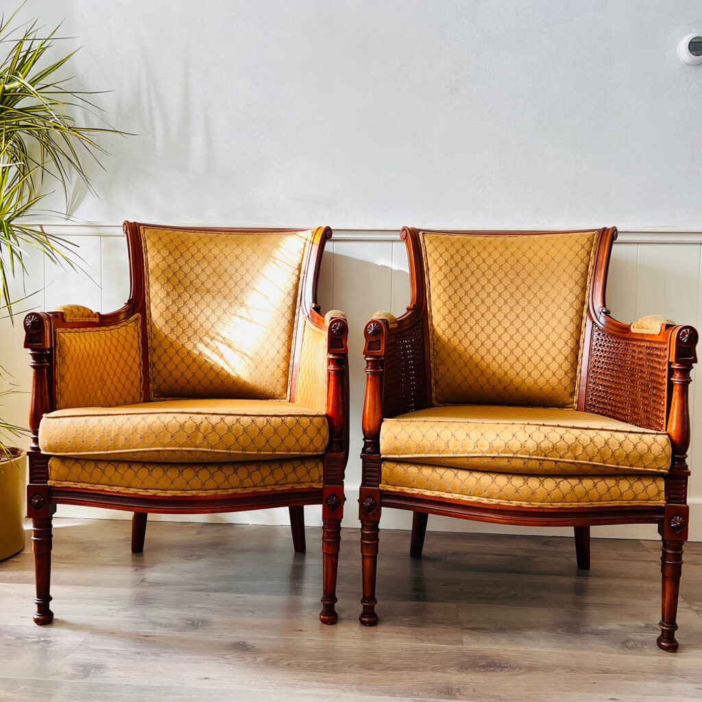 • Period-authentic Louis XV silhouette with floral carvings and curved arms