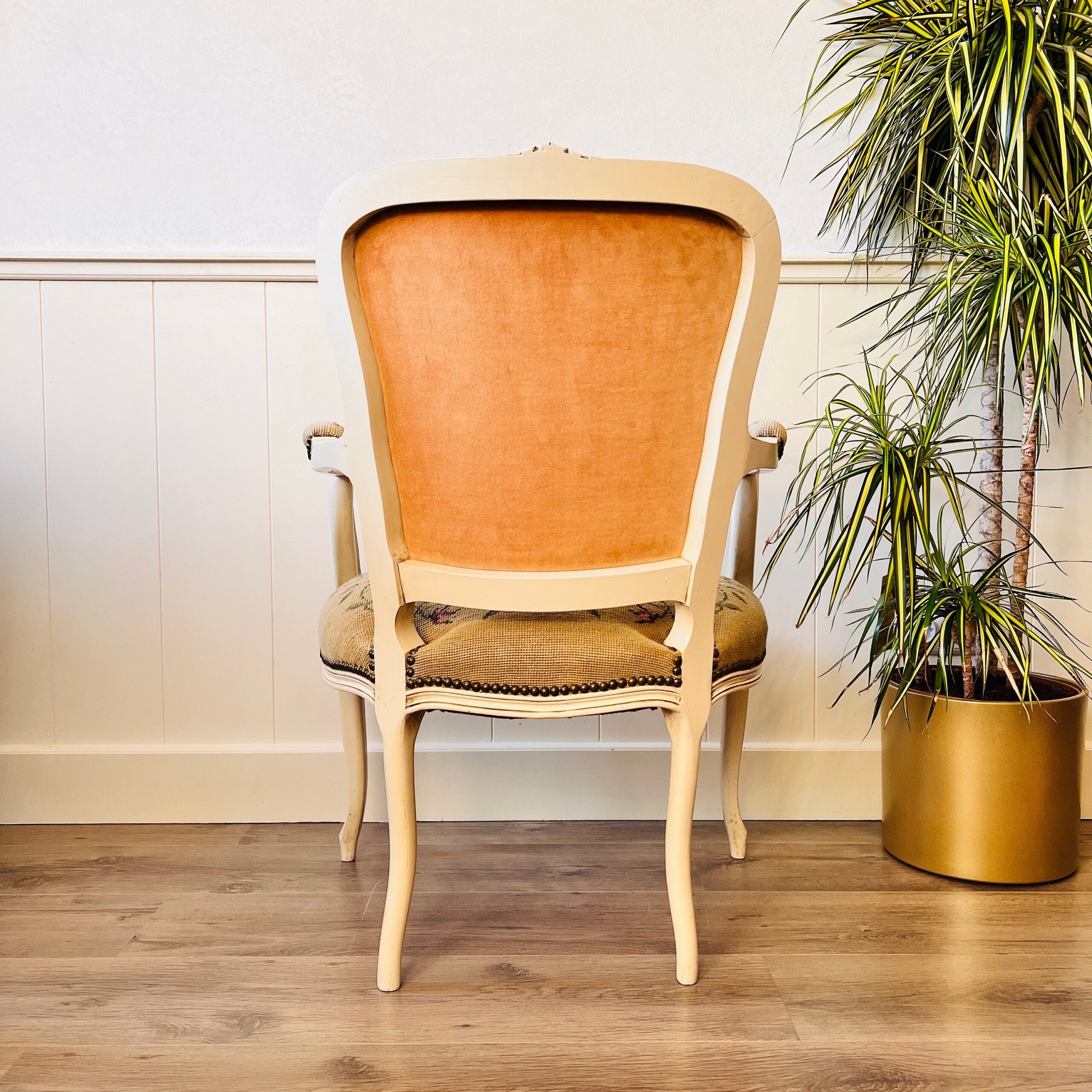 An heirloom in form and feeling, this c.1920 French armchair brings the elegance of Louis XV styling into today’s interiors. Featuring graceful cabriole legs, ornate gilded detailing, and an intricately woven tapestry seat, it radiates timeless refinement without being fussy. Whether placed in a reading corner, beside your vanity, or used as occasional seating in a parlor, it exudes charm and quiet grandeur.