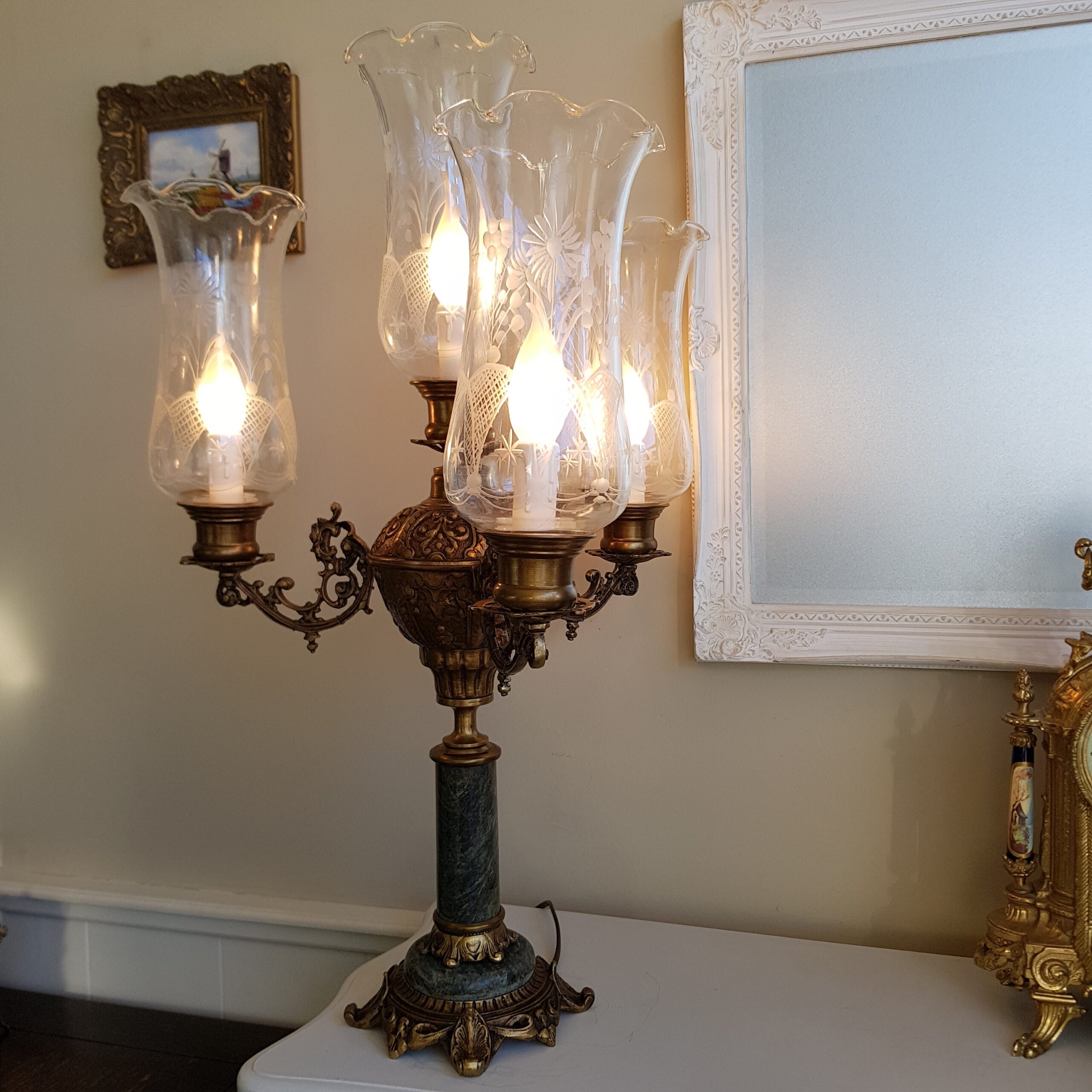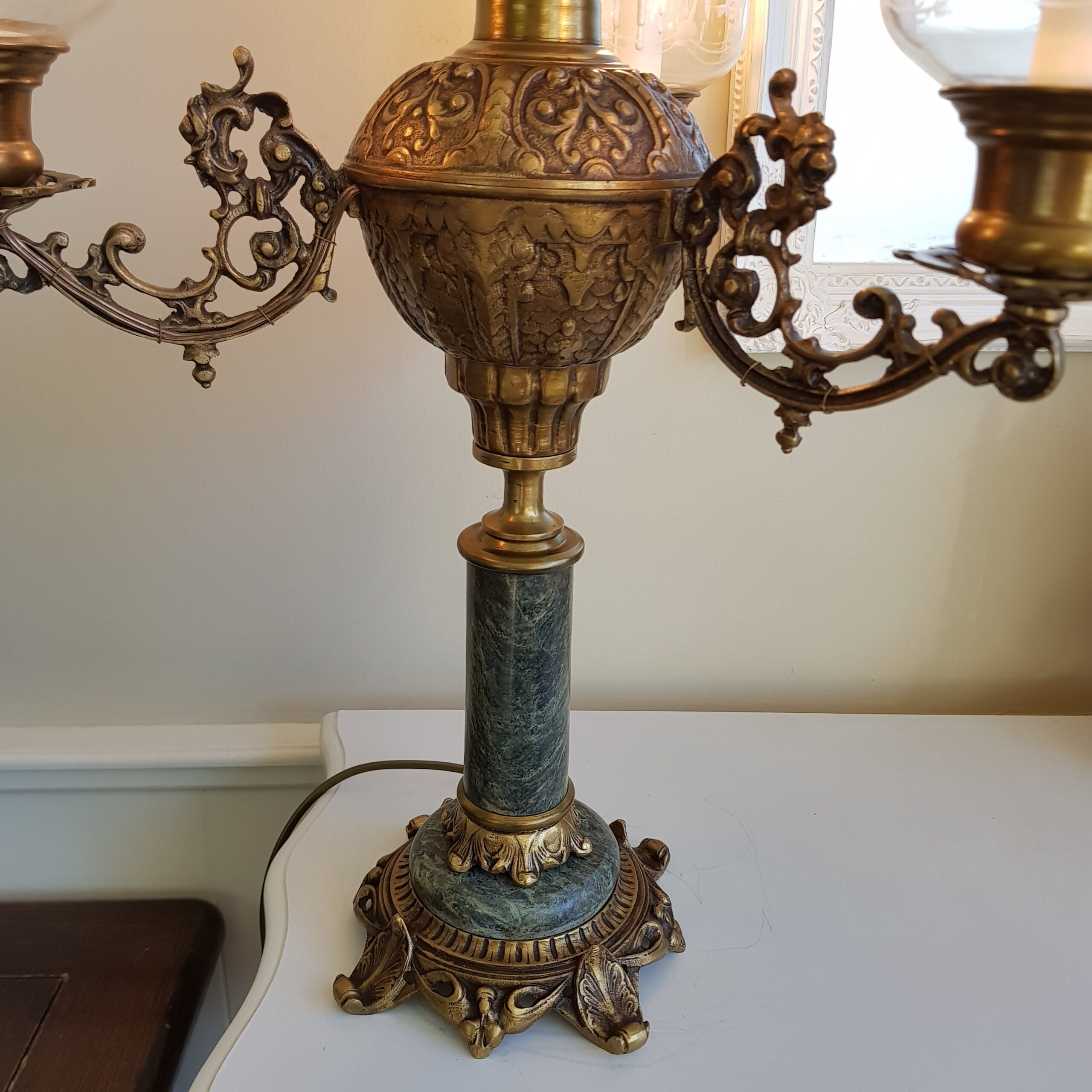 Bronze and Green Marble Column Table Lamp – Mid Century Corinthian Lighting