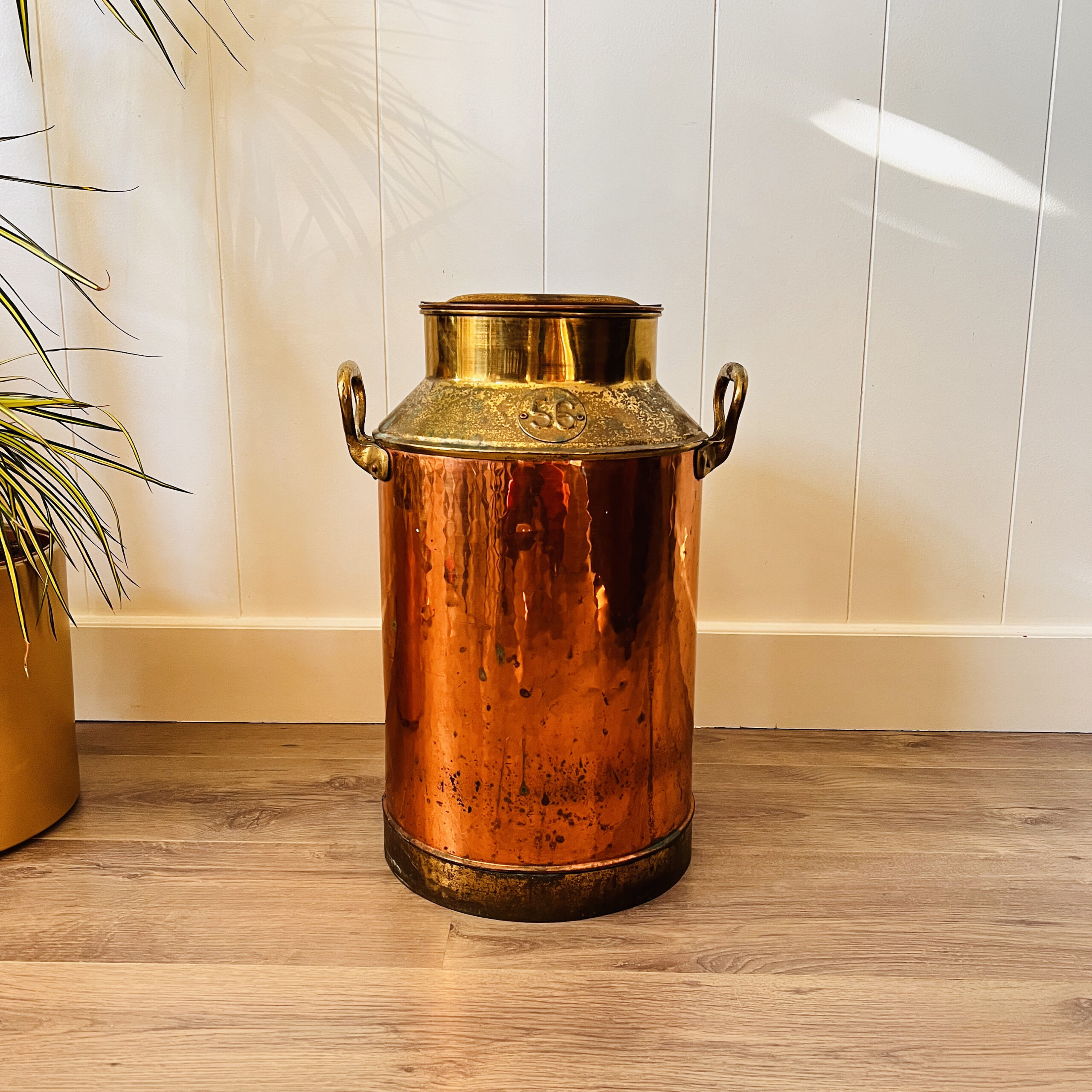 Large Copper Jug Umbrella Stand: Rustic 70s Farmhouse Decor
