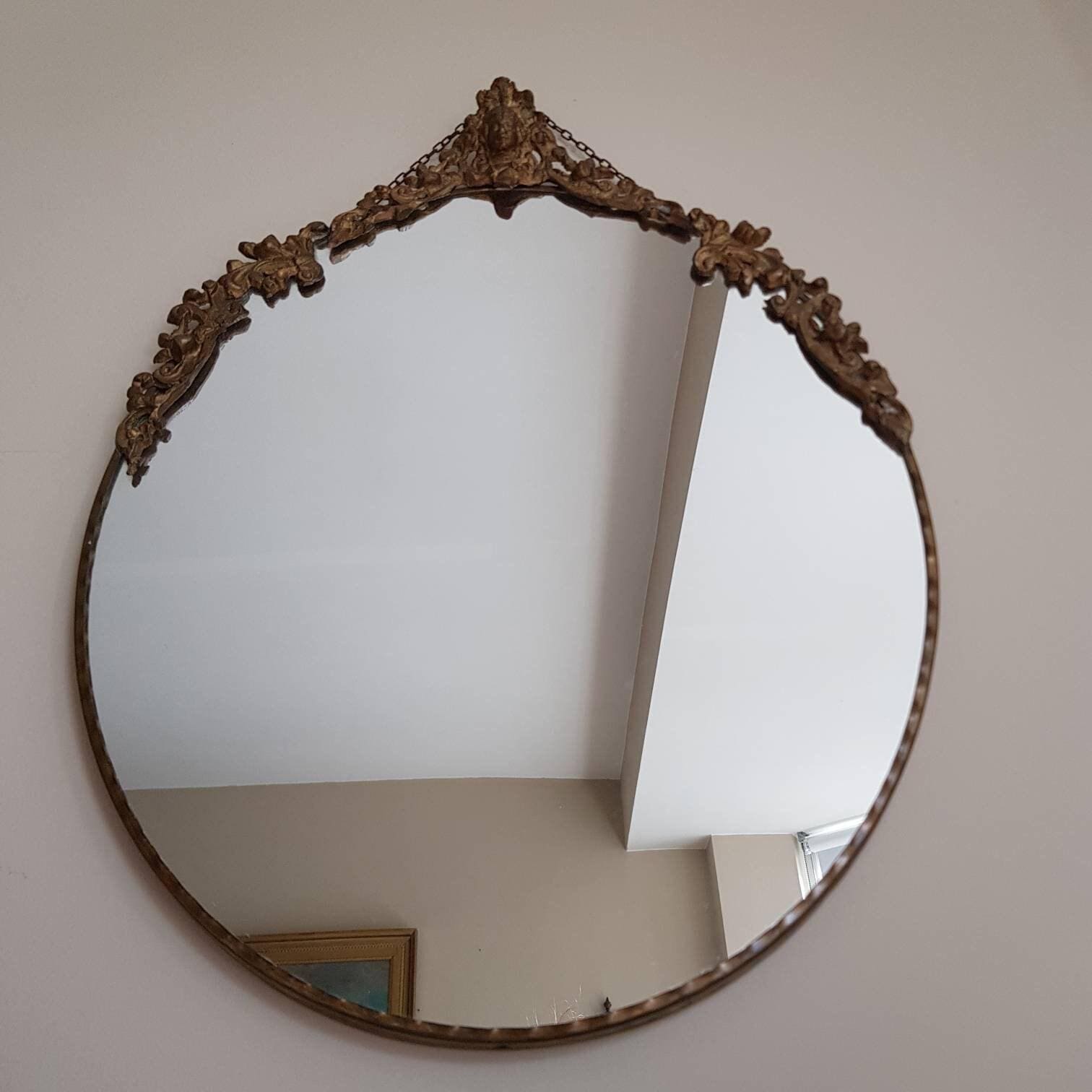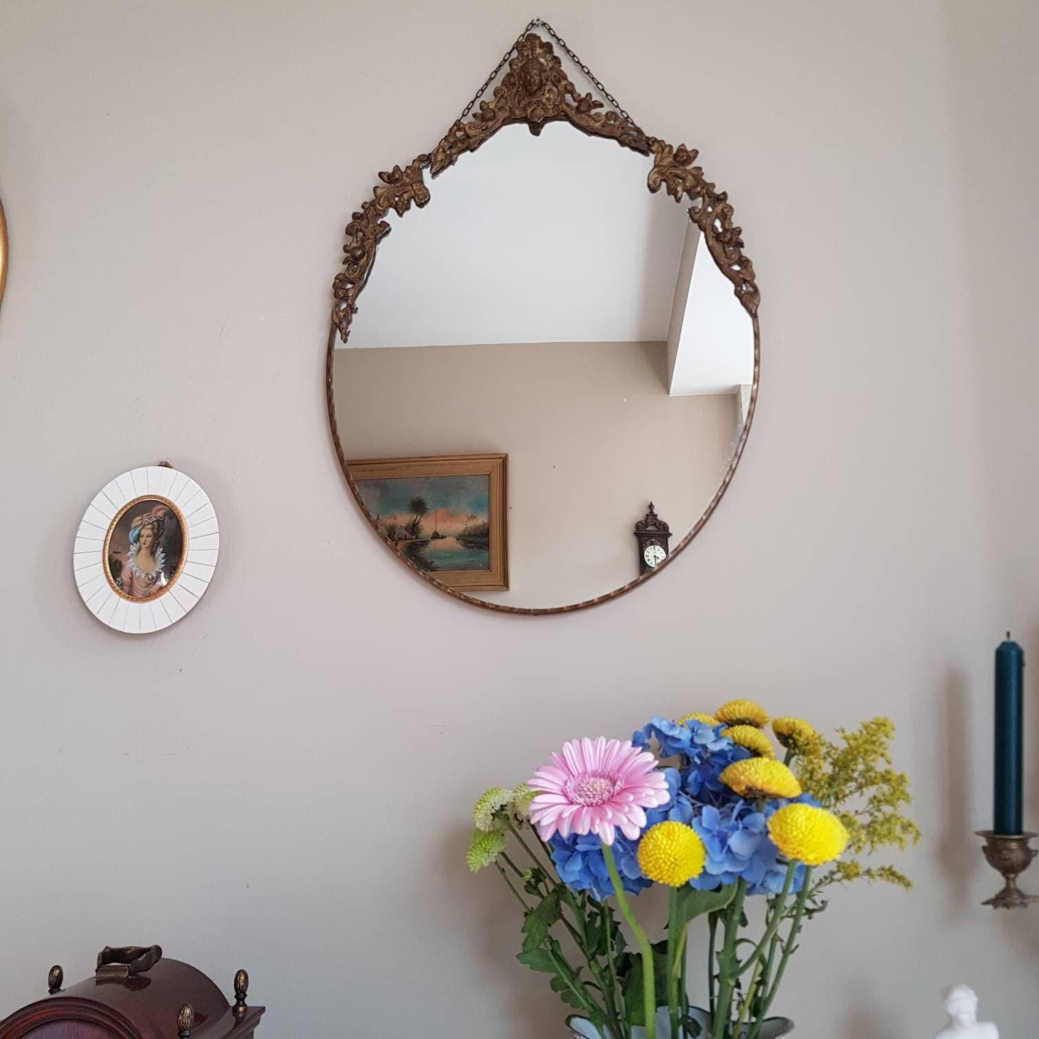 Baroque Oval Wall Mirror with Ornate Crest – Gilt Frame, Rococo Vanity Decor
