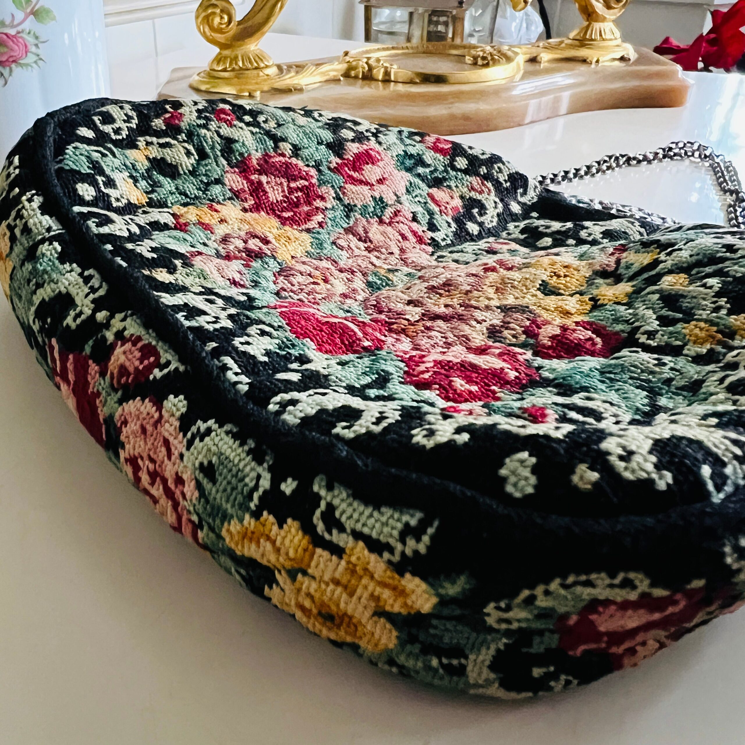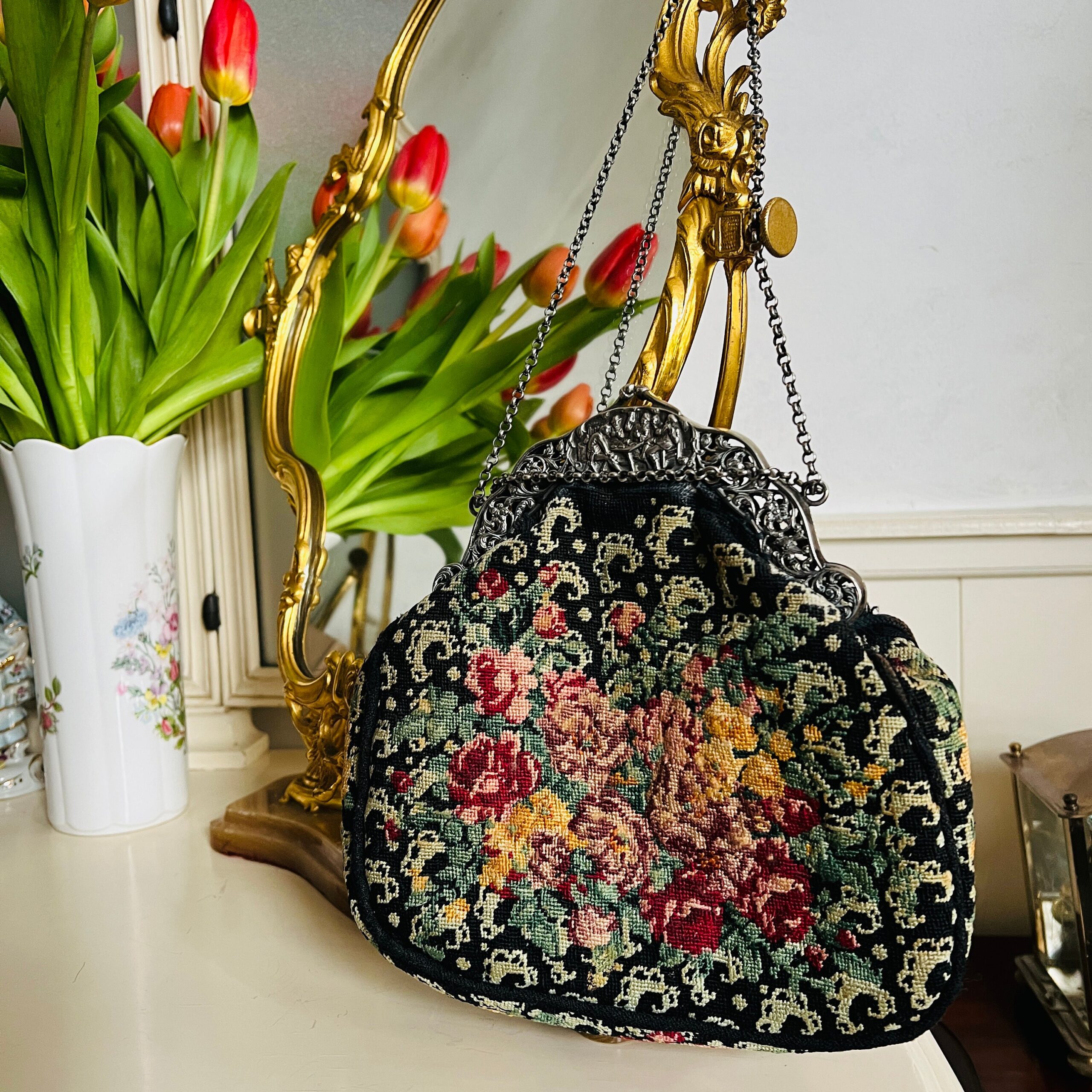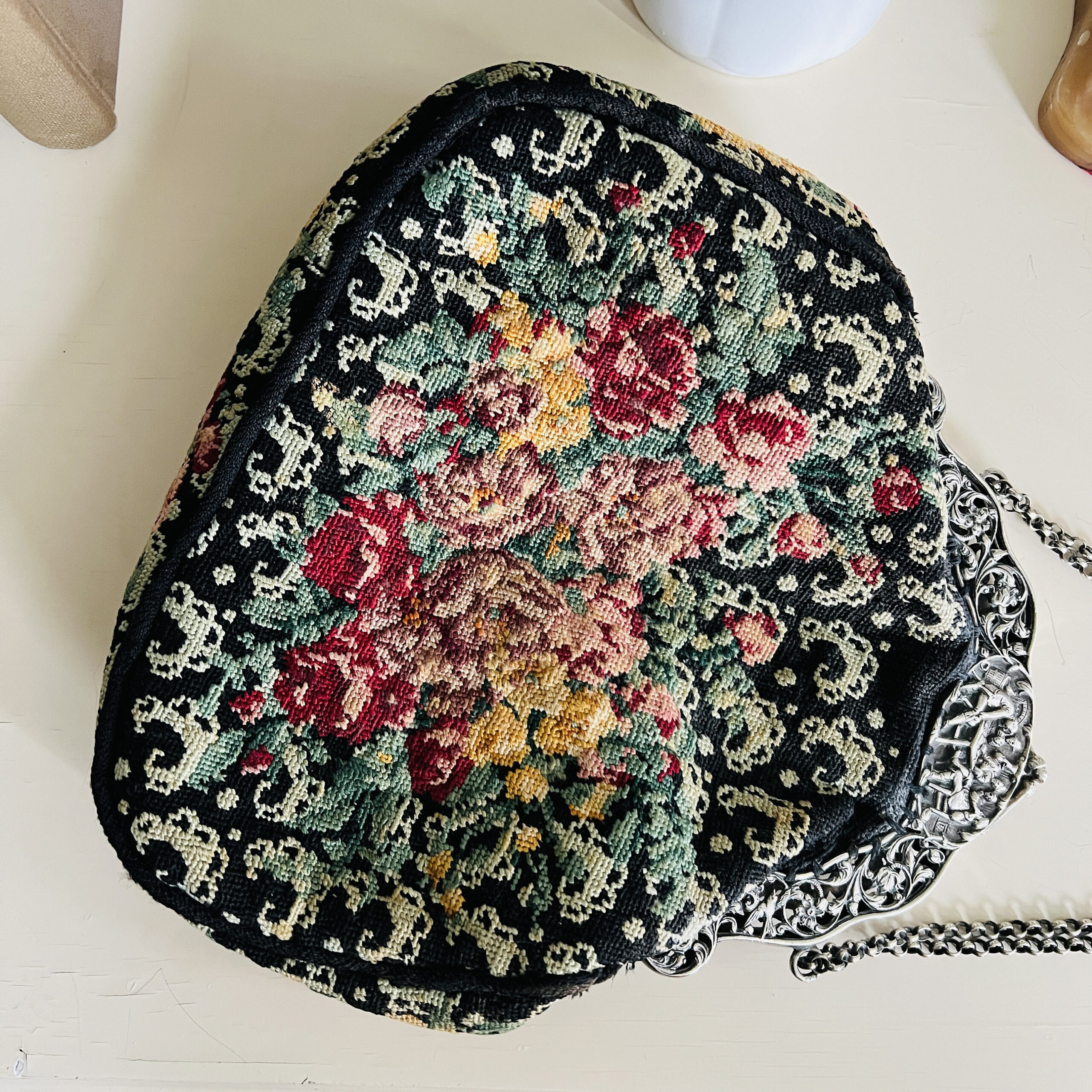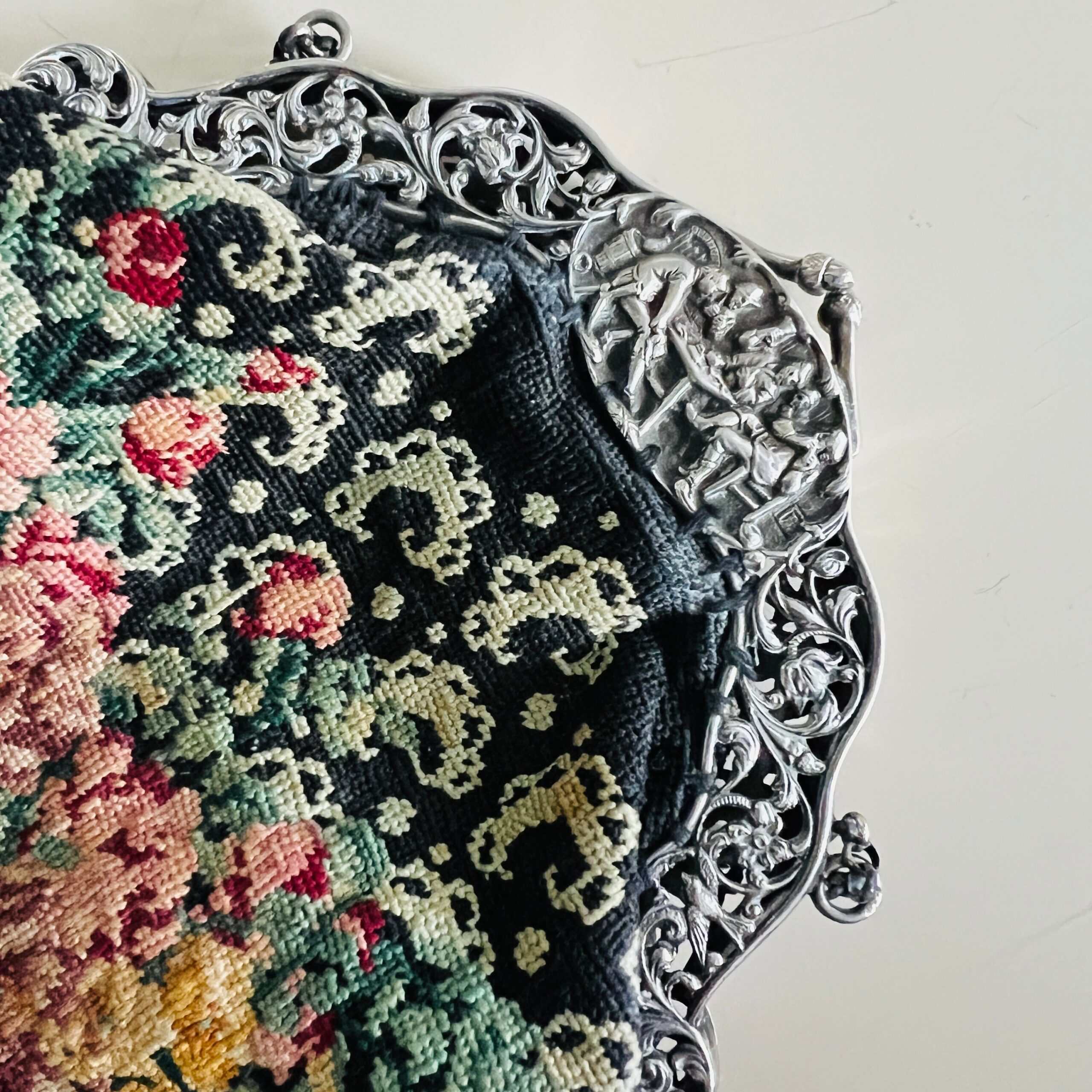 This antique petit-point handbag is made with a richly worked bracket, a unique silver frame model. Ideal for presentations, and events, this bag is just throwing you back in the good old style.