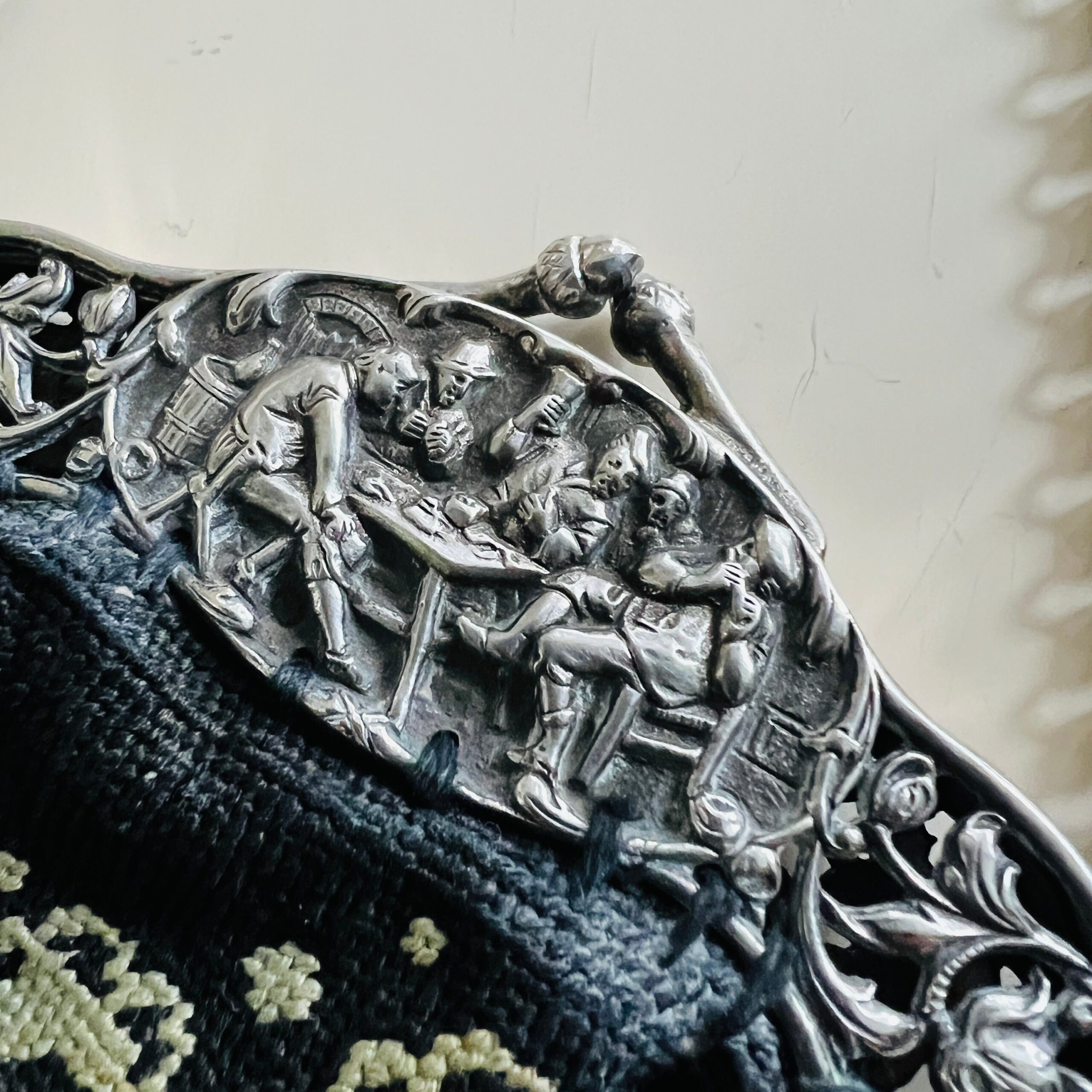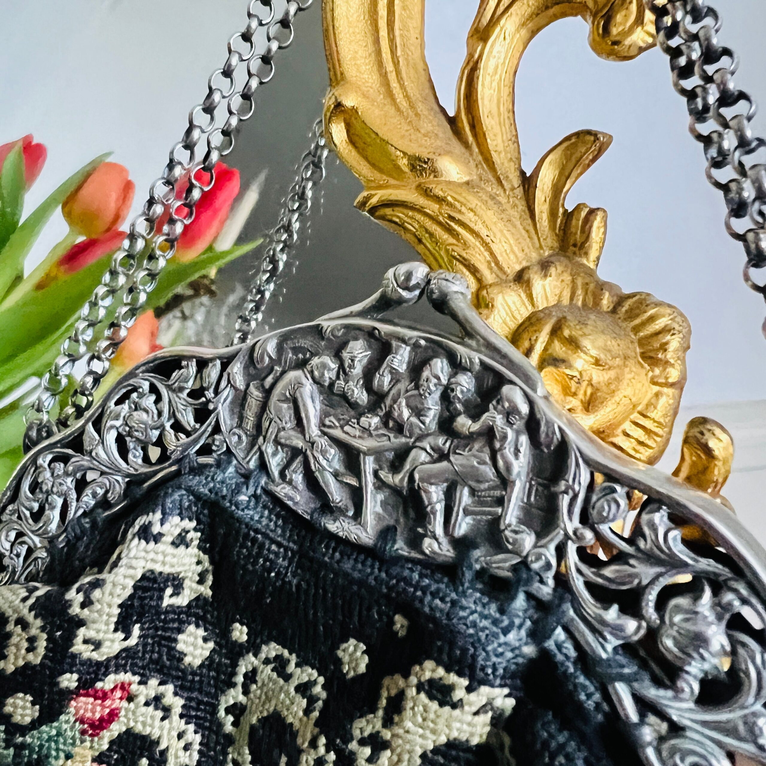 Black Silver Purse, handmade petit-point model with antique silver hallmarks.