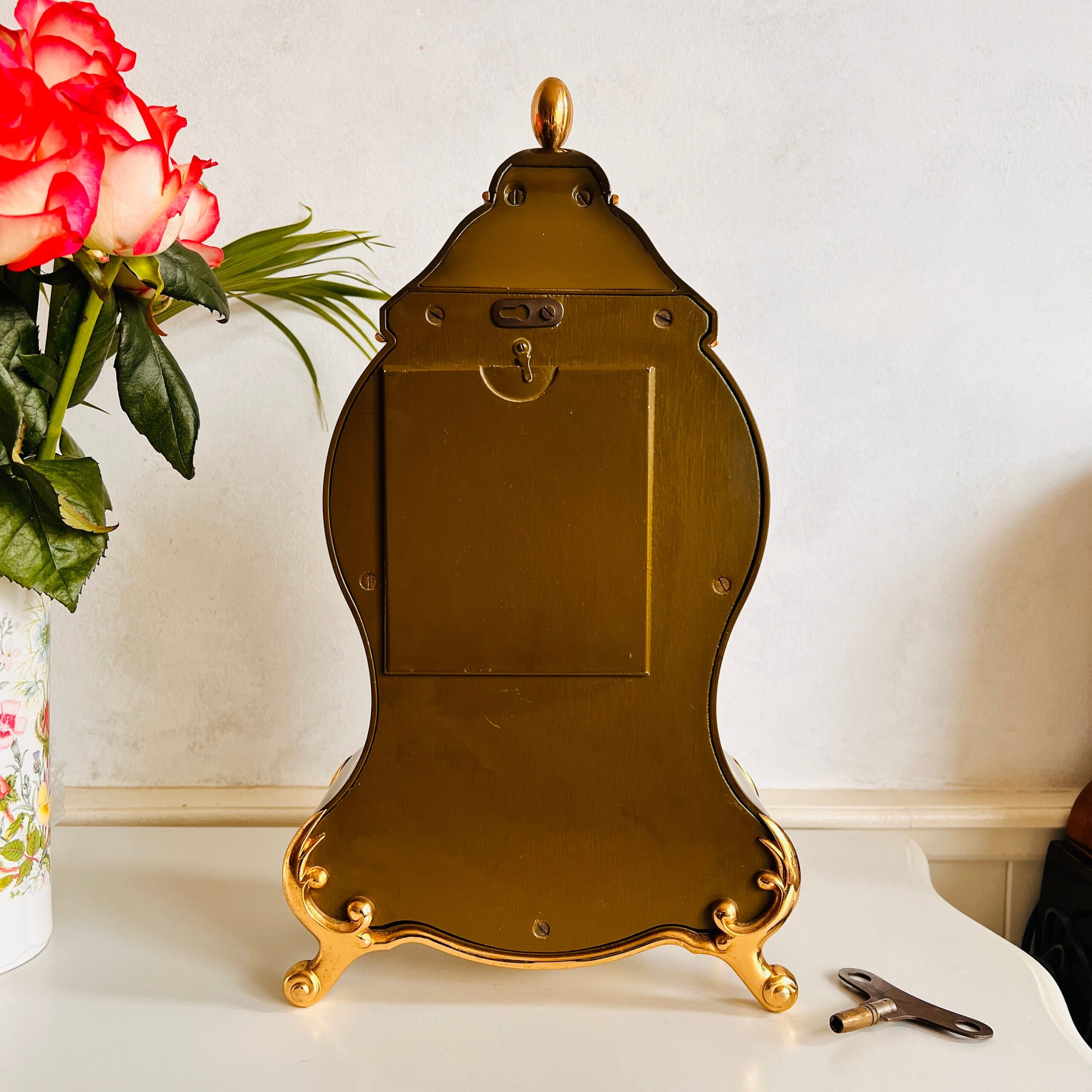 Bracket Mantel Clock with Pendulum – Comtesse Brass Shelf Clock, Fireplace Decor, Midcentury Charm