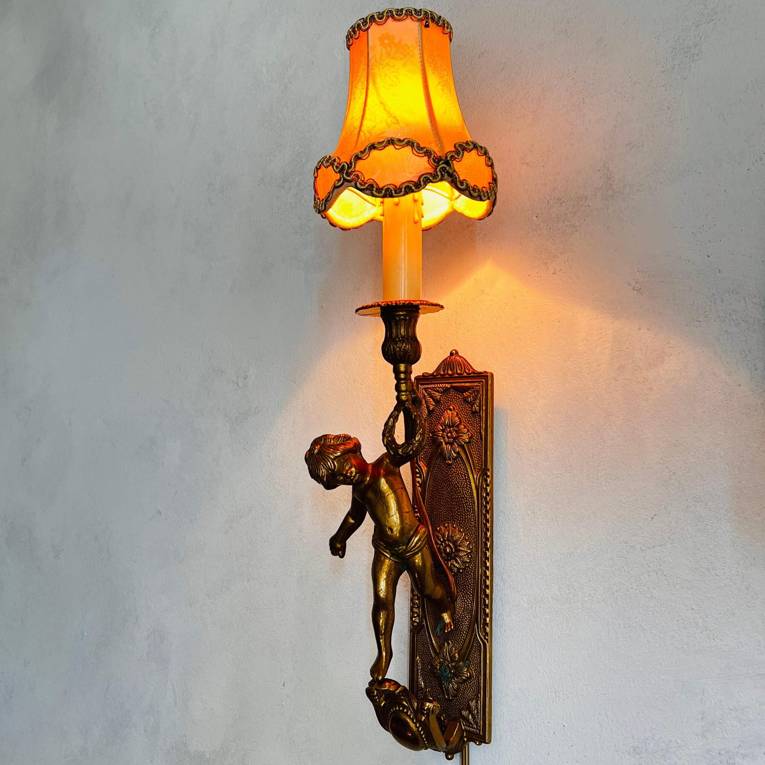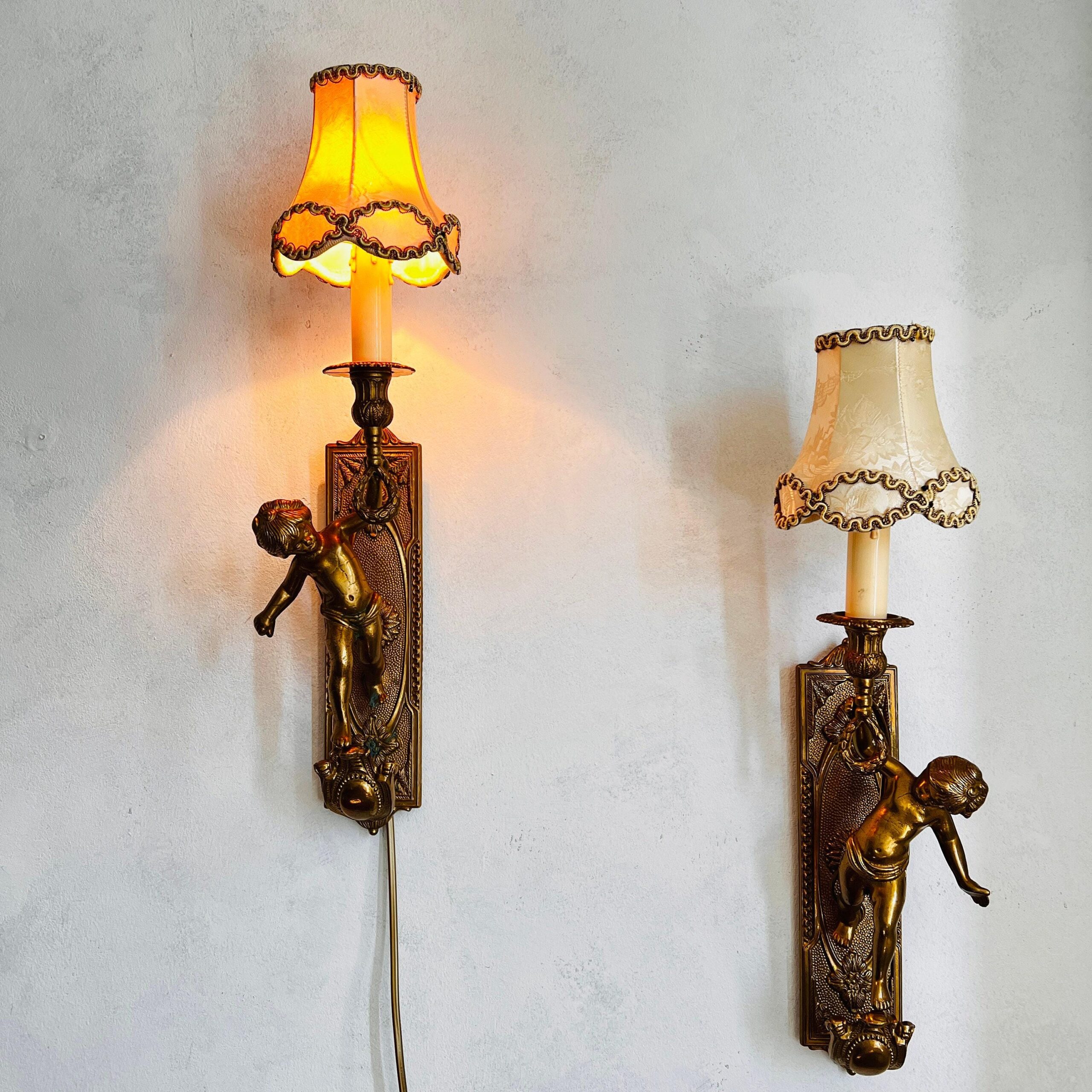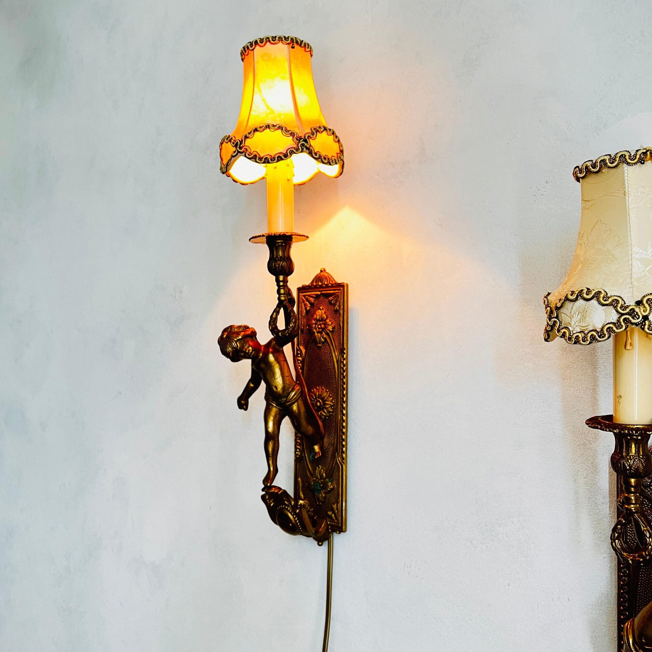Bronze Putti Wall Sconces – Italian Cherub Candle Holders, Brevettato Pair