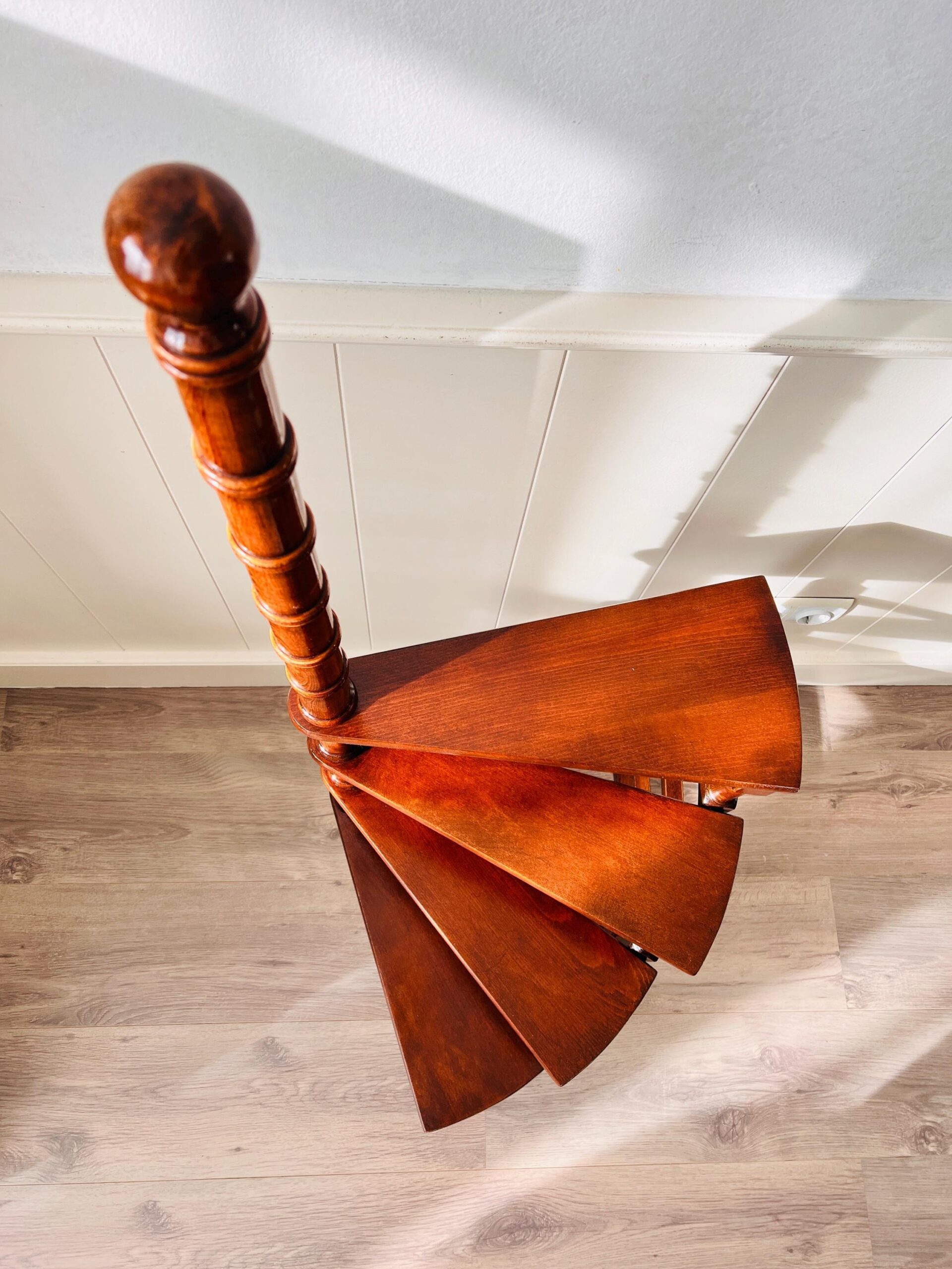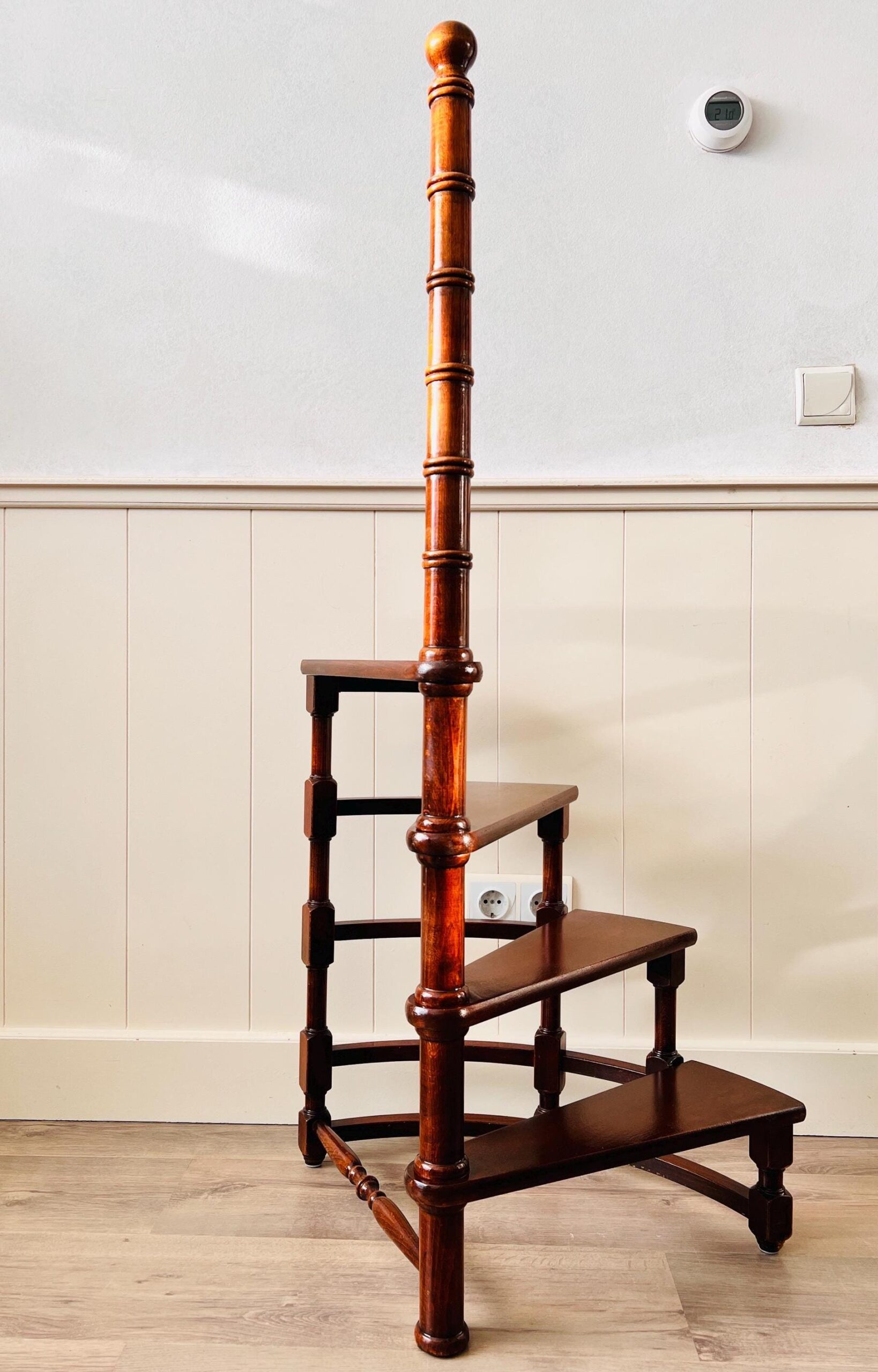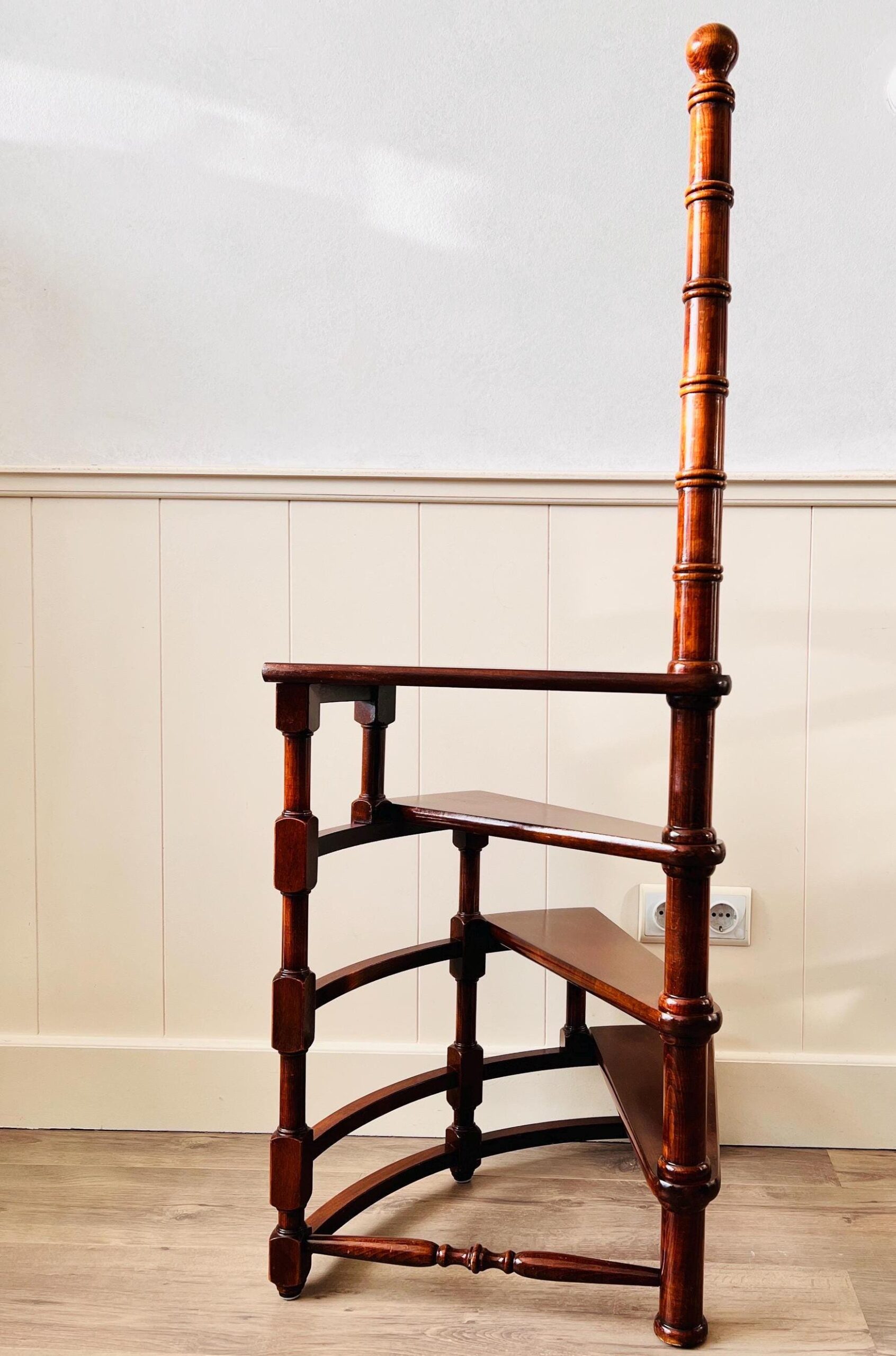 Carved Wood Spiral Library Ladder – Four Tiers, Antique Semi-Circular Design