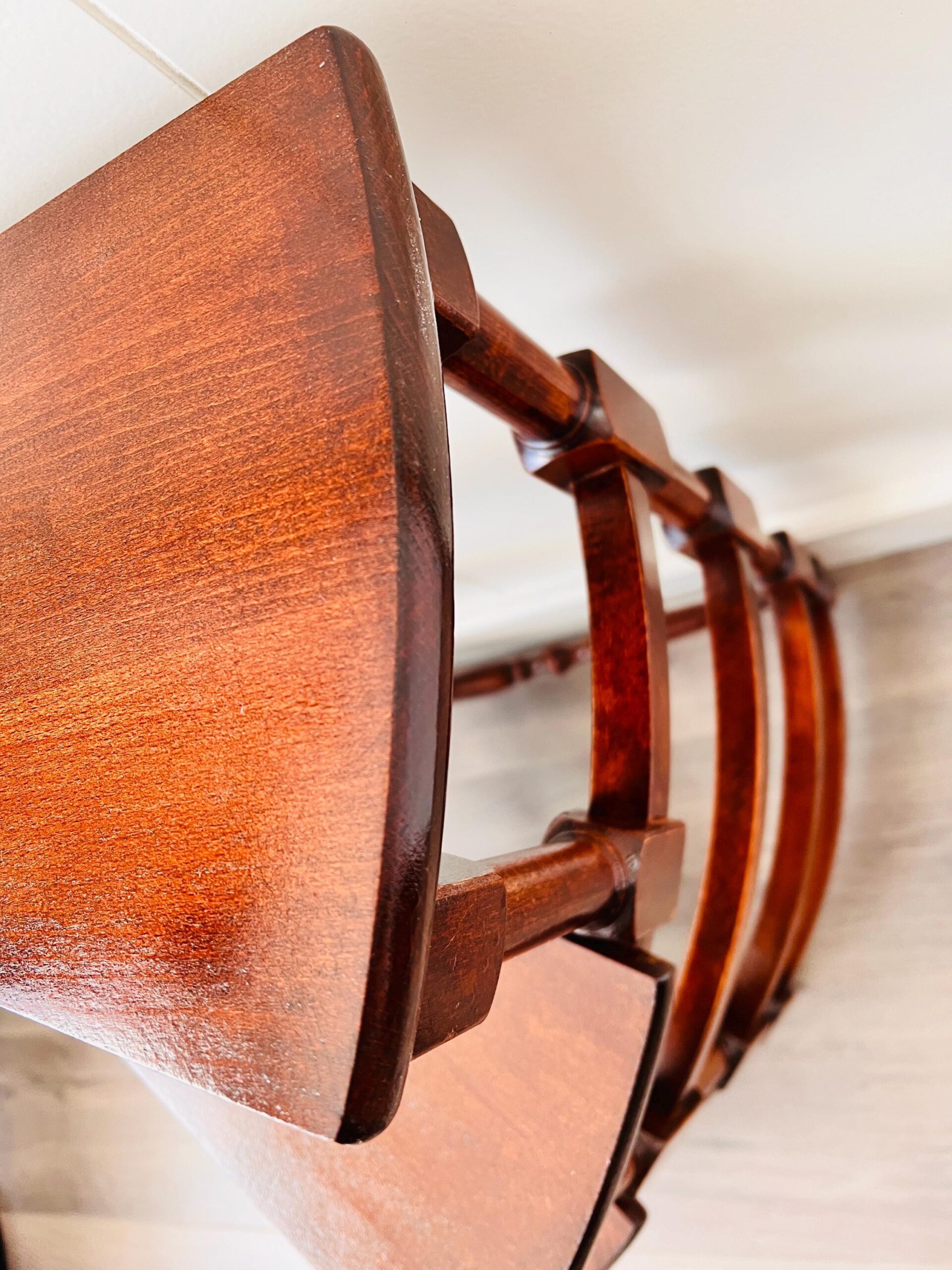 A sculptural feat of craftsmanship and function, this four-tier wooden library ladder is more than just a step stool – it’s a graceful spiral of carved elegance, offering old-world charm and practical appeal. Whether placed beside a bookcase, in a reading nook, or used as a unique display piece, its semi-circular silhouette catches the eye from every angle.