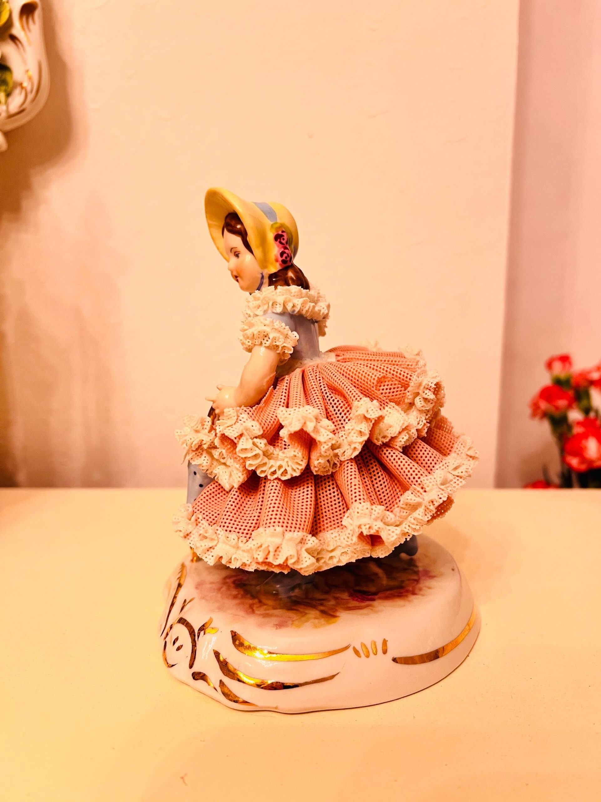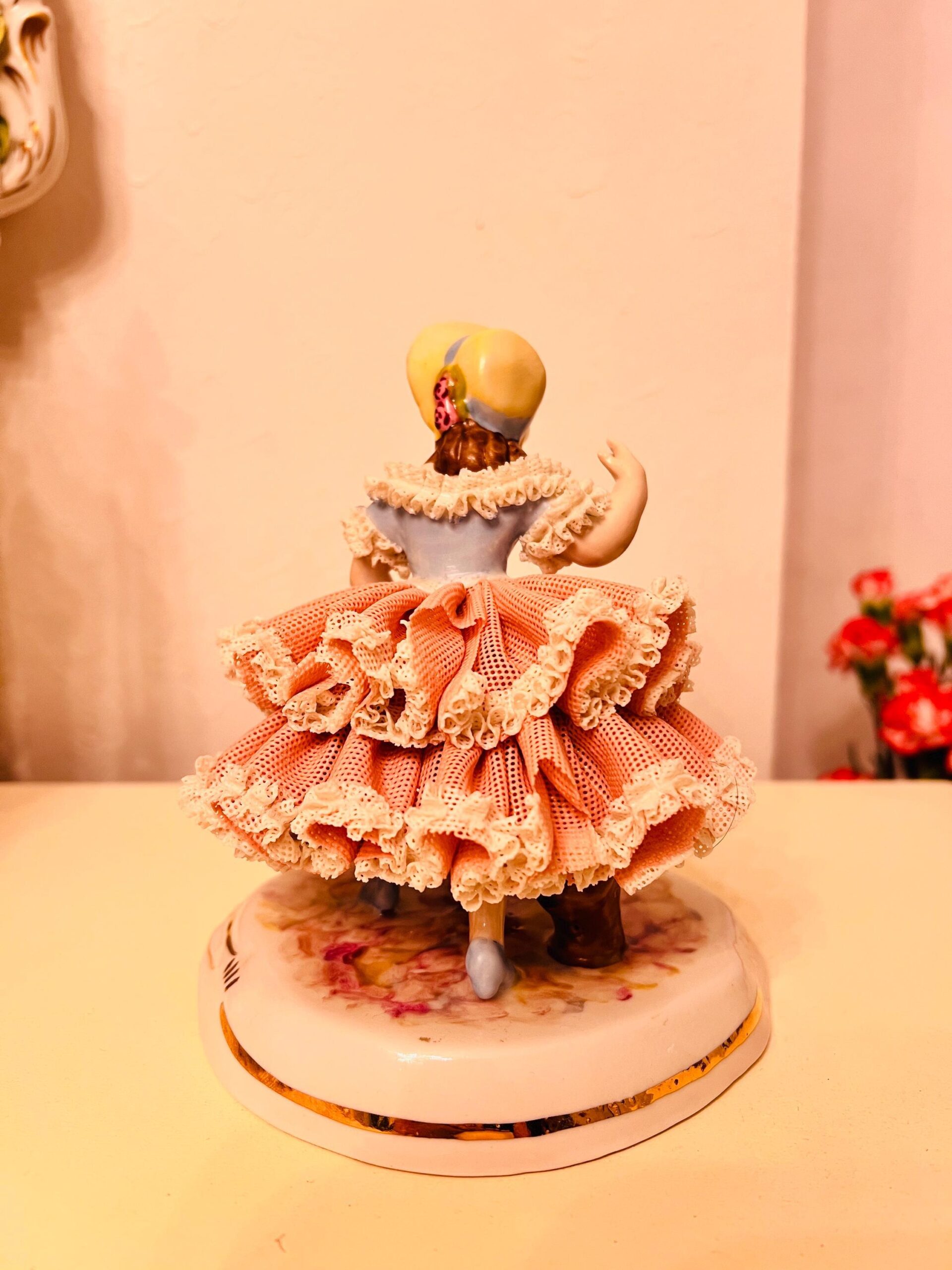 Crown Dresden Lace Porcelain Figurine – German Rococo Style