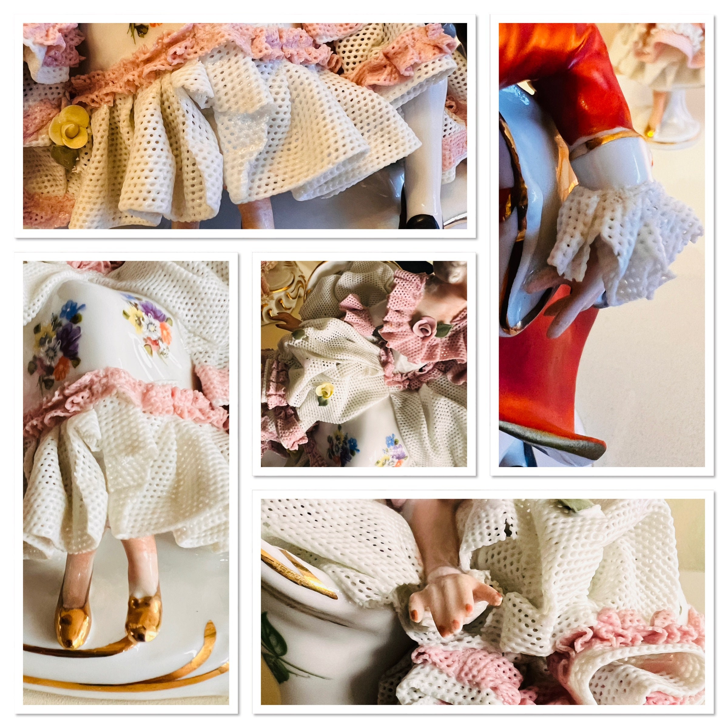 Dresden lace porcelain figurine man and woman. It is beautiful also for her fragility and representation, an exquisite porcelain figurine, in Victorian style.