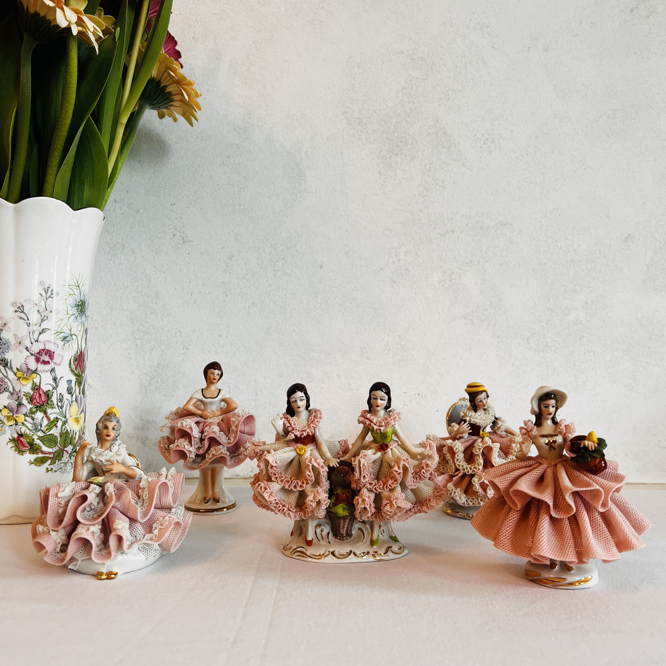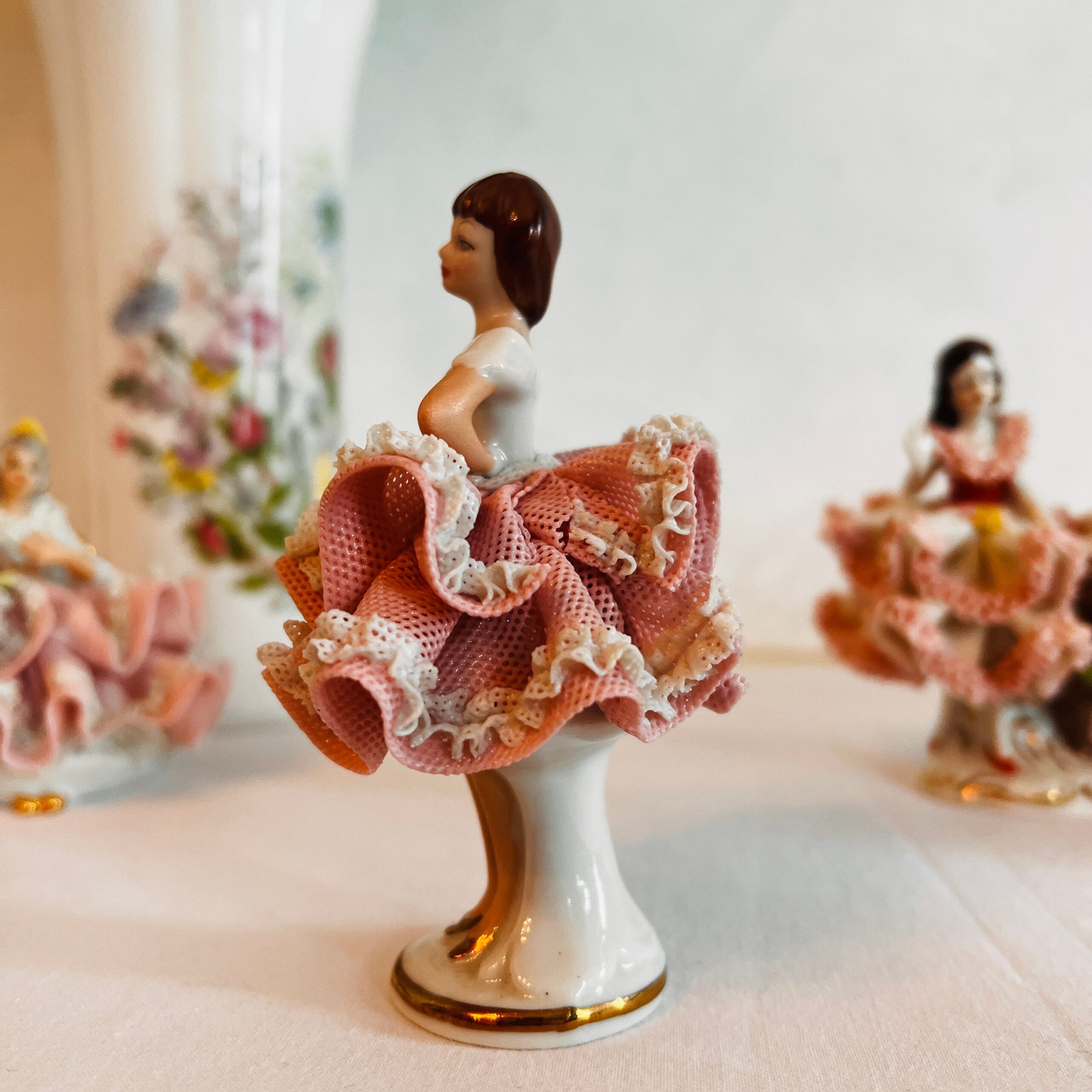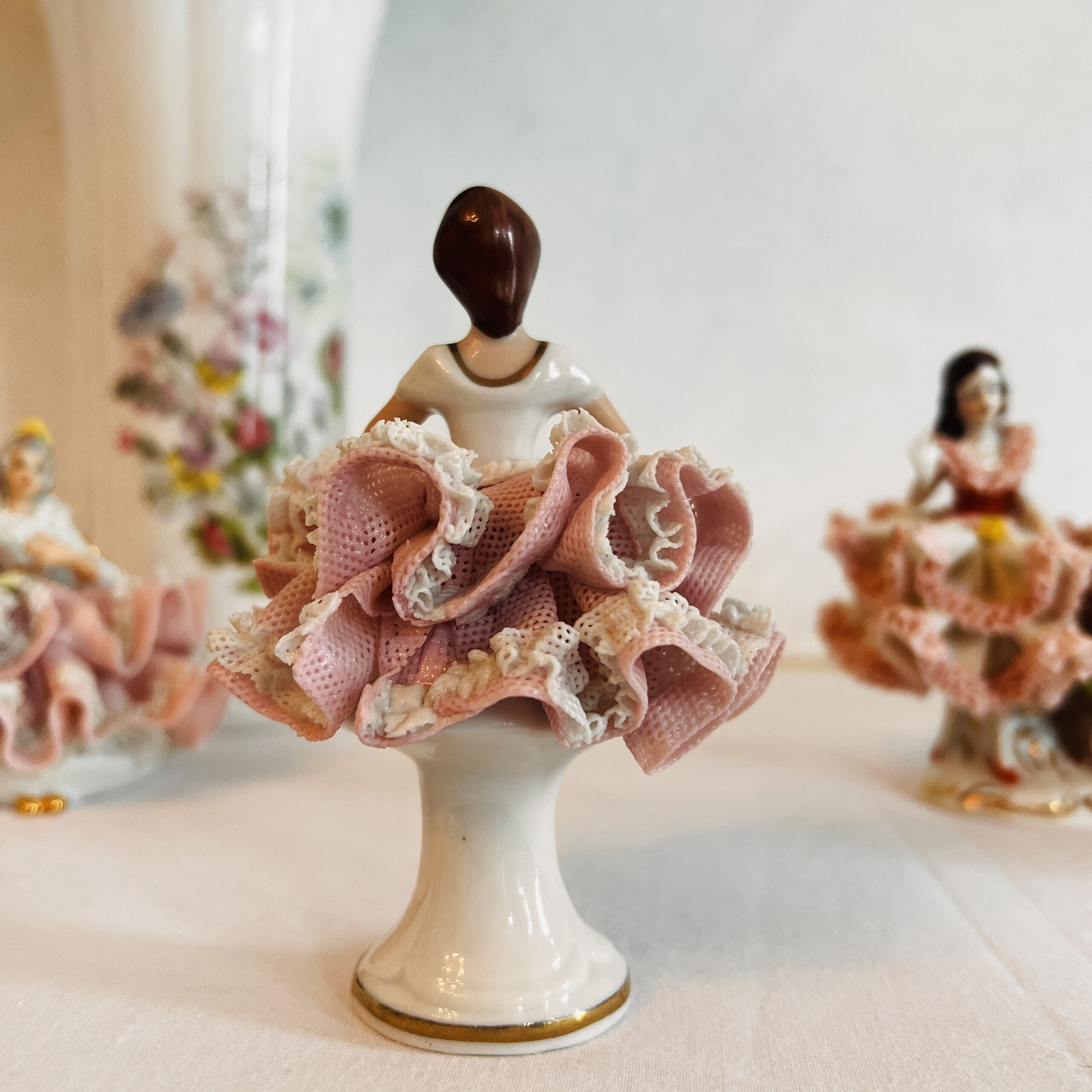 Dresden Lace Porcelain Figurine Vintage Collectible Item Nice gift Vanity Decor