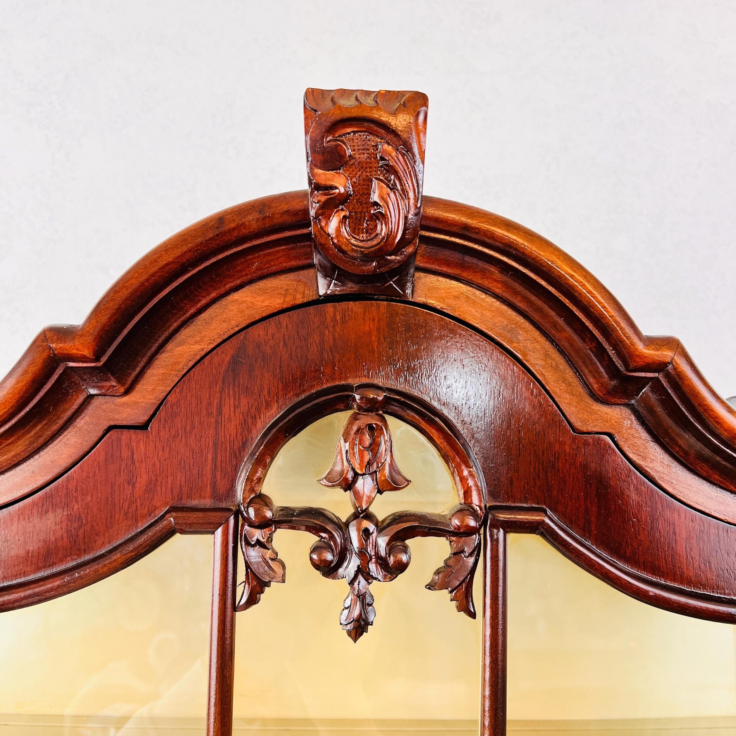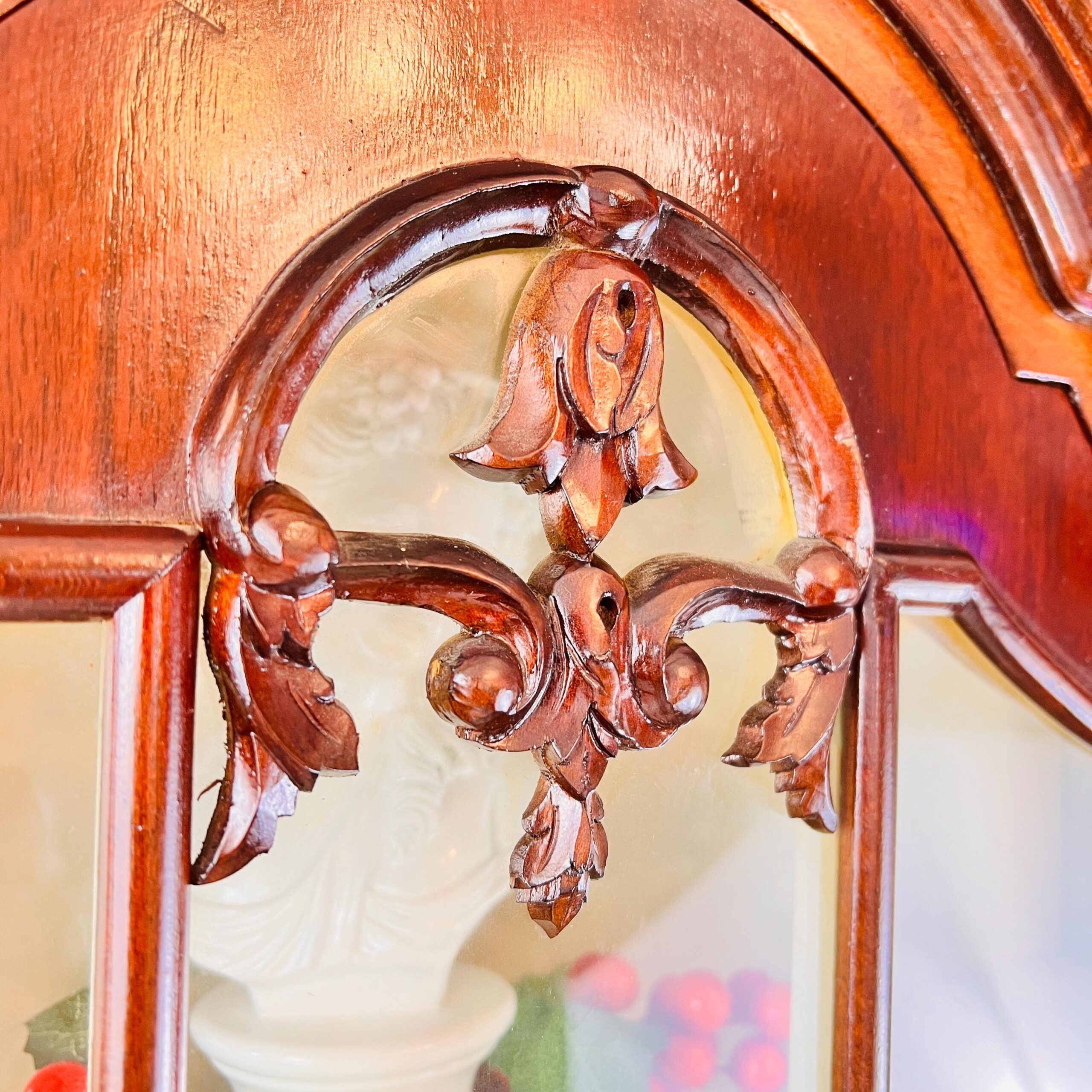 Simple in form yet rich in character, this vintage wooden wall cabinet is a charming way to display treasured finds behind glass. Featuring a Dutch-style silhouette and original working key, it’s perfect for showcasing collectible curios, small ceramics, or heirloom keepsakes in a hallway, bathroom, or cozy kitchen corner.