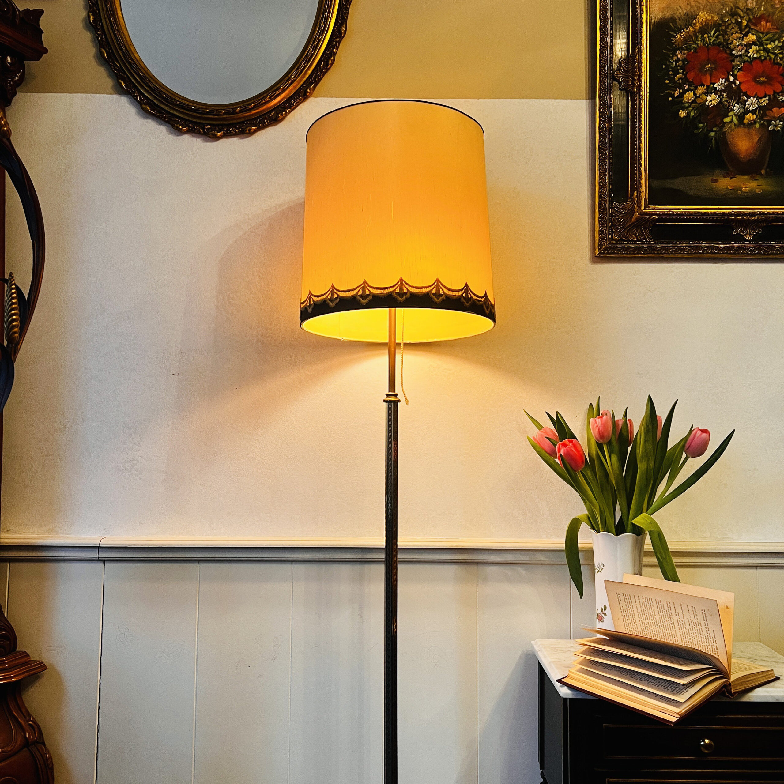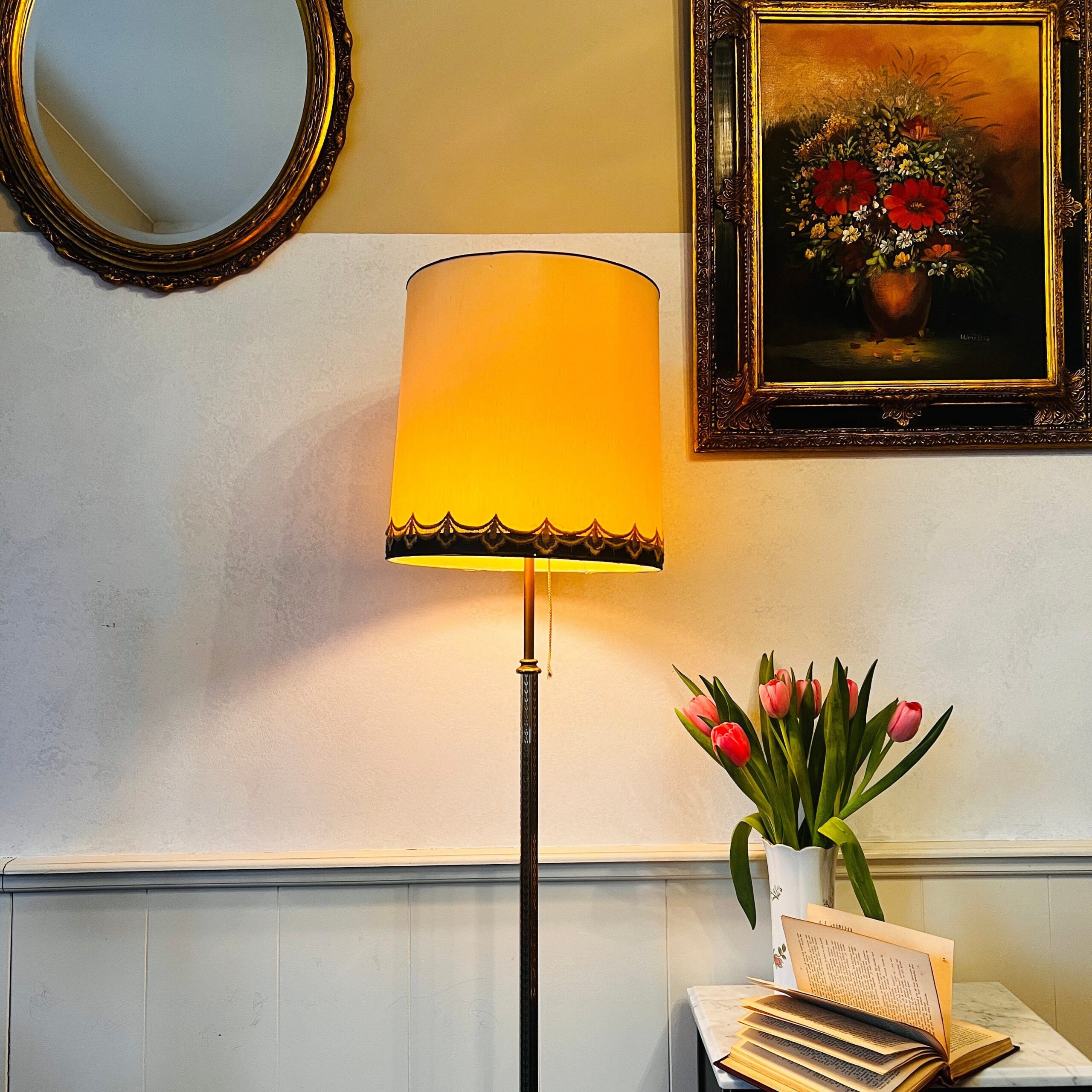 Elegant floor lamp, Aestetique stand lamp made of bronze/brass with 2 lights and a big lampshade