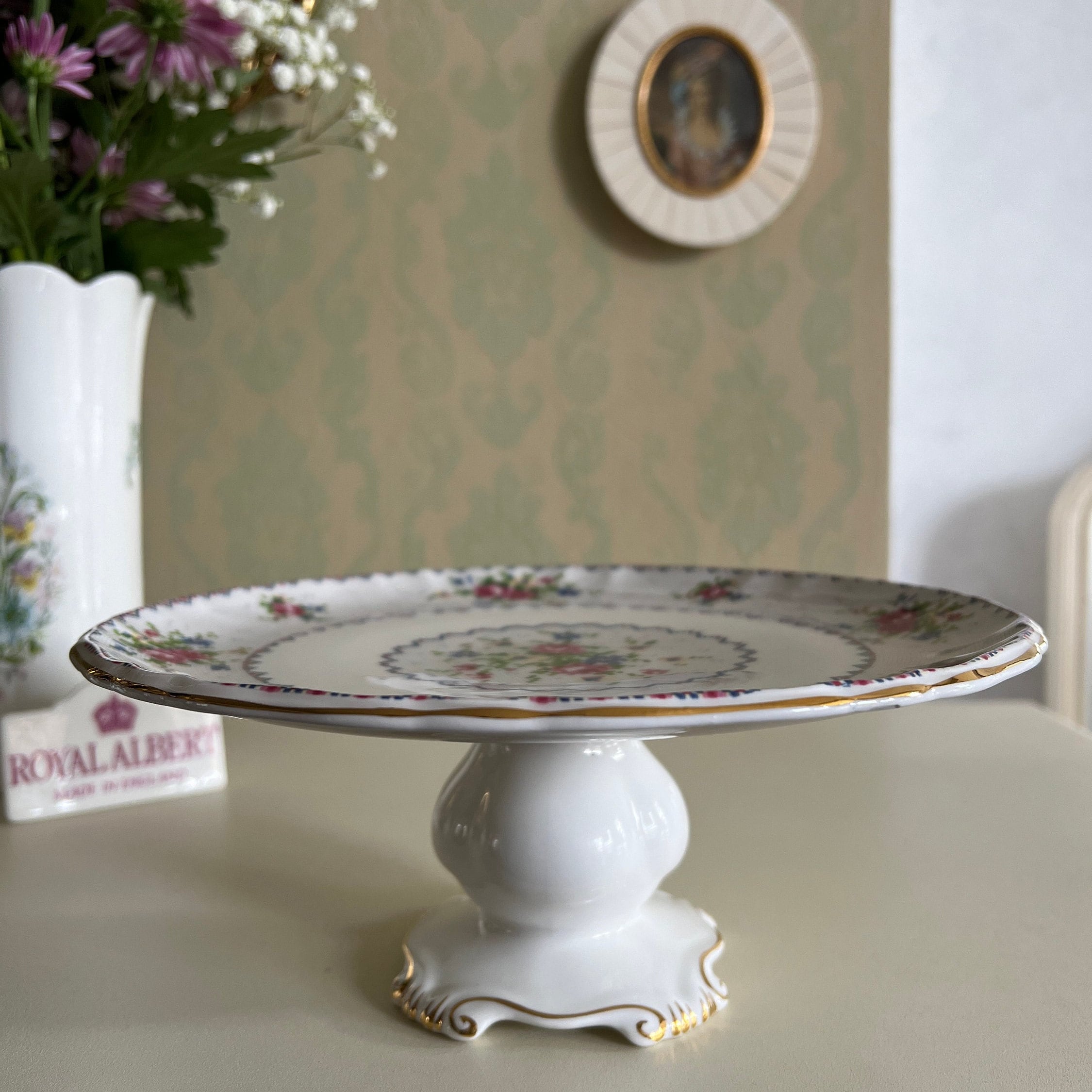 Porcelain Pedestal Dish – Royal Albert Petit Point Comport, English China