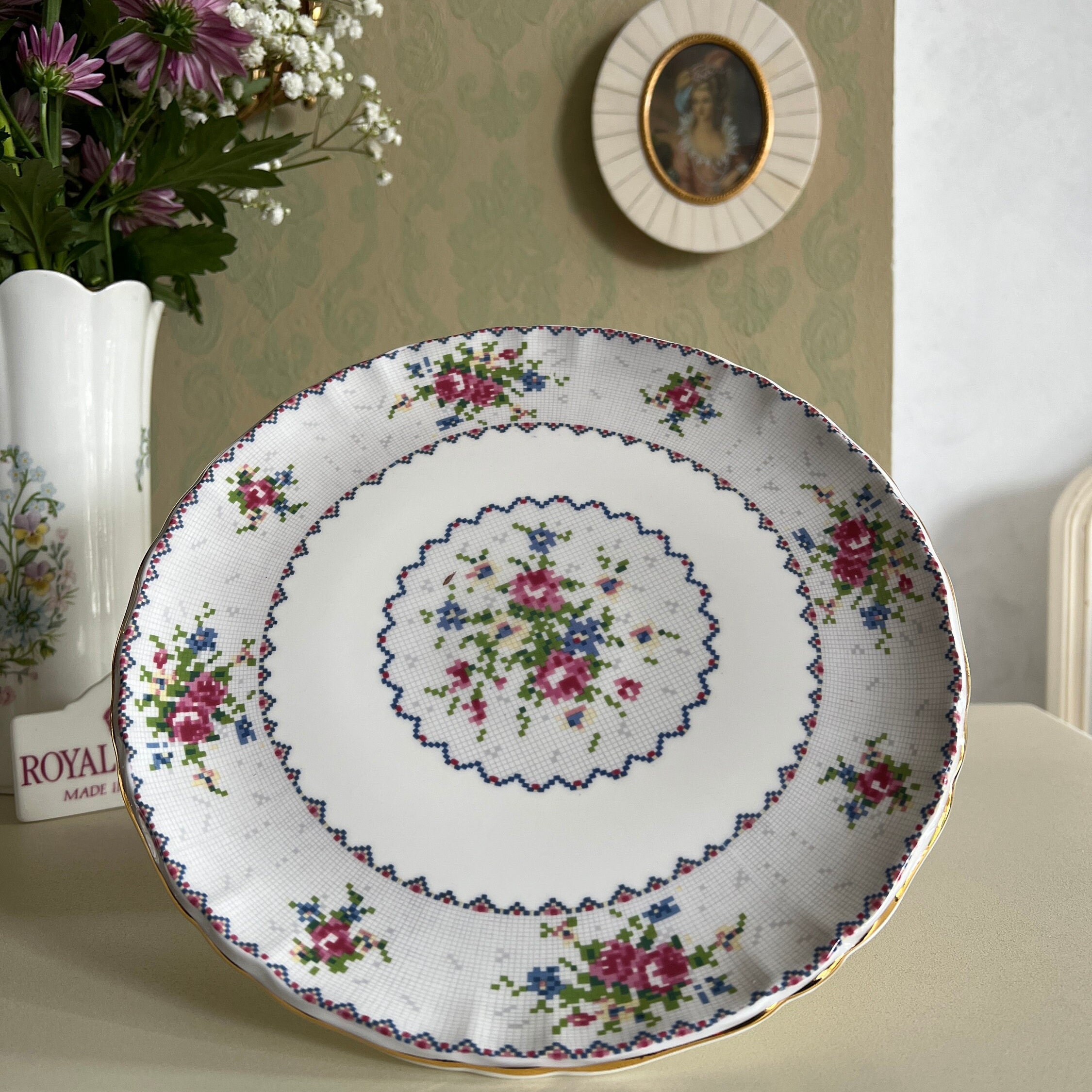 A timeless accent for your sideboard or tea table, this porcelain pedestal dish from Royal Albert’s Petit Point collection brings delicate charm to any space. Its scalloped rim, fine floral motif, and soft ivory glaze nod to mid-century English formality, making it as useful as it is collectible. Use it to serve sweets or showcase it among your vintage china display.