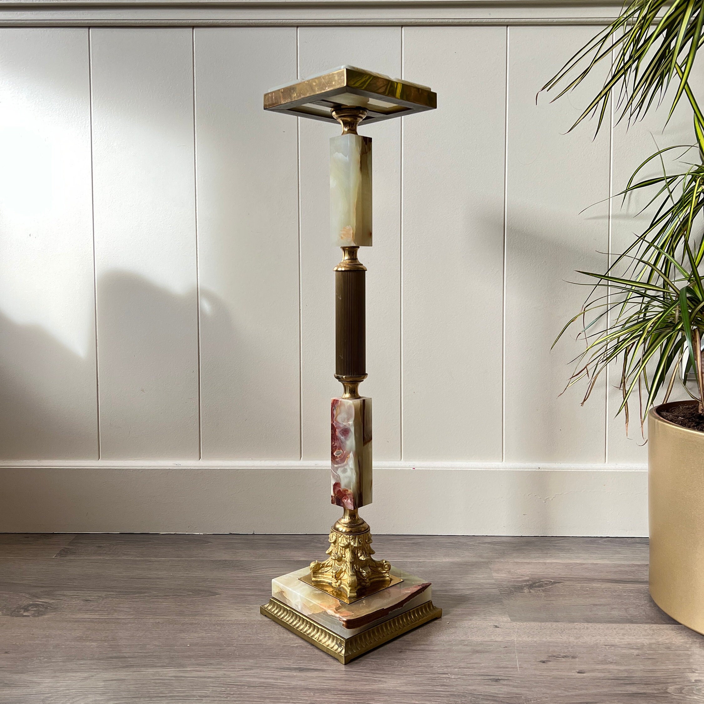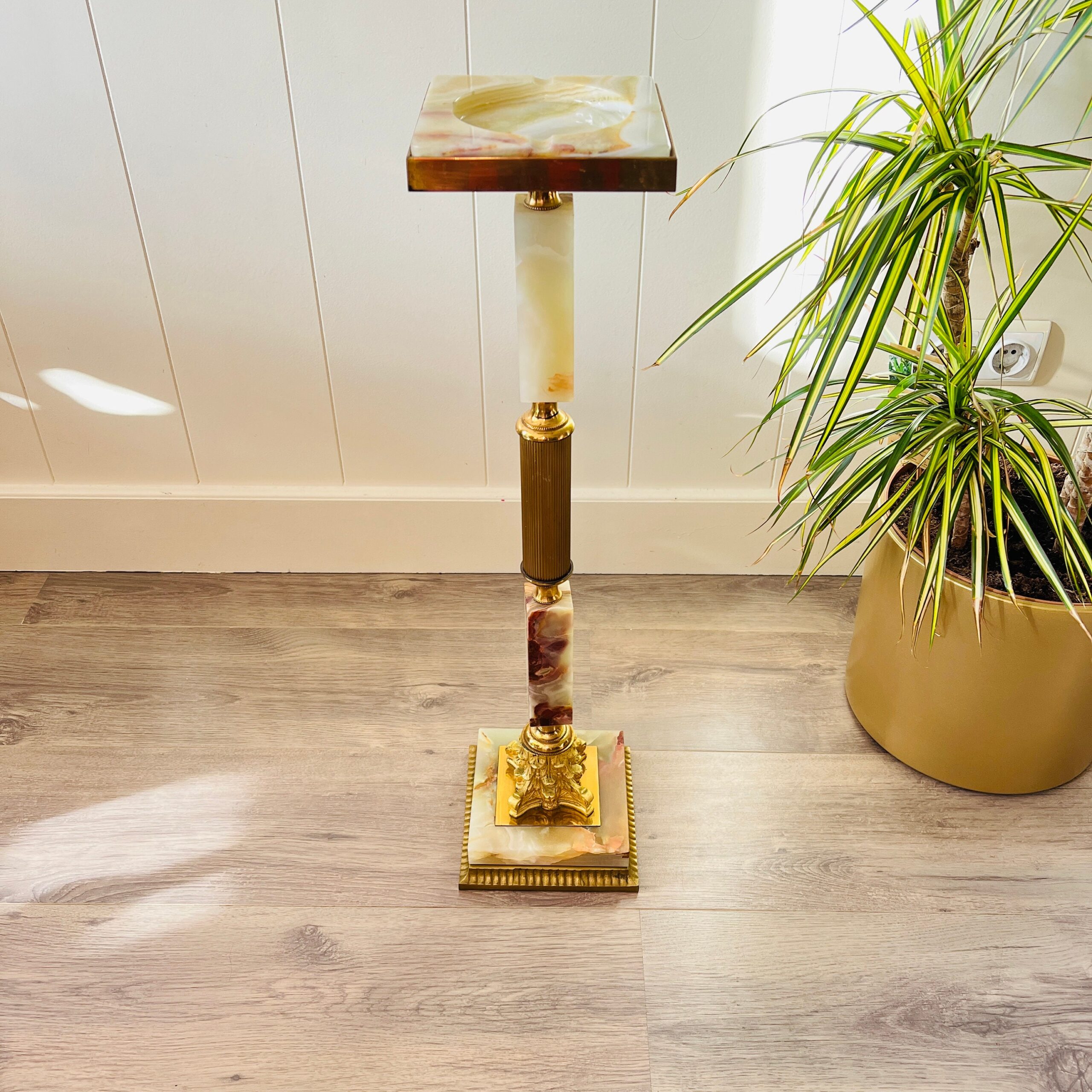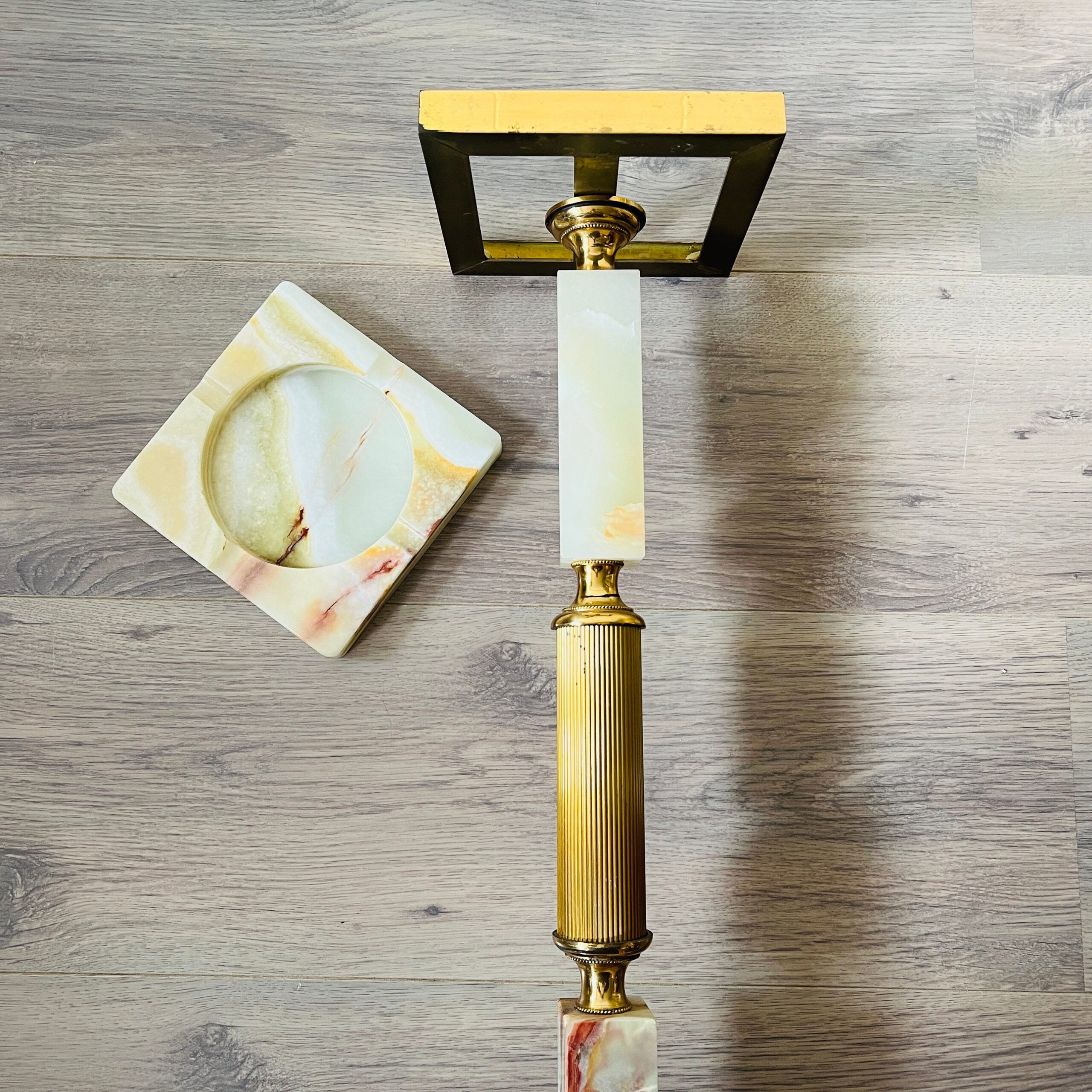 Brass and Marble Floor Ashtray – Mid Century Standing Cigarette Holder, Hollywood Regency Style