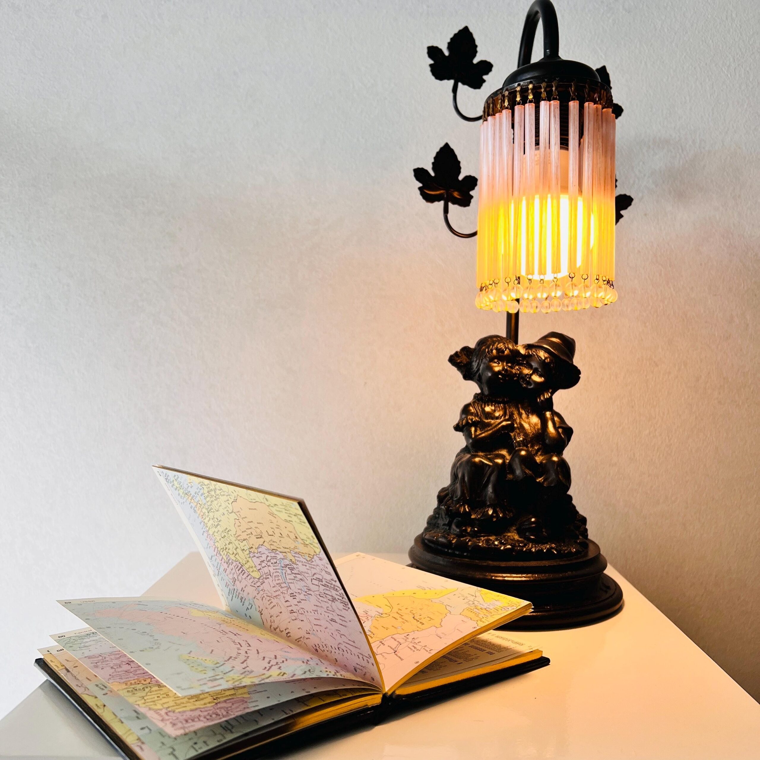 French Kids Statue Table Lamp – Whimsical Vintage Lighting in Porcelain and Brass