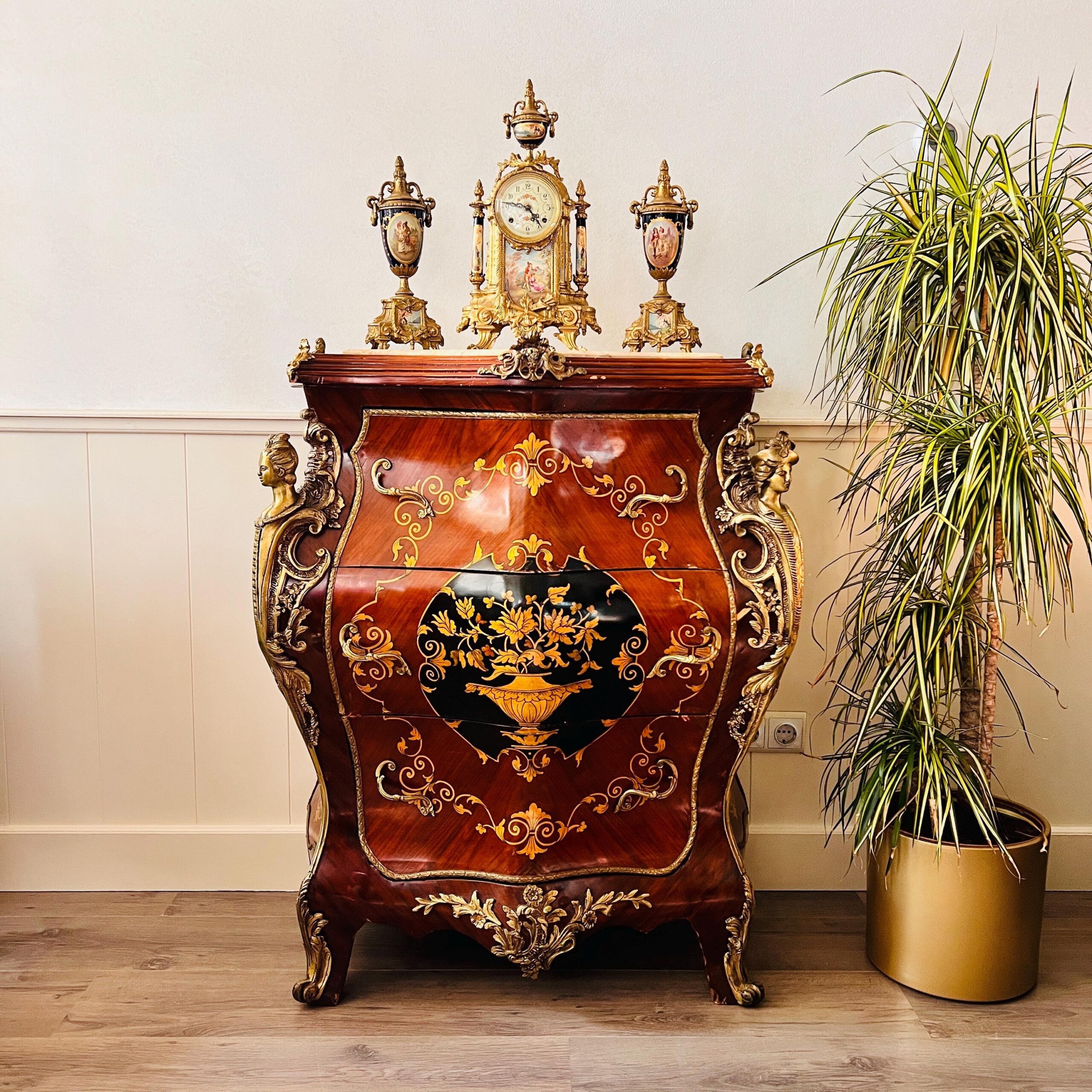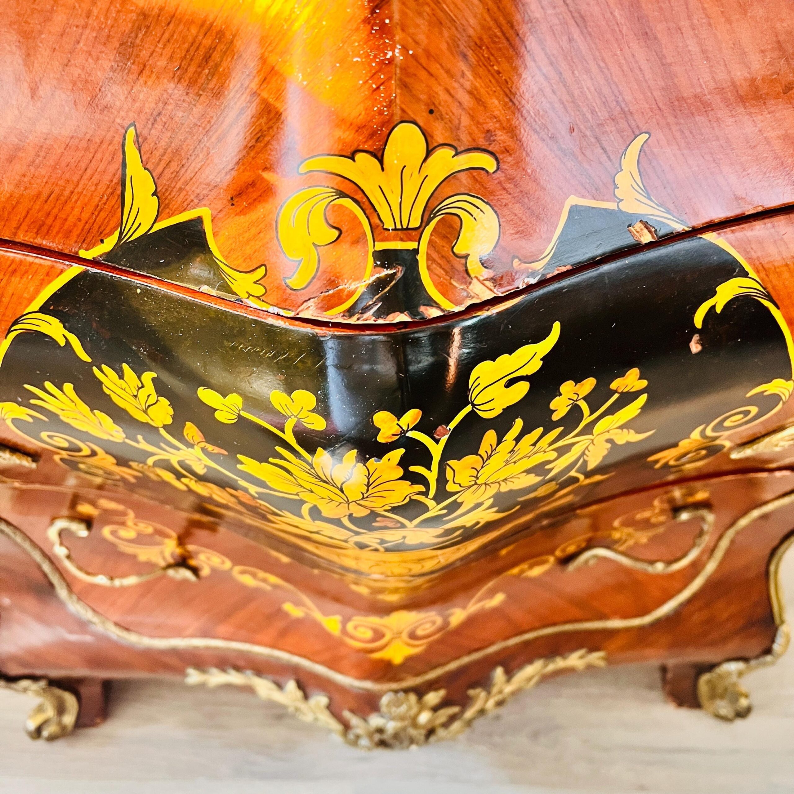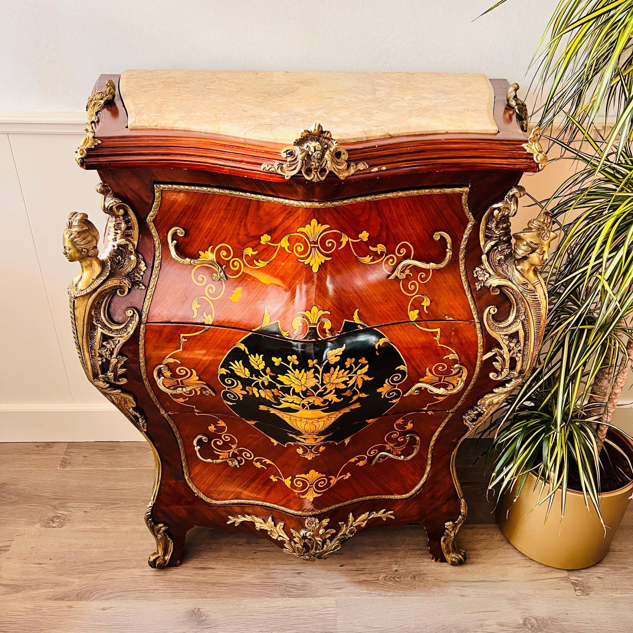 French Louis XV Marble Top Cabinet – Ornate Antique Storage Furniture