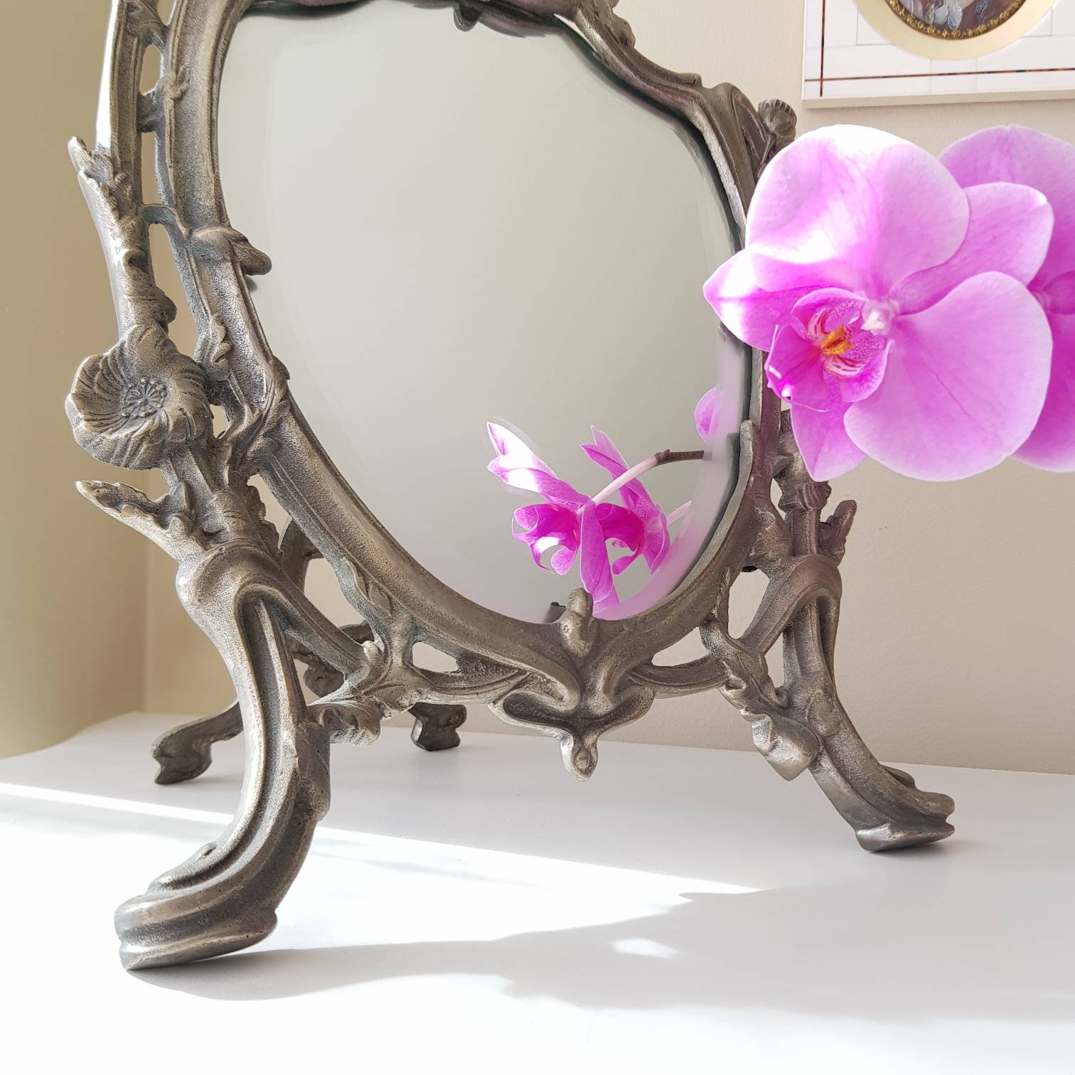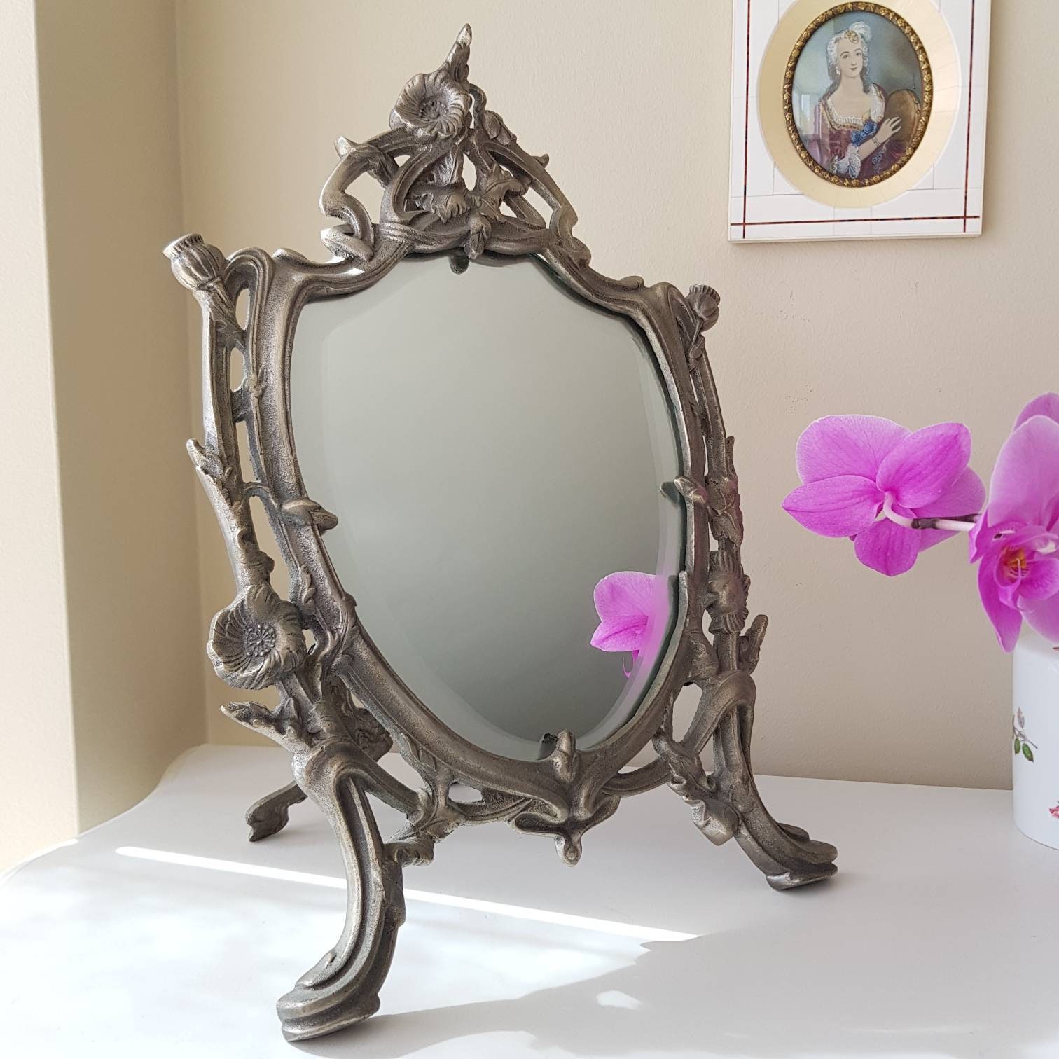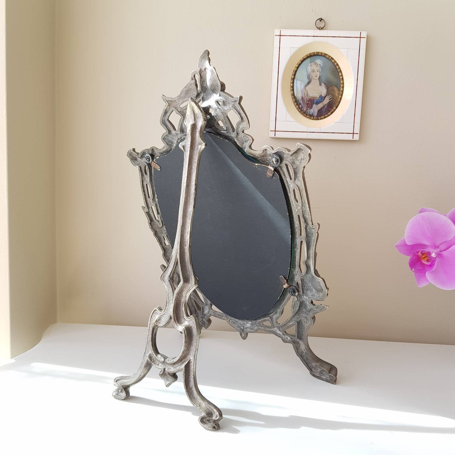 Gothic Table Mirror with Beveled Glass – Freestanding Vintage Metal Frame