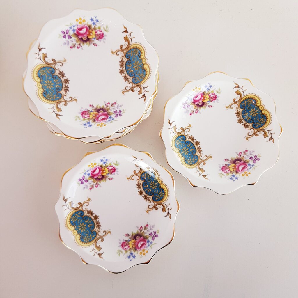 • Lady Carlyle pattern – pink roses, scrollwork, gold trim