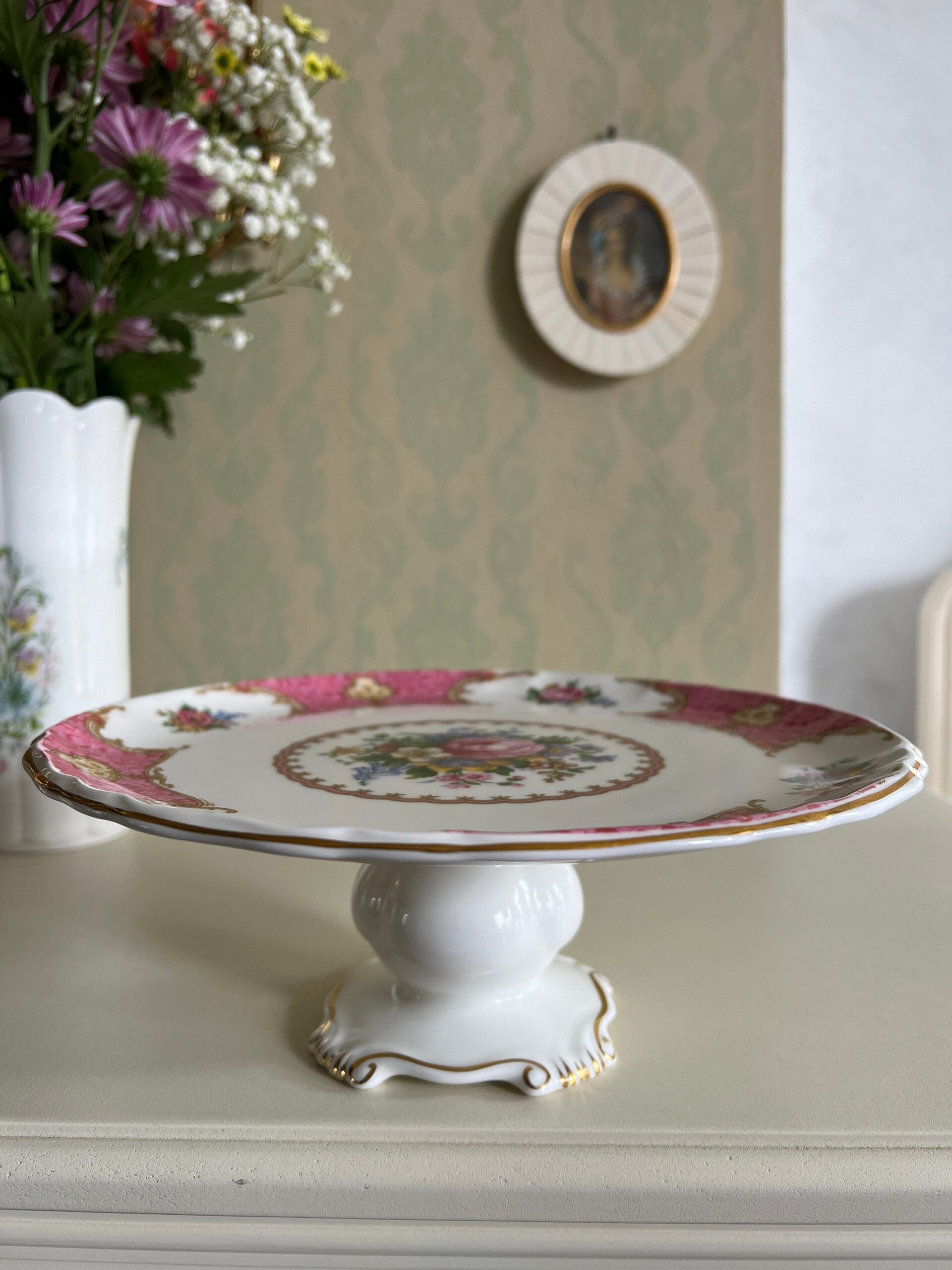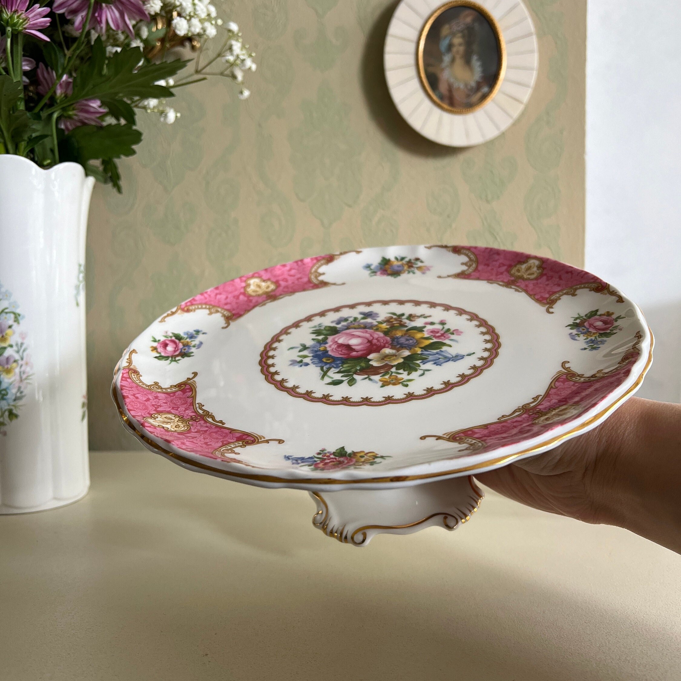 Graceful and refined, this Royal Albert Lady Carlyle pedestal dish brings timeless English charm to your tabletop or china cabinet. Rendered in delicate bone china with soft pink florals and opulent gold accents, it’s the perfect way to serve sweets or simply admire as a vintage statement piece.
