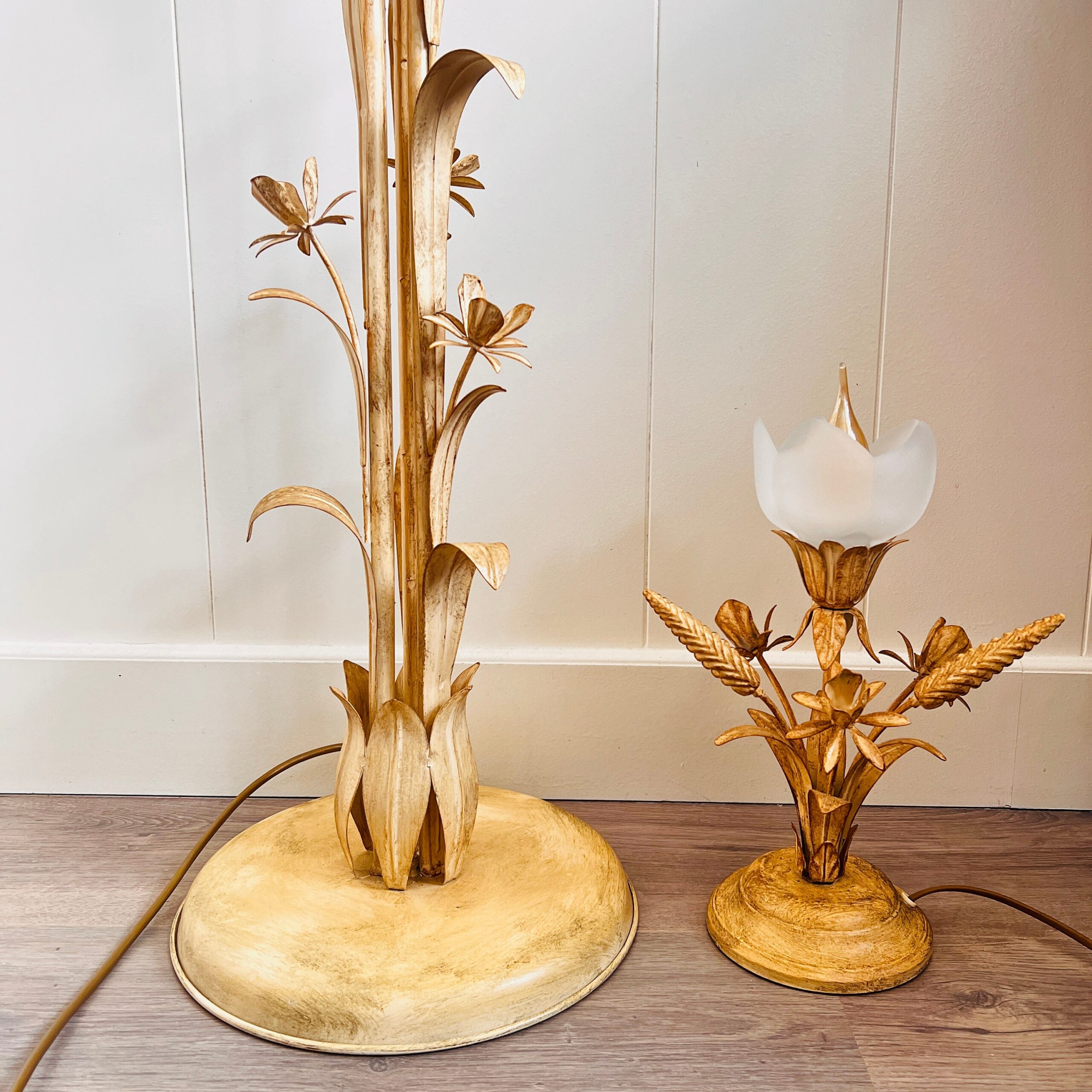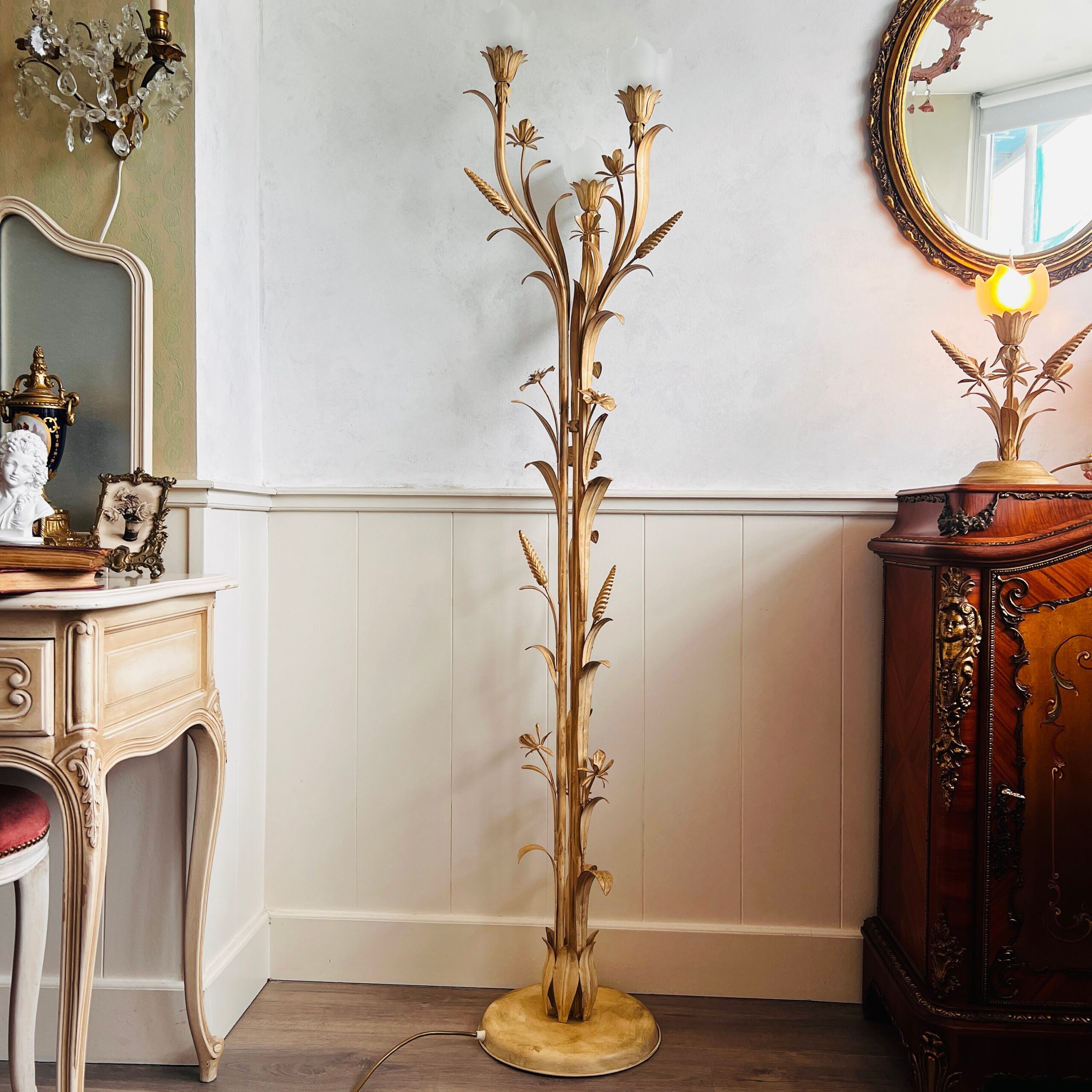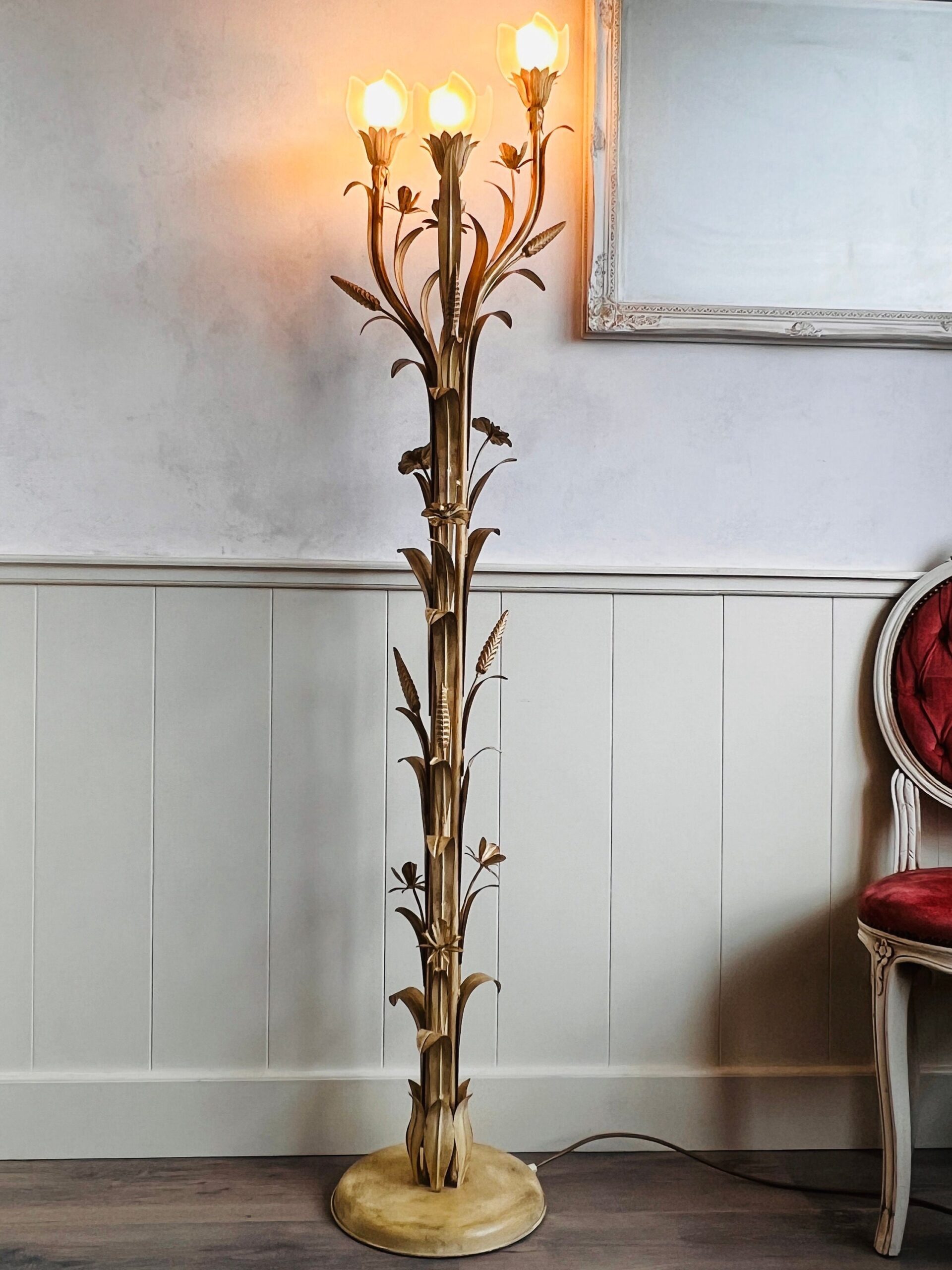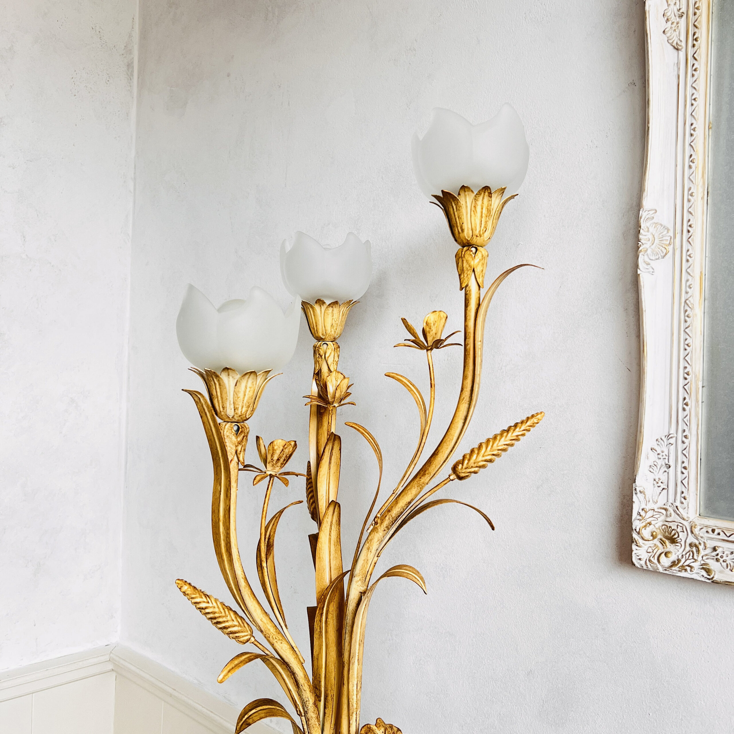 Hollywood Regency Torchère Floor Lamp – Brass & Glass, Mid-Century Glam Lighting