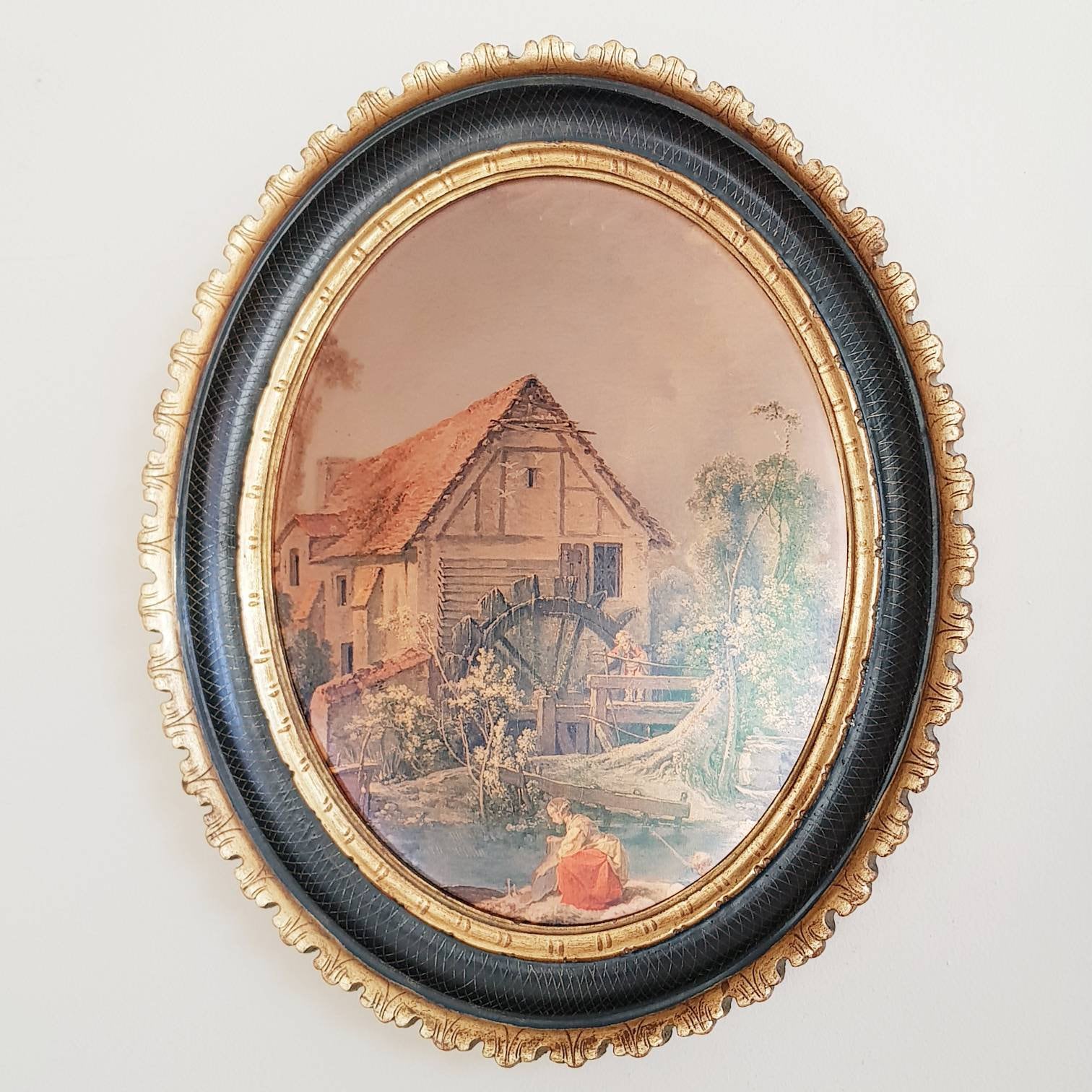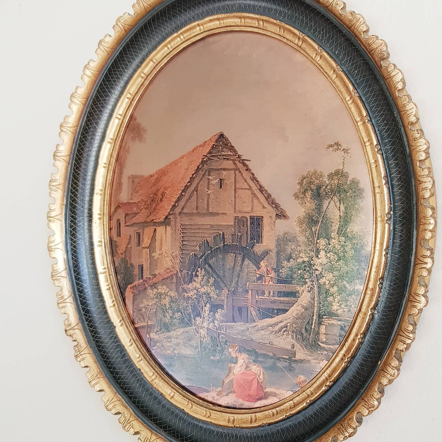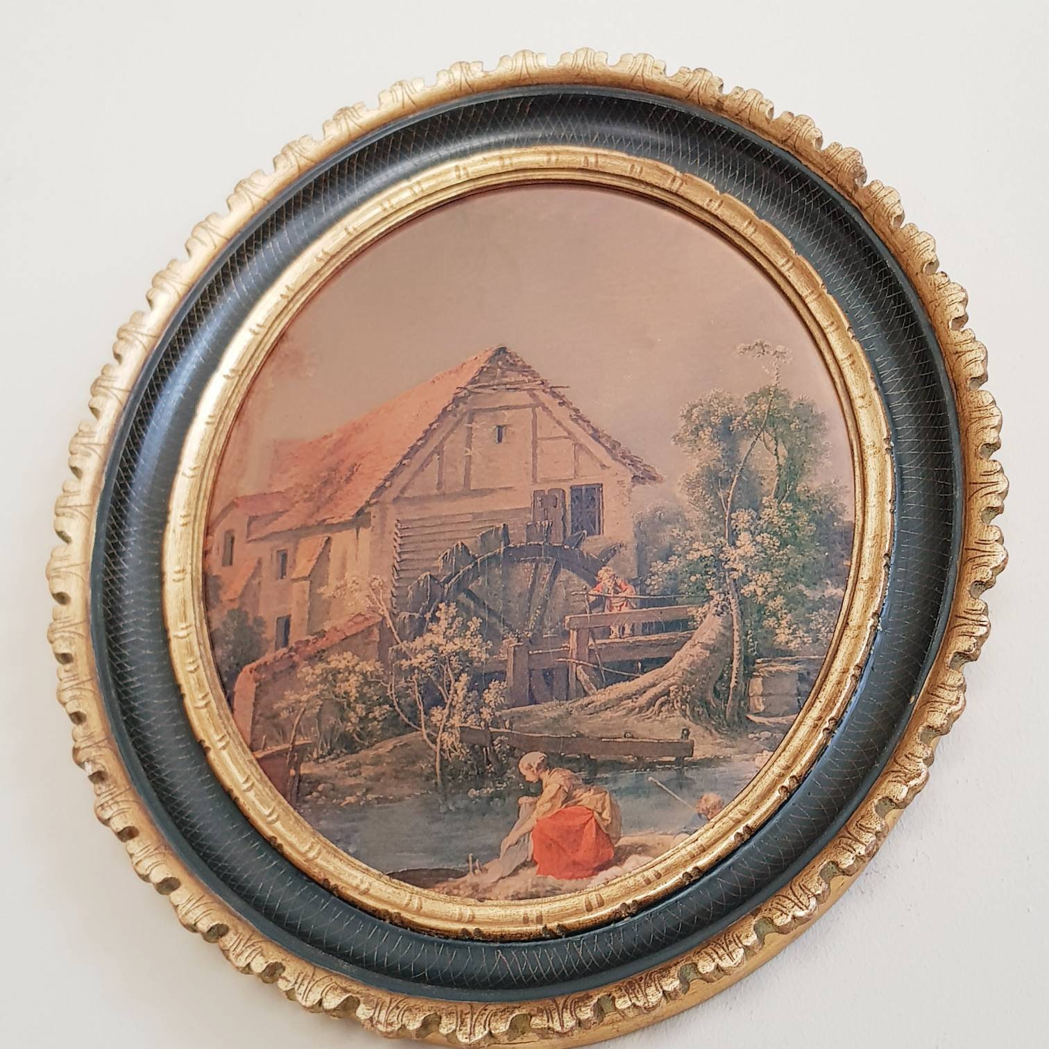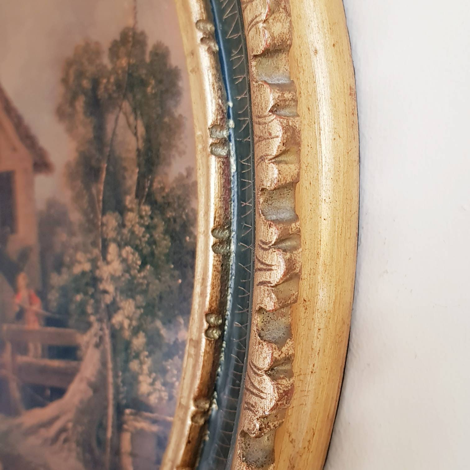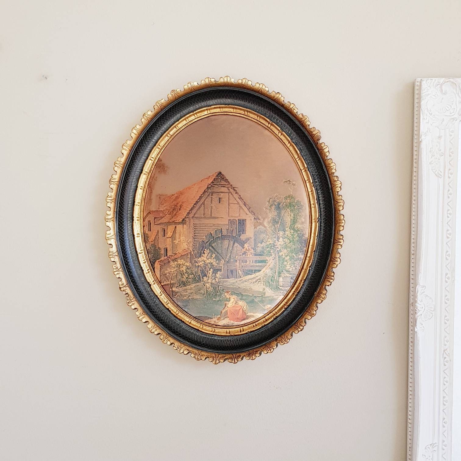 Italian Big Oval Picture, Lovely Art Print on Messing, Romantic Scene, Landscape, Italy Art Print, Wall Picture, Interior Design