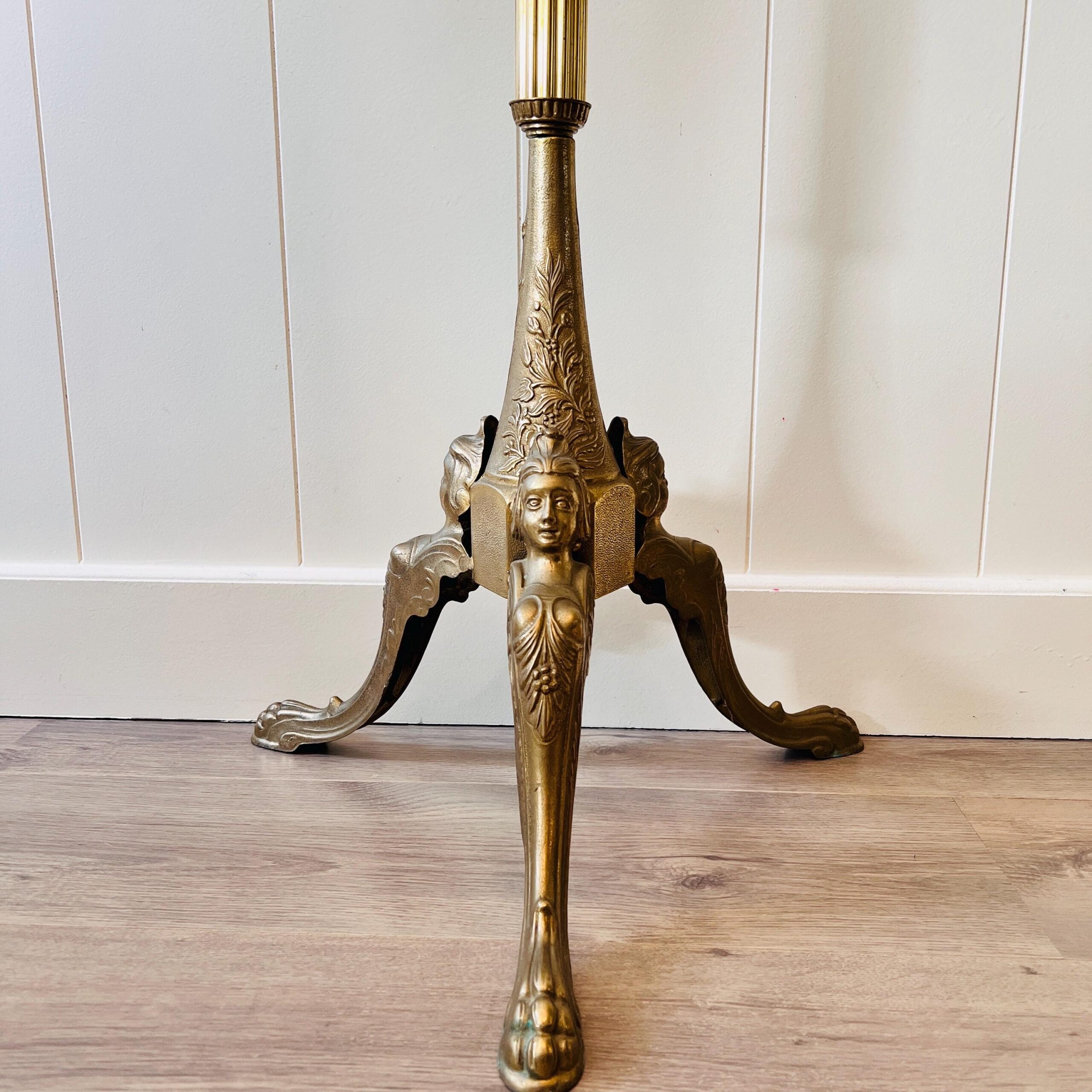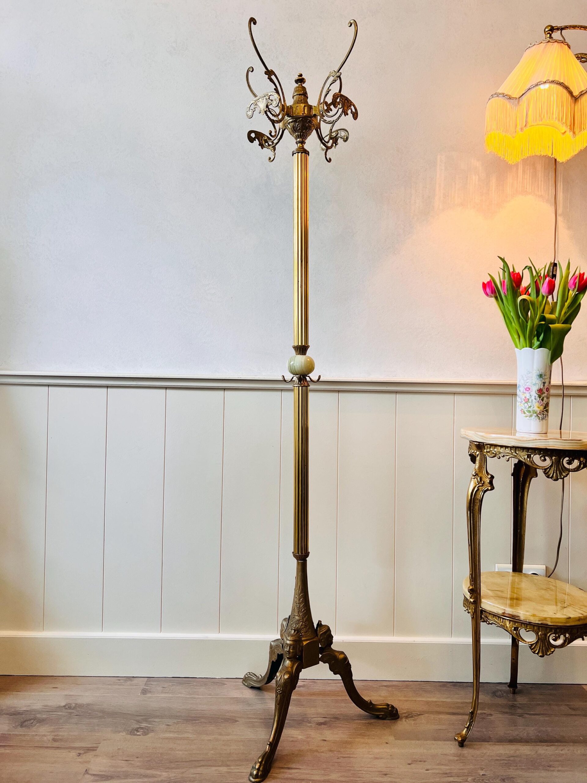 Italian Brass Standing Coat Rack – Hollywood Regency Hall Tree with 4 Hooks