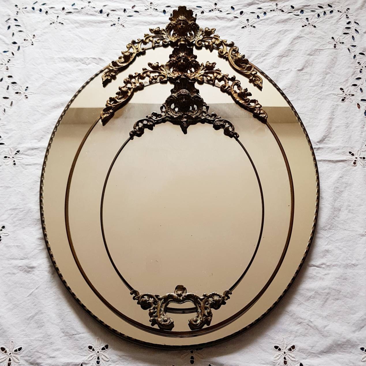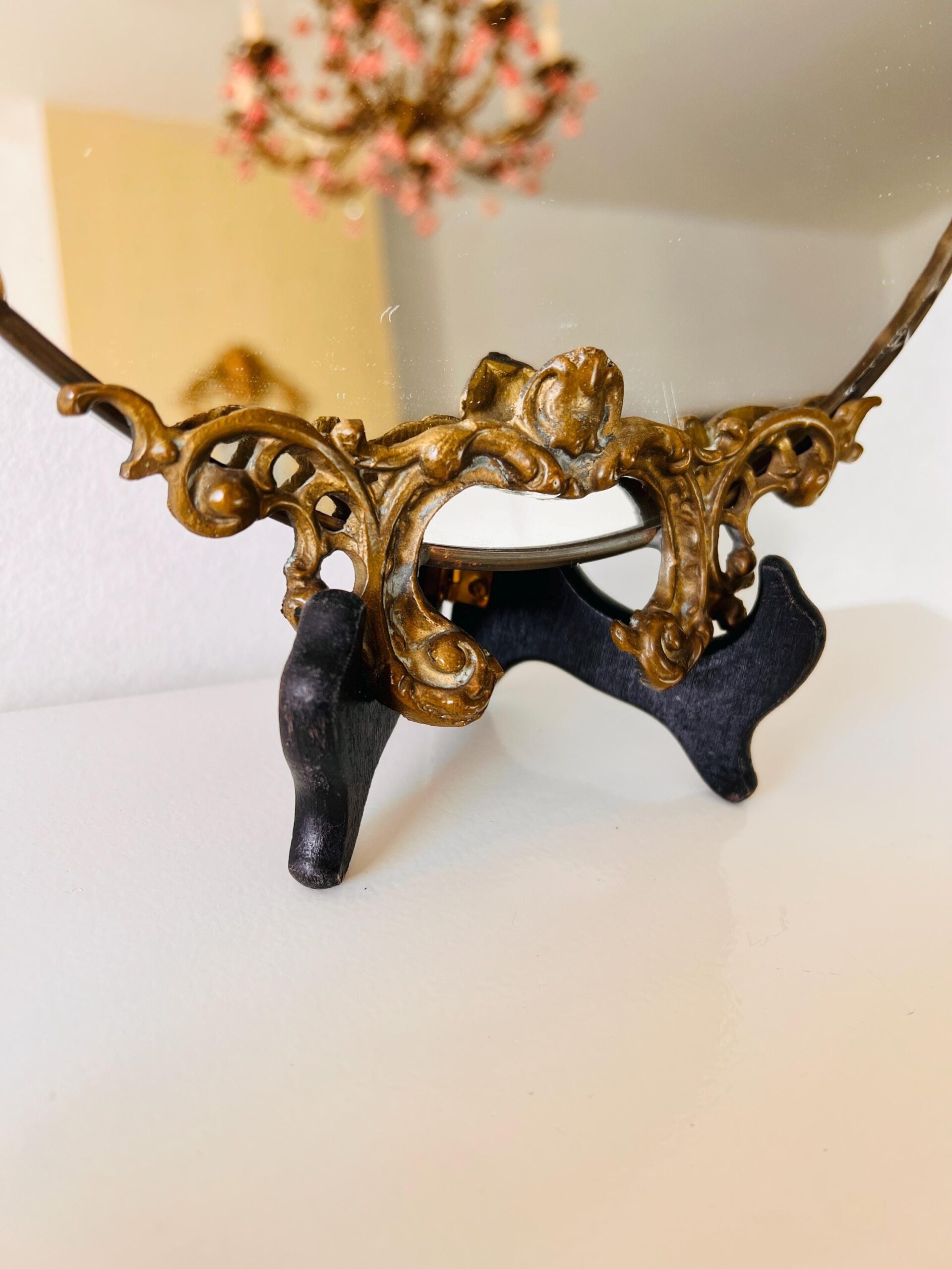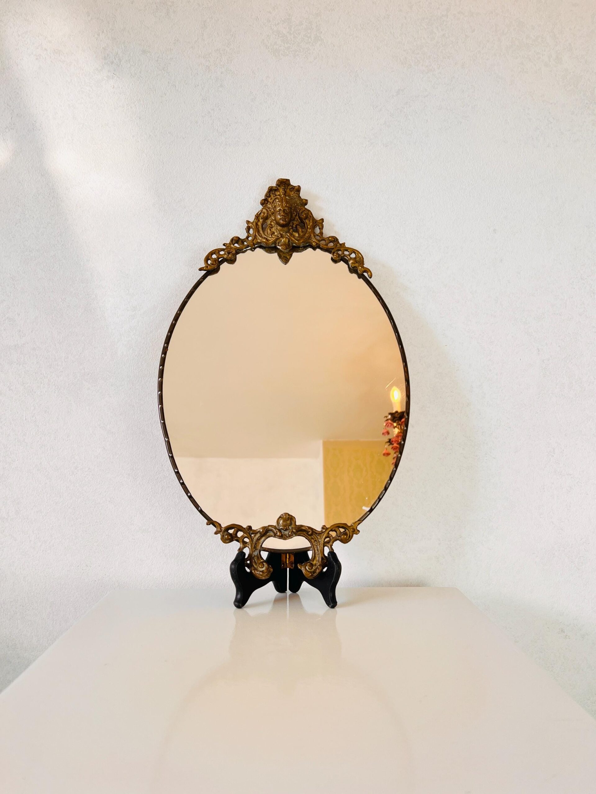 • Very good vintage condition: subtle age-related wear to brass and light spotting on mirror, consistent with age