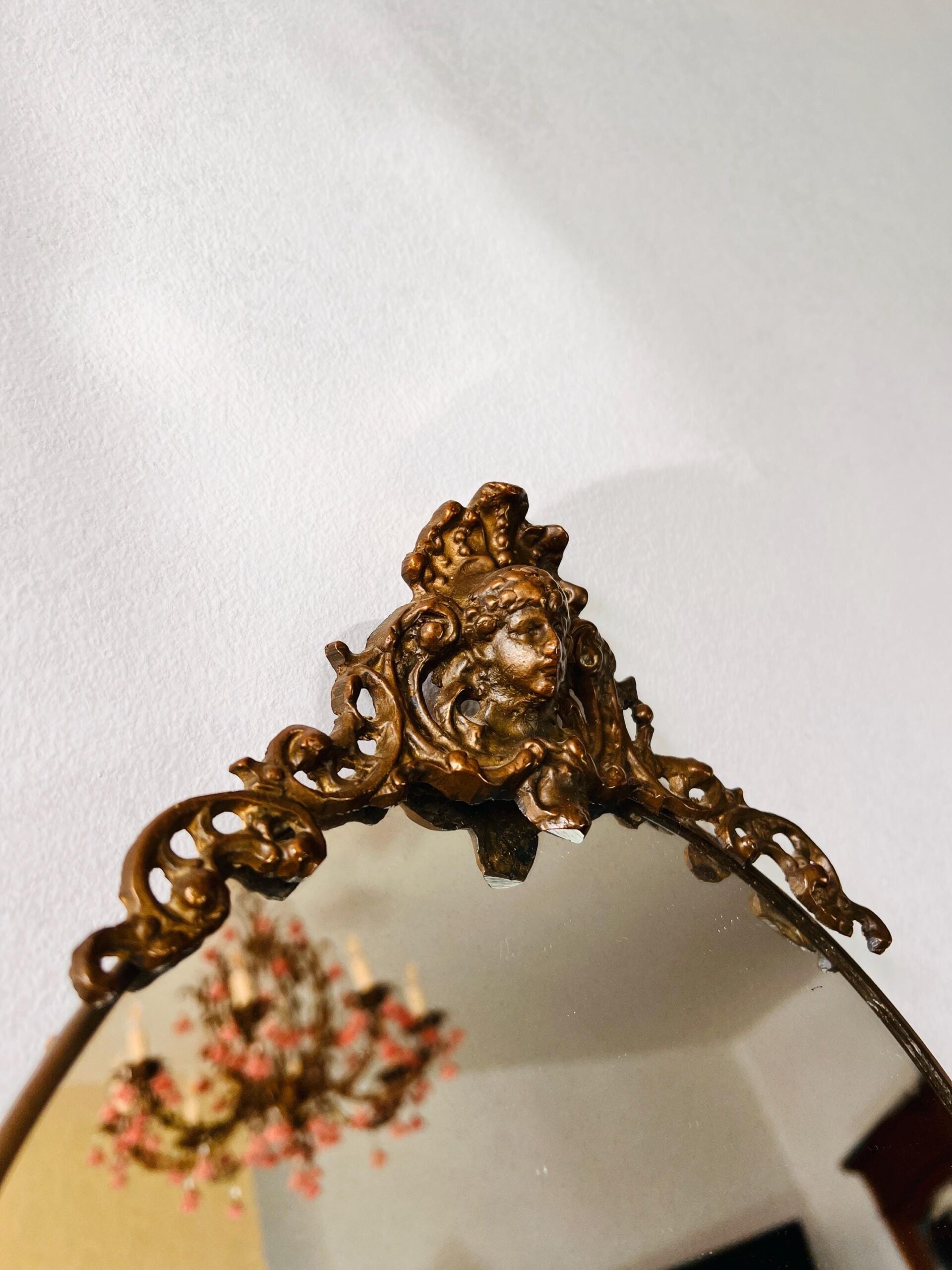 Italian Brass Wall Mirror with Cherub Motif – Ornate Vintage Accent Piece