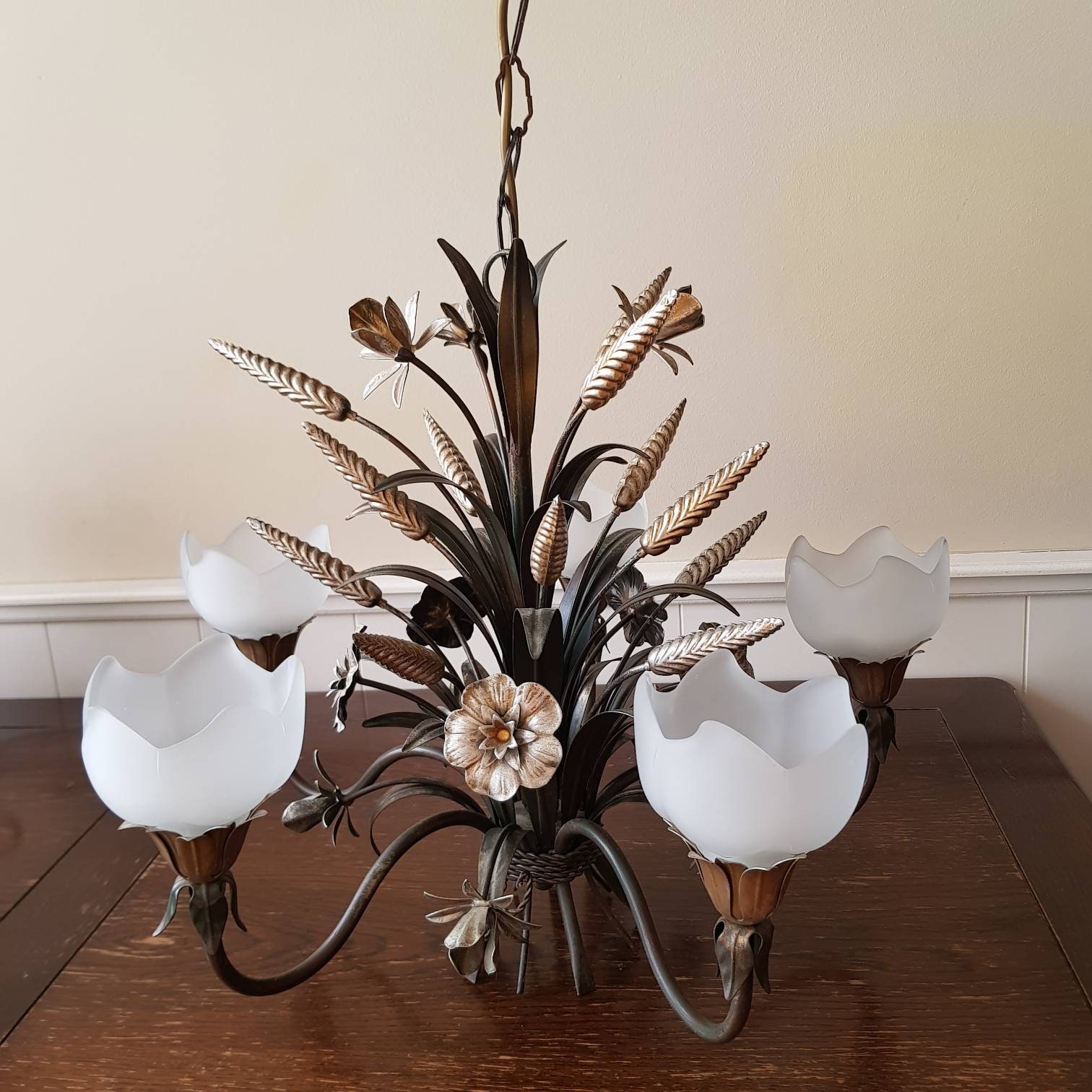 Italian Tole Chandelier – Hollywood Regency Wheat Sheaf Ceiling Light