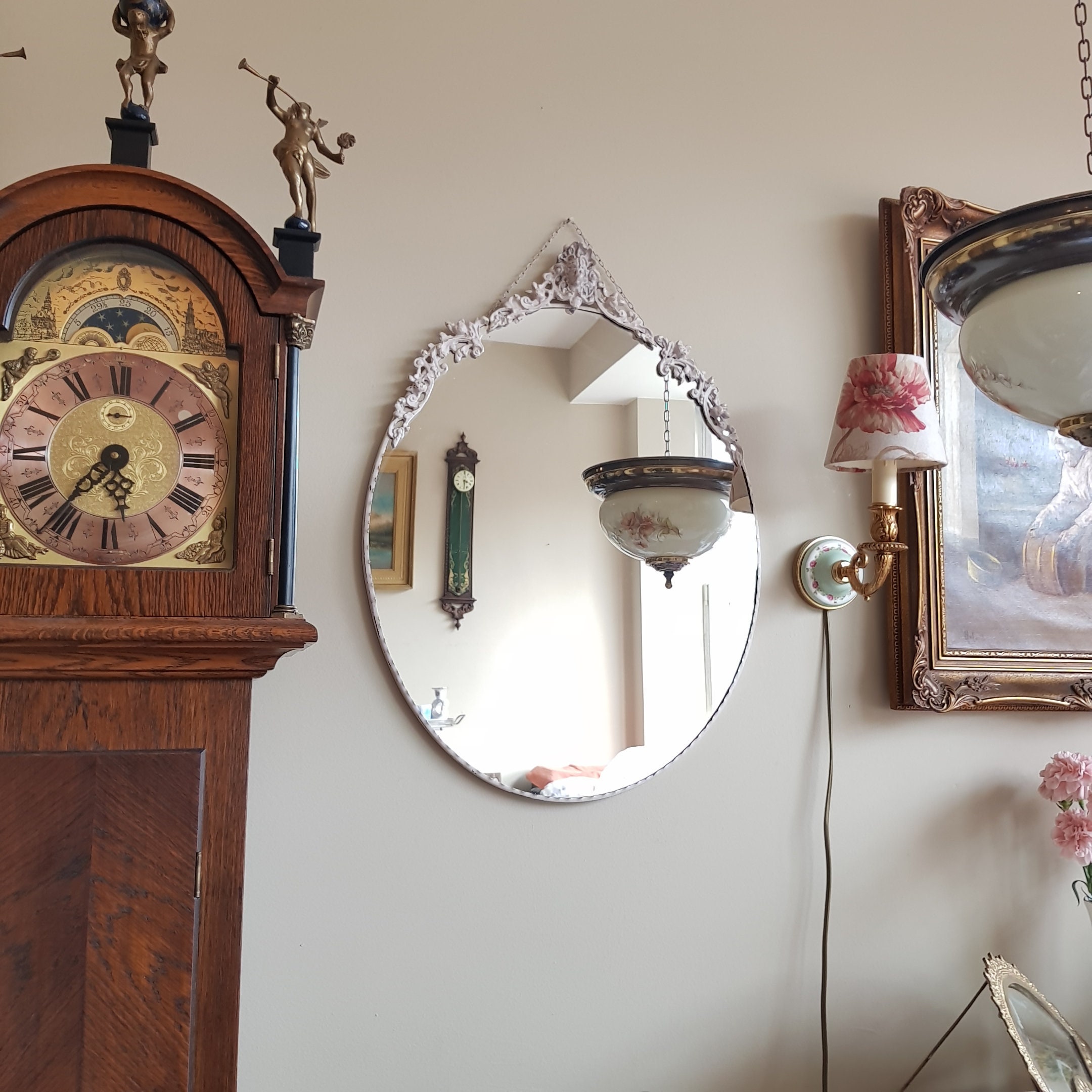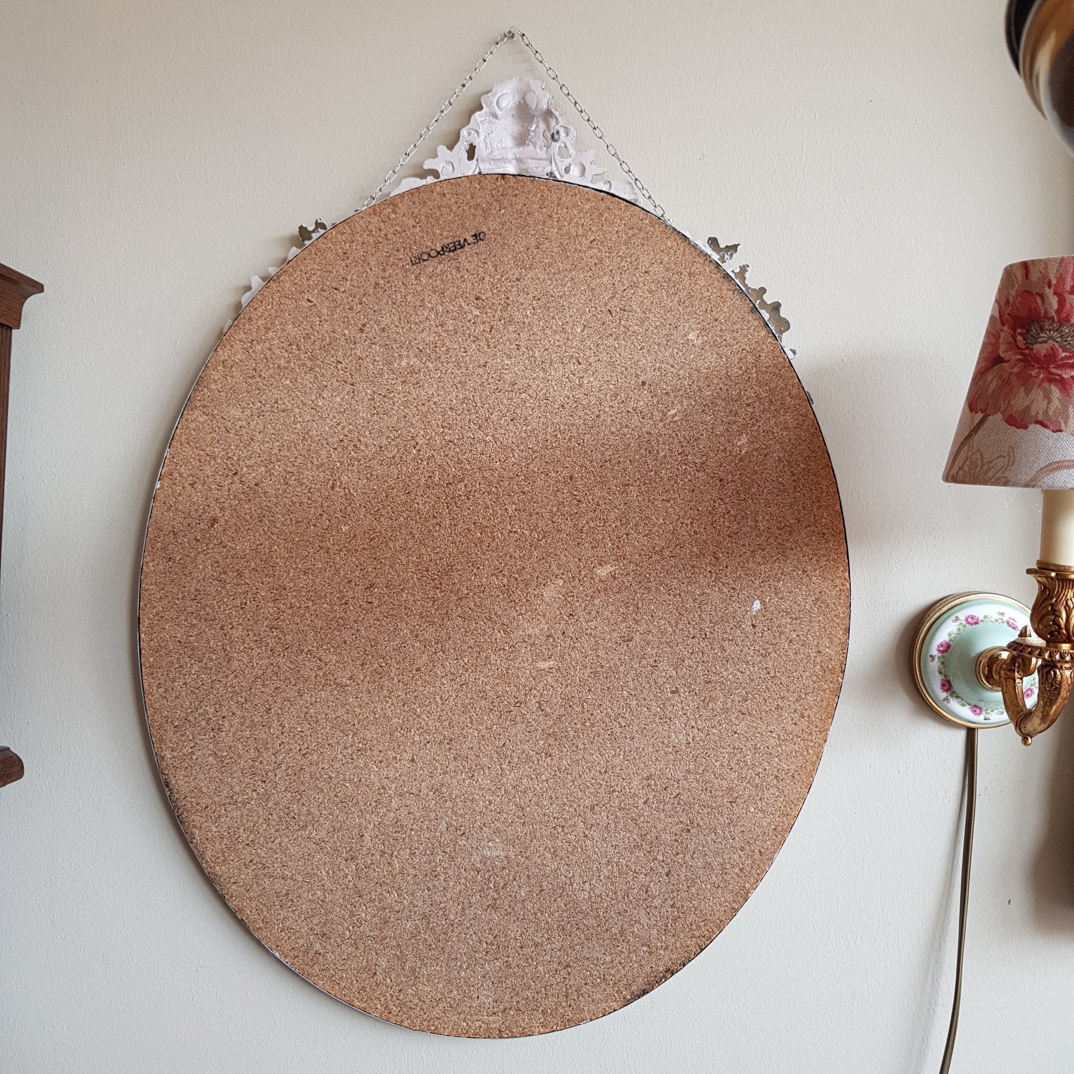 Italian Vintage Big Oval wall Mirror, Brass Frame Shabby-chic, Baroque style