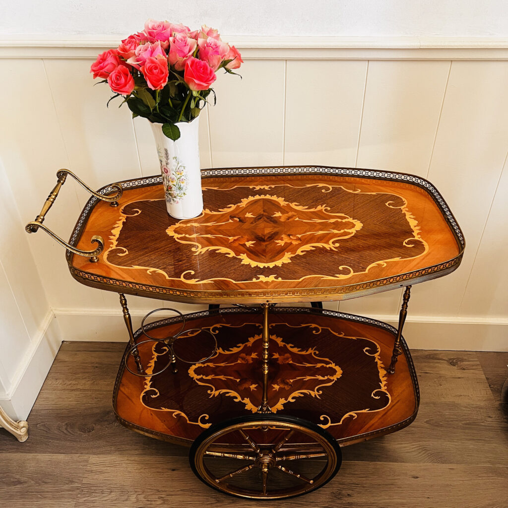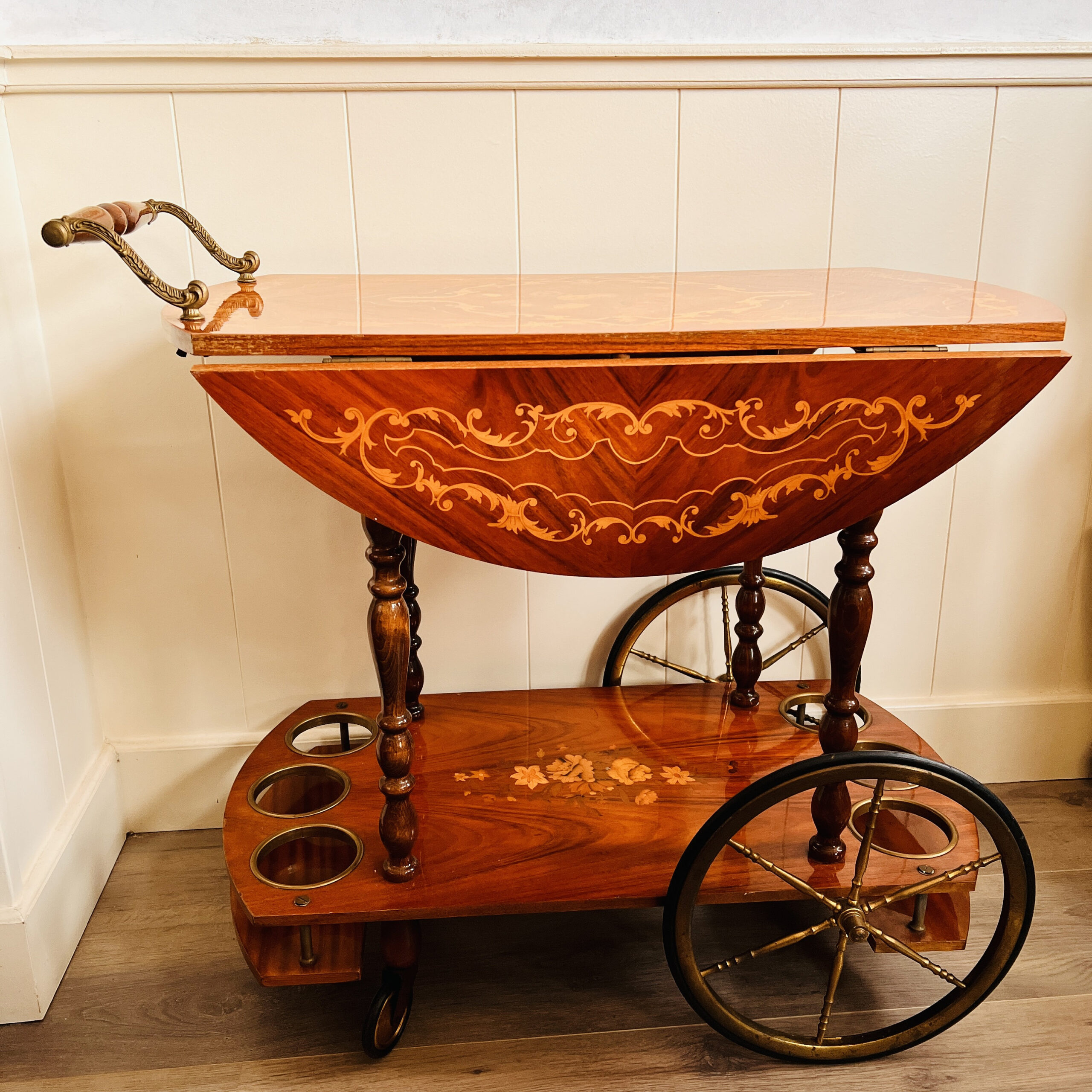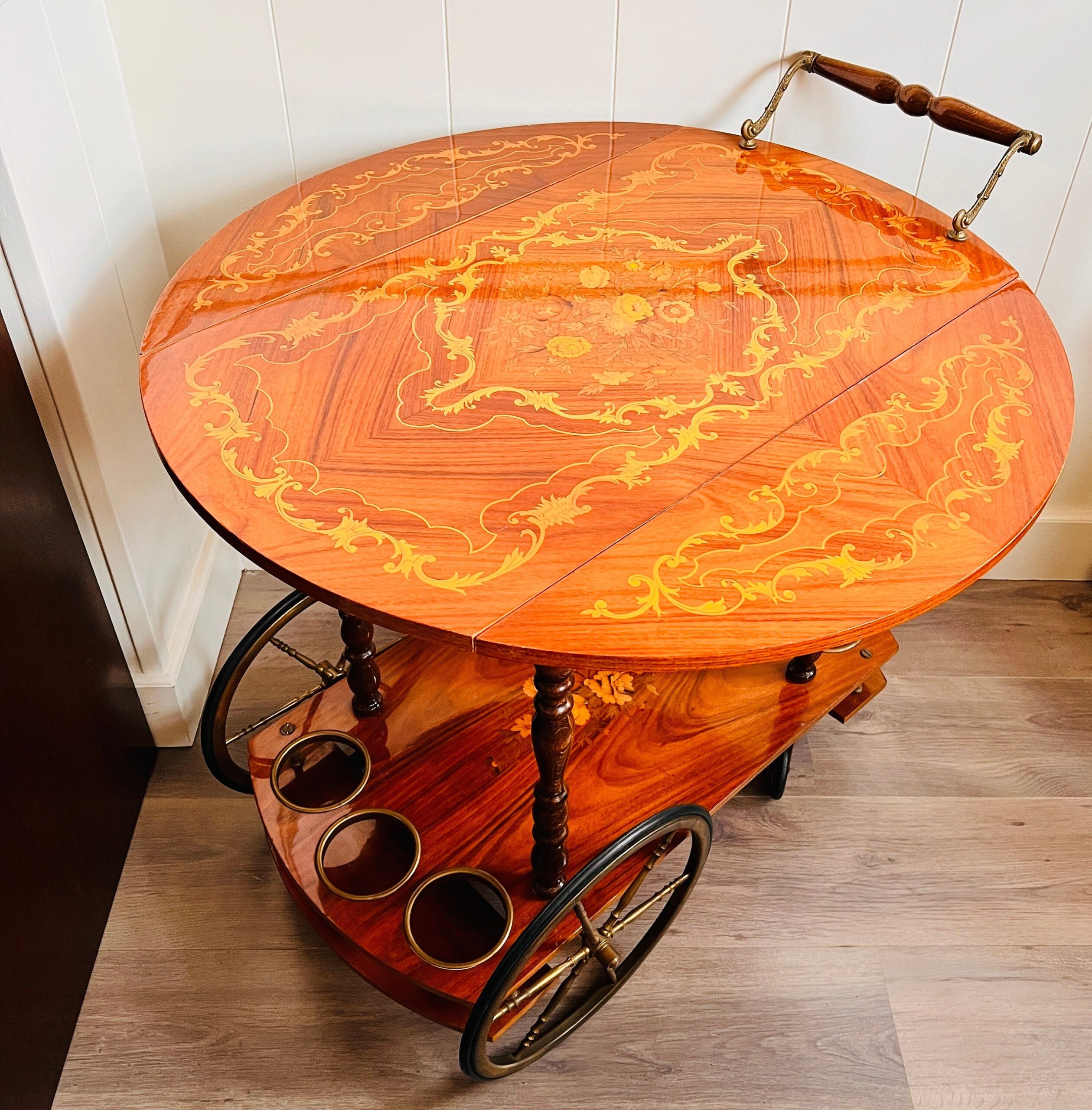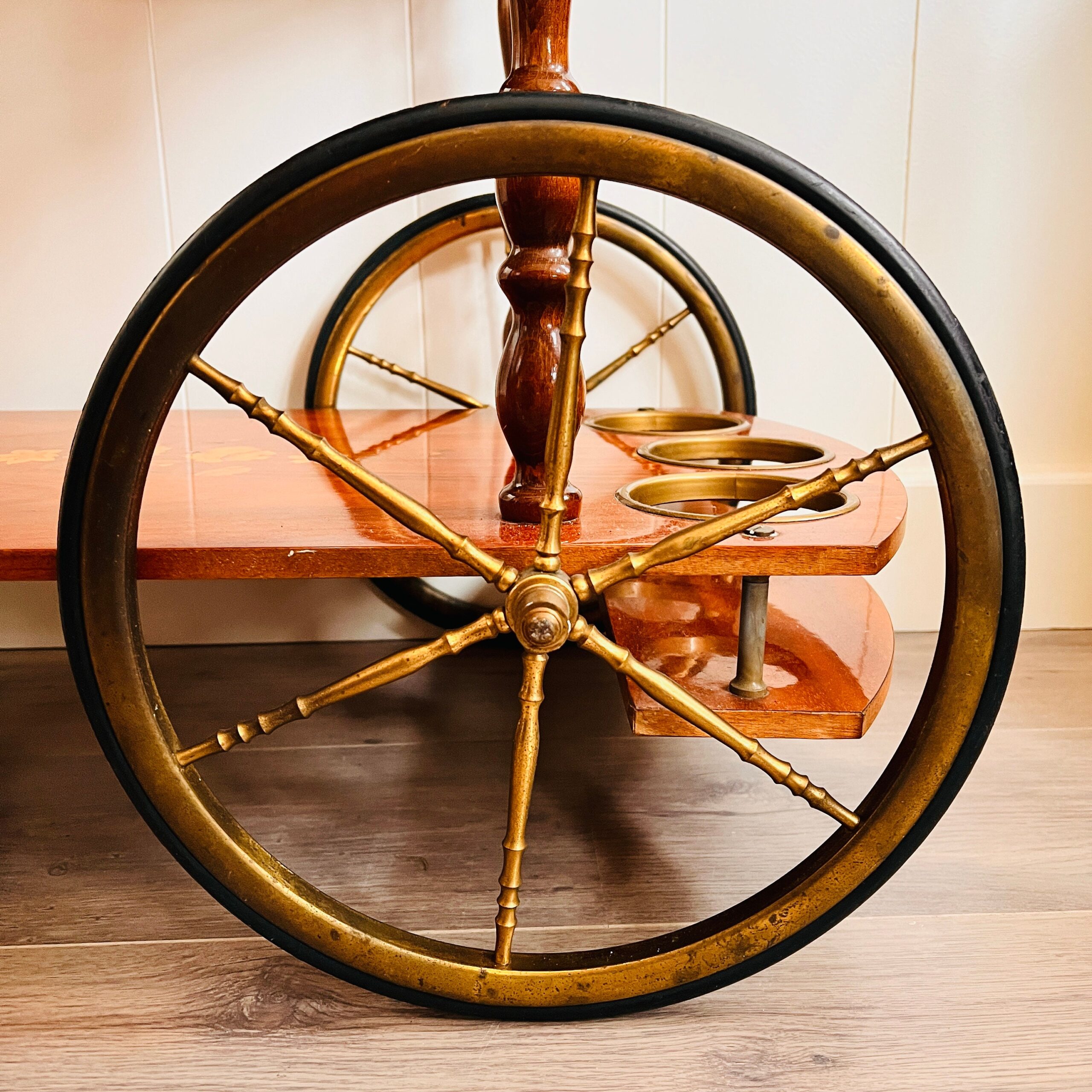 Gold Folding Bar Cart – Hollywood Regency Trolley, Mid-Century Drinks Cart on Wheels