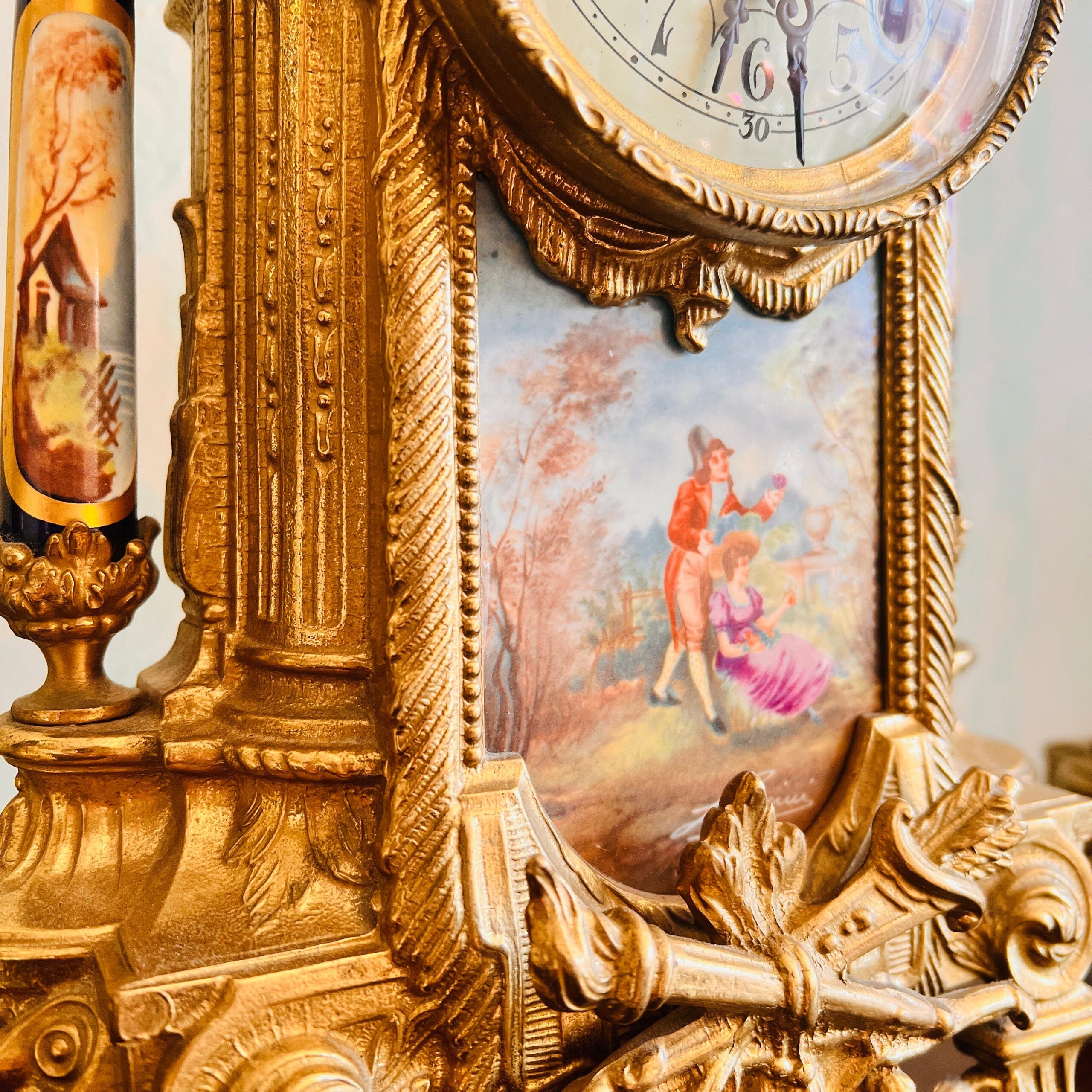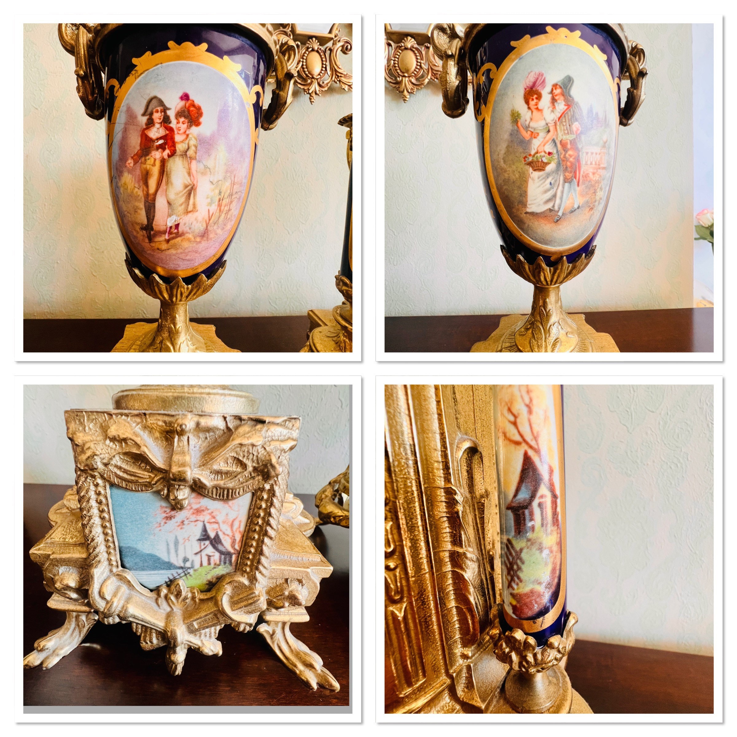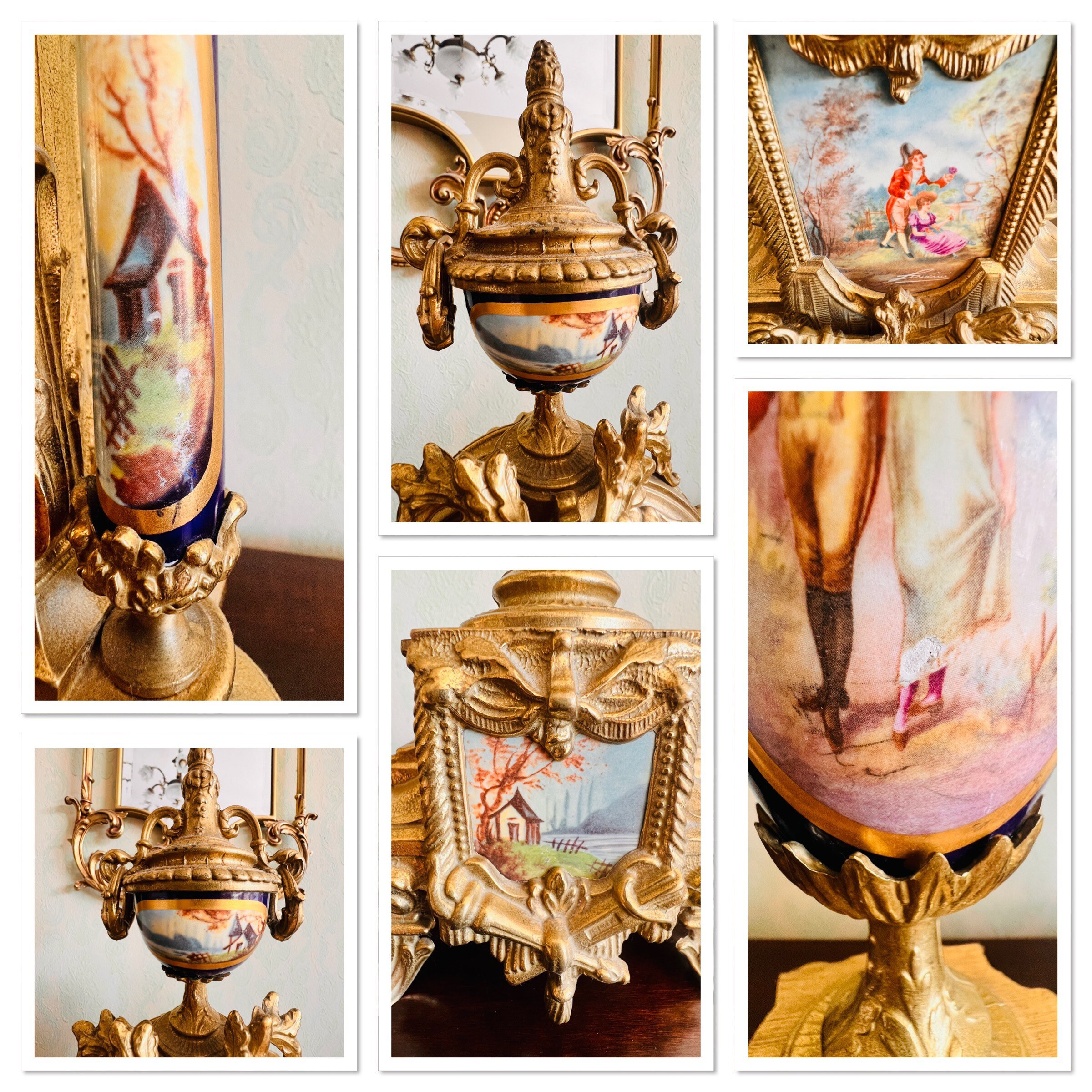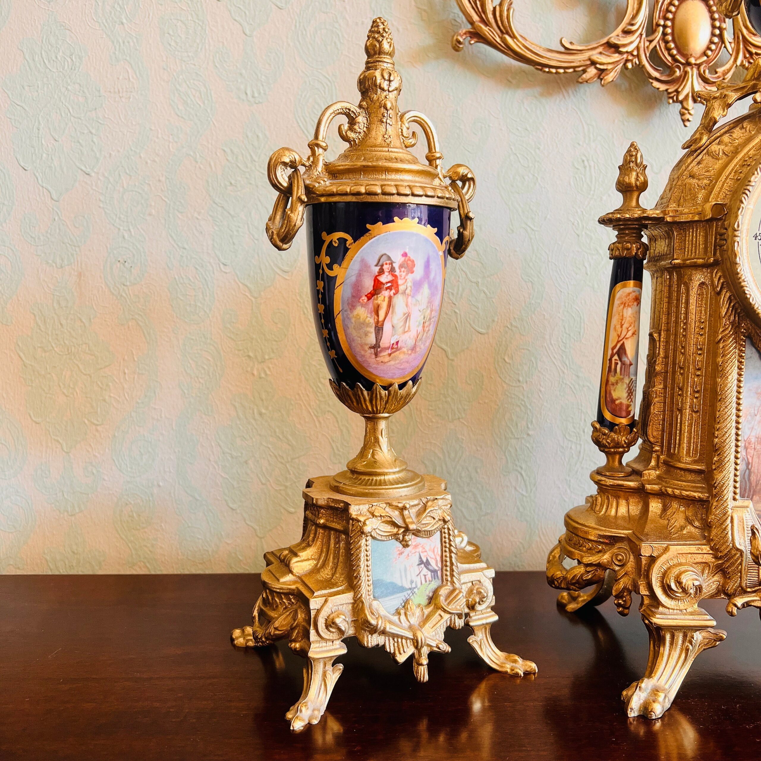 The mantel clock consists of three pieces- the clock and two matching urns. Video presentation!
