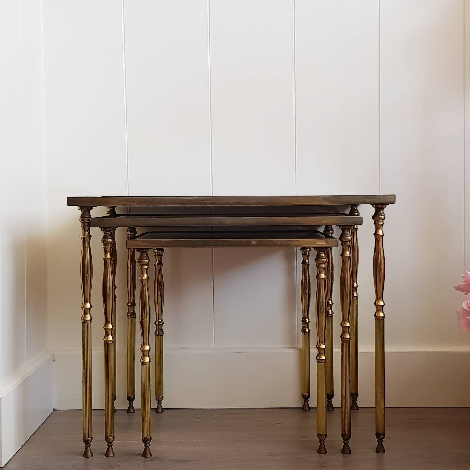 Mid Century Brass Nesting Tables, 3 Nesting Tables Brass 60s/70s Hollywood Regency, Coffee Side Tables