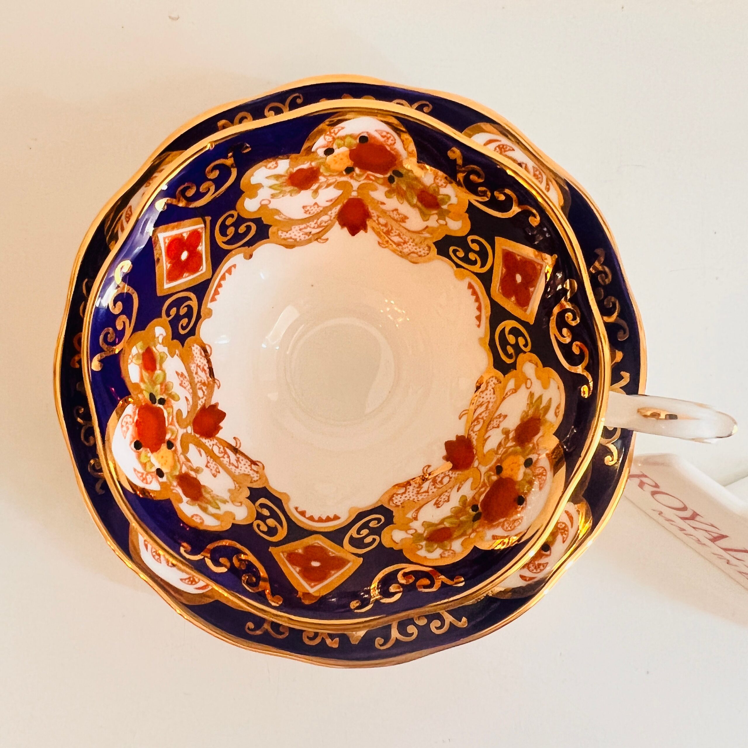 • Rich cobalt and gold detailing with floral center motif