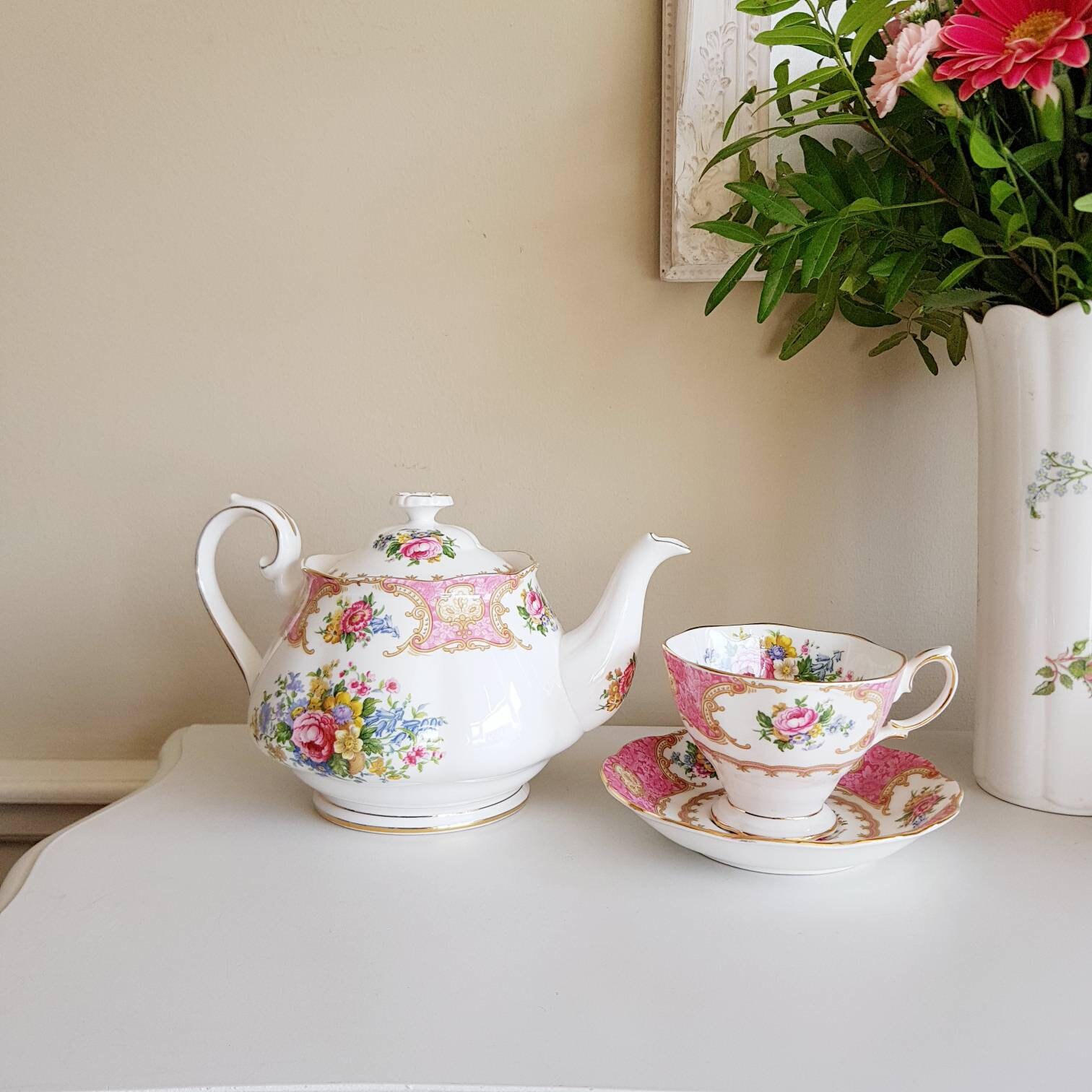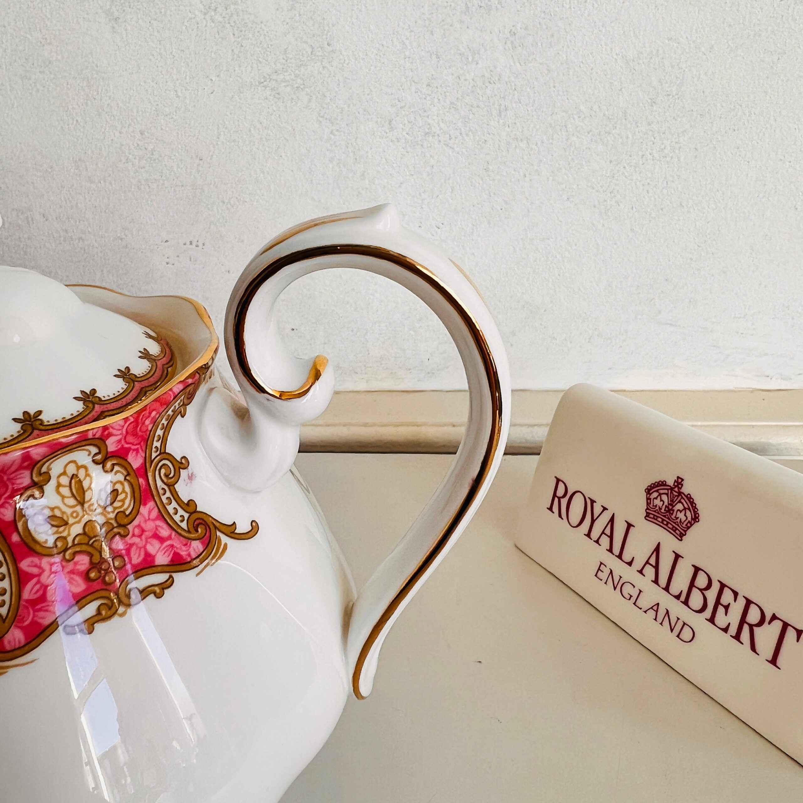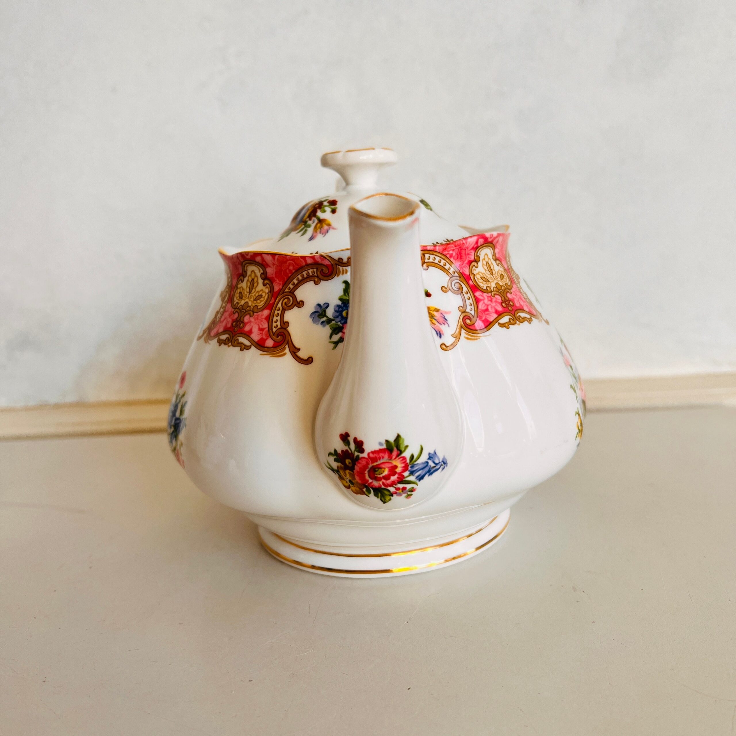 Royal Albert Lady Carlyle Teapot – Pink Roses, Gold Trim, English Bone China