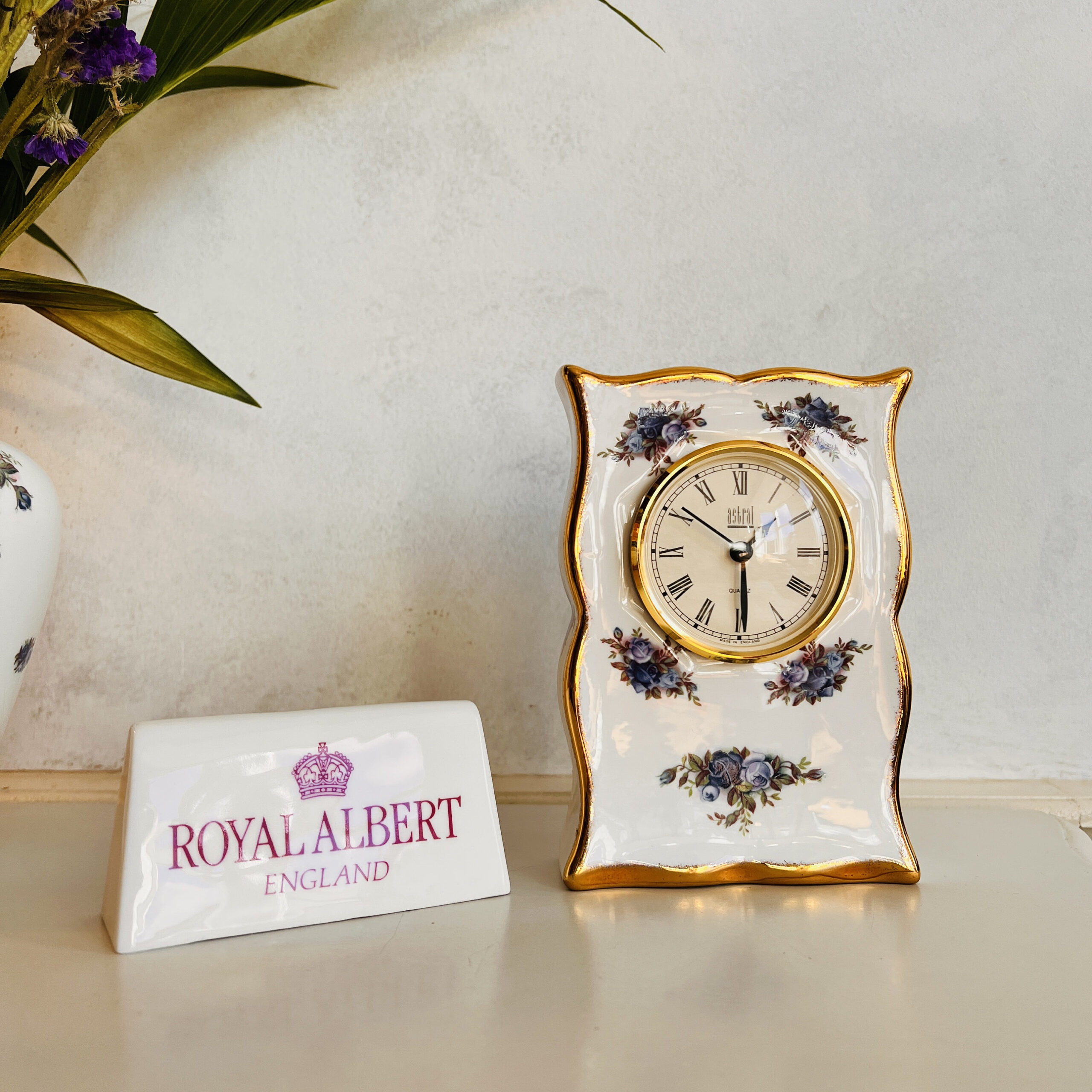 Original Royal Albert Moonlight Rose, Quartz Clock, Bone China Porcelain, Made in England