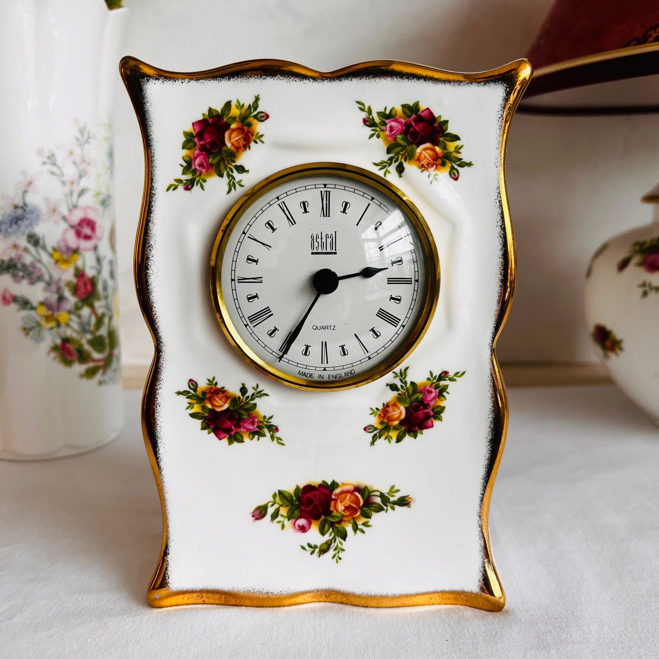 Original Royal Old Country Roses, Quartz Clock, Bone China Porcelain, Made in England