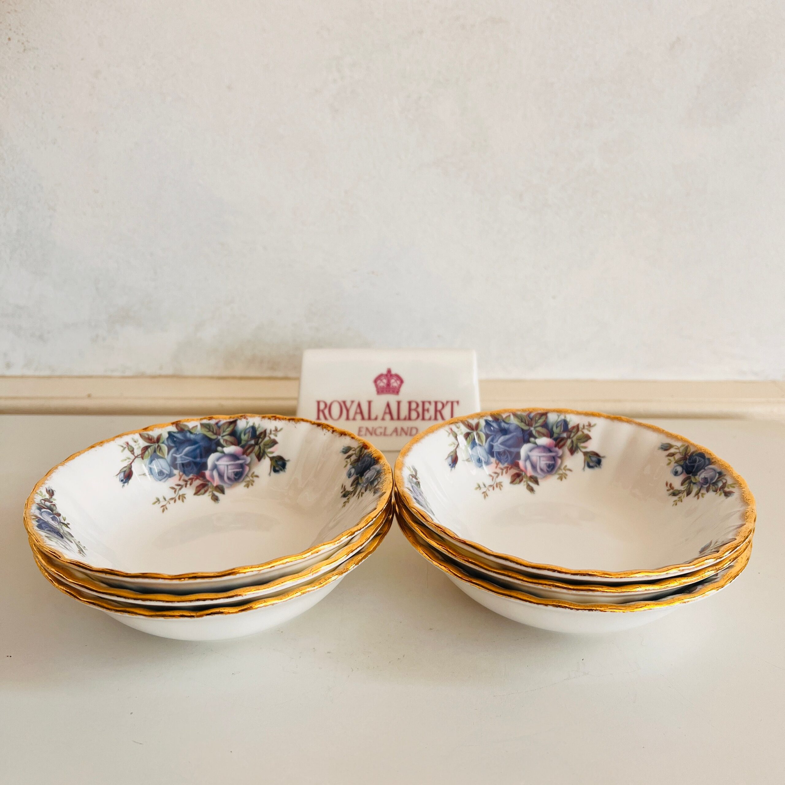 Moonlight Rose Breakfast Bowls Set – Royal Albert Fine China, Blue Floral, Set of 6