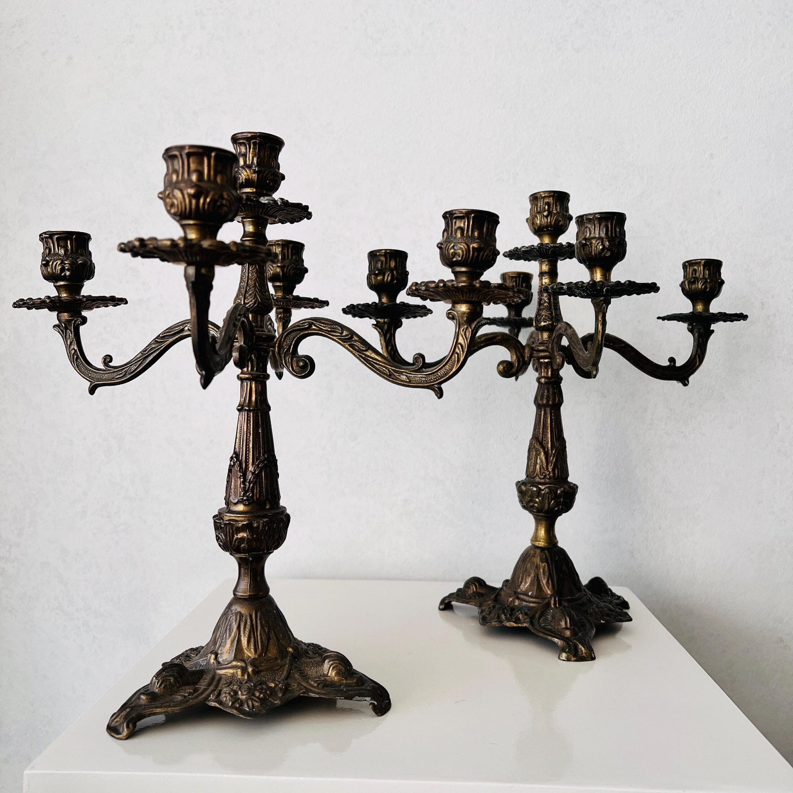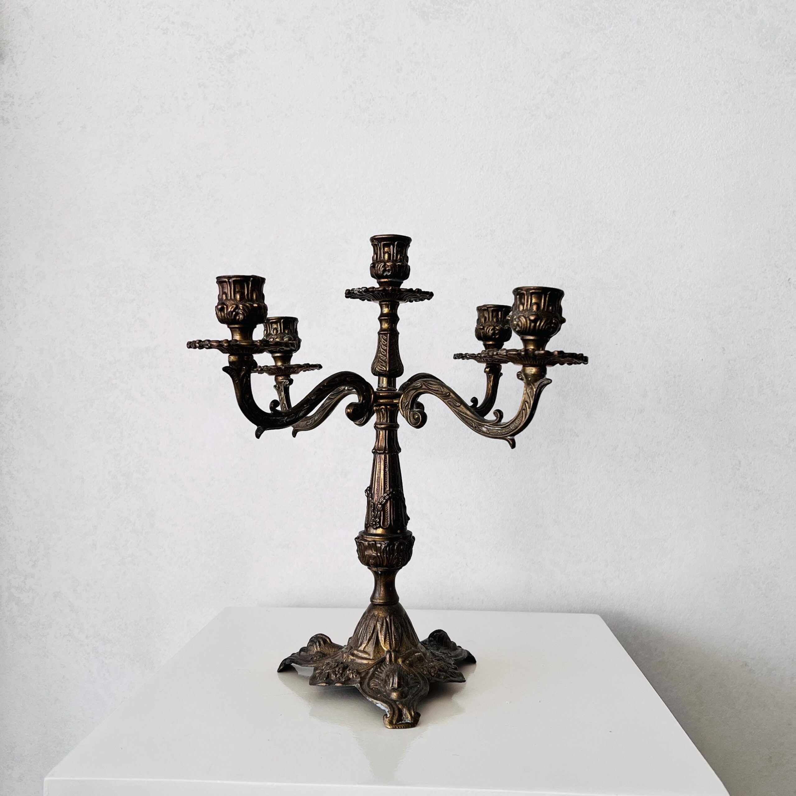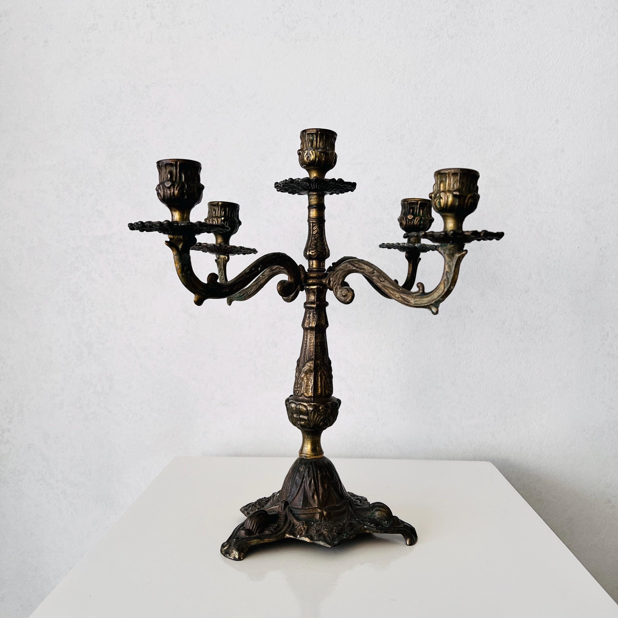 Vintage metal or brass candle holder, vintage candlestick, torchiere-style candle holders. The candlesticks have elegant motifs from the 19th century.