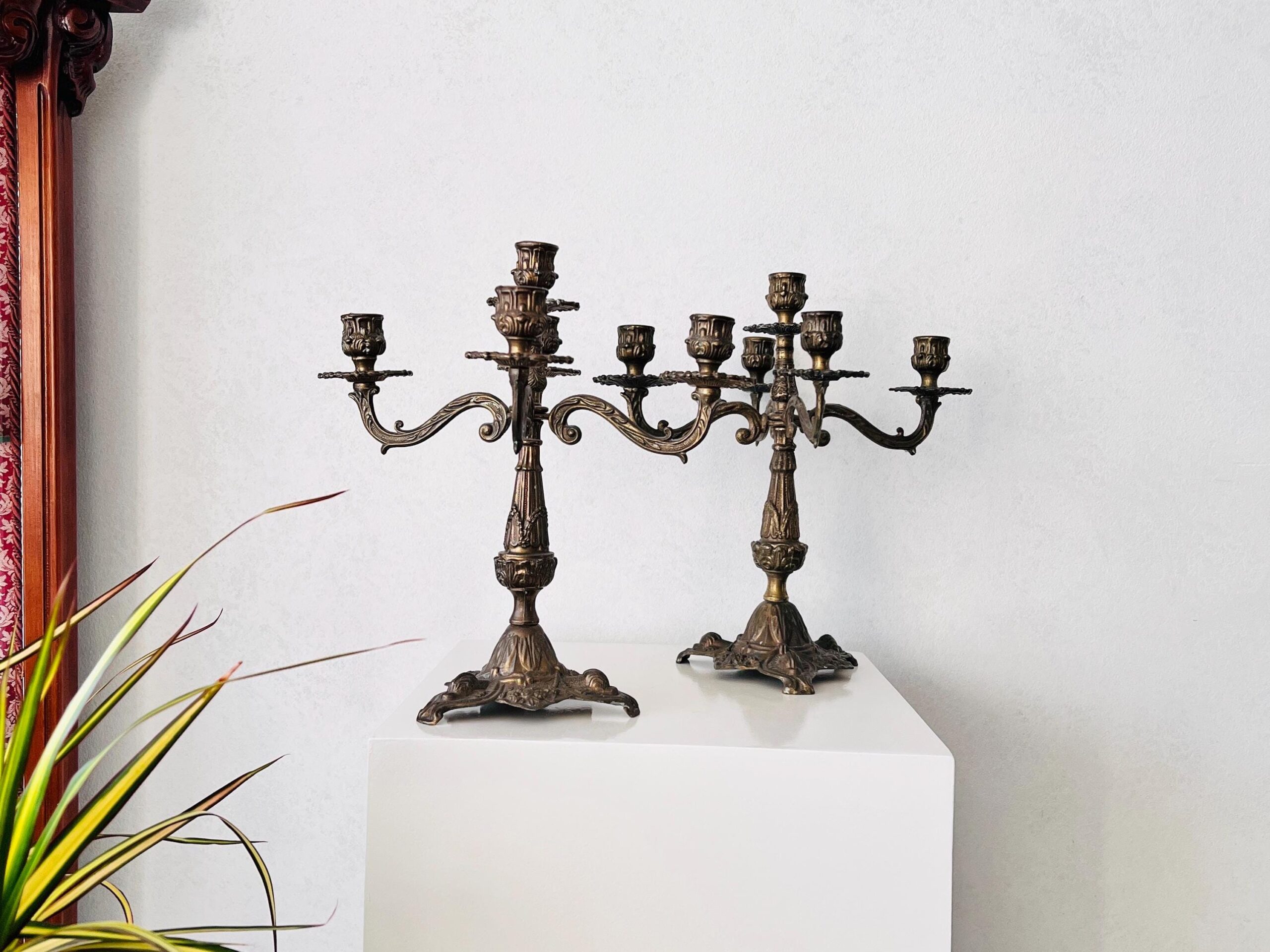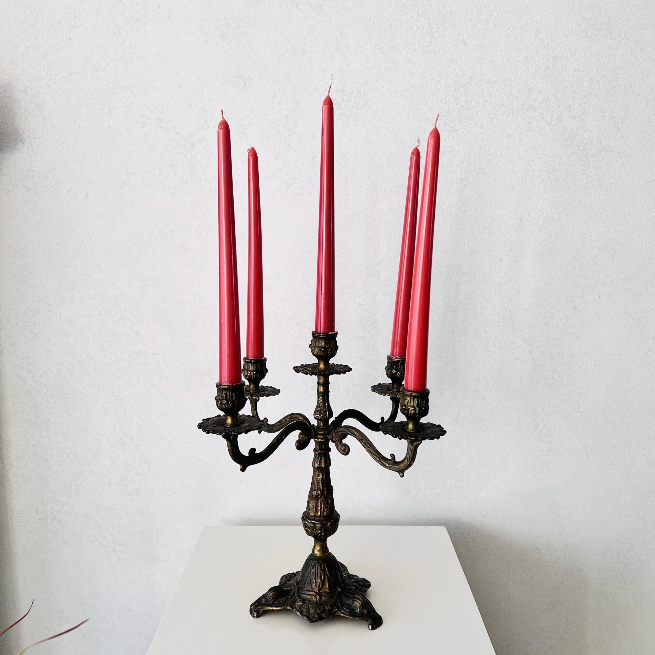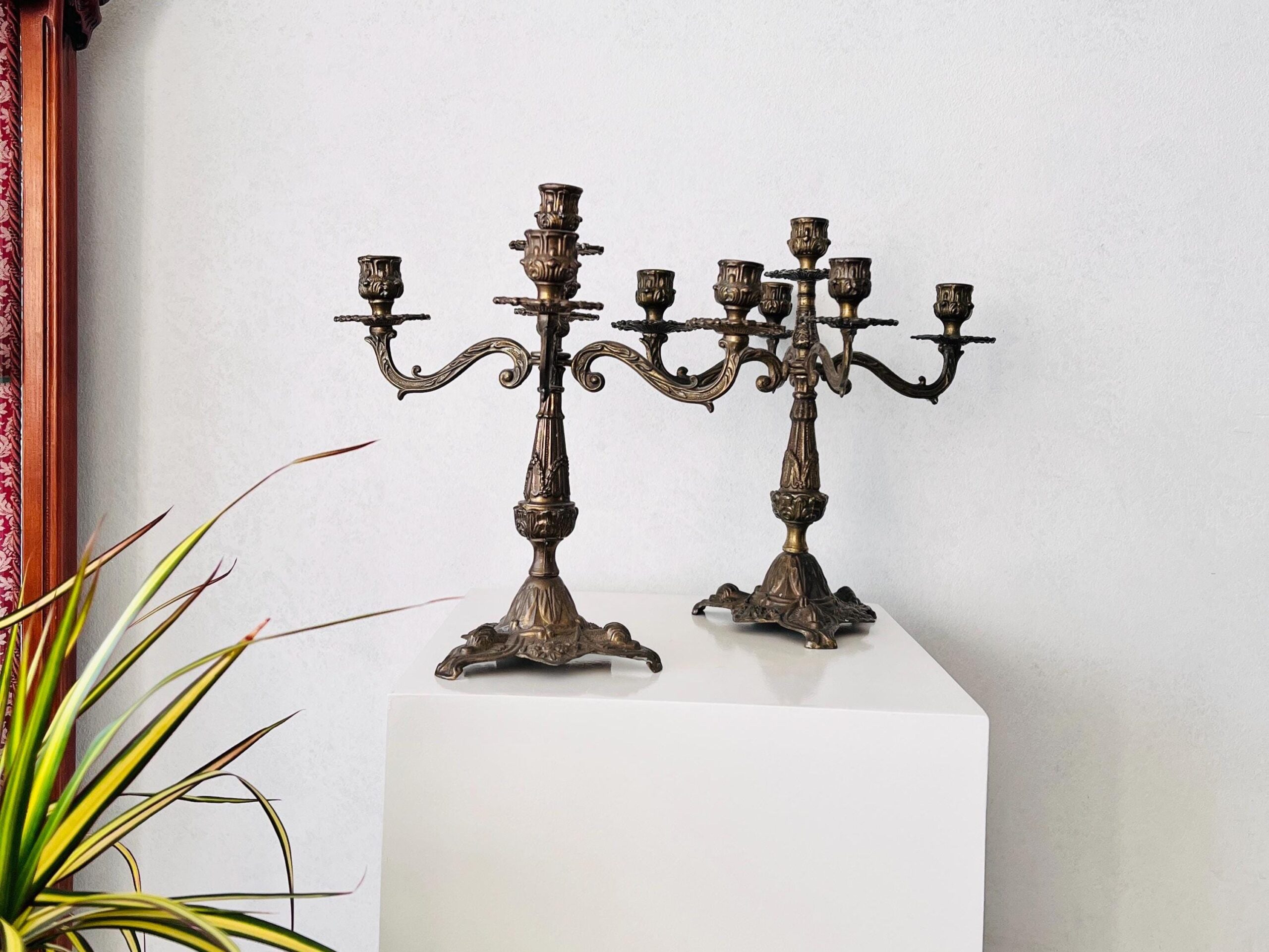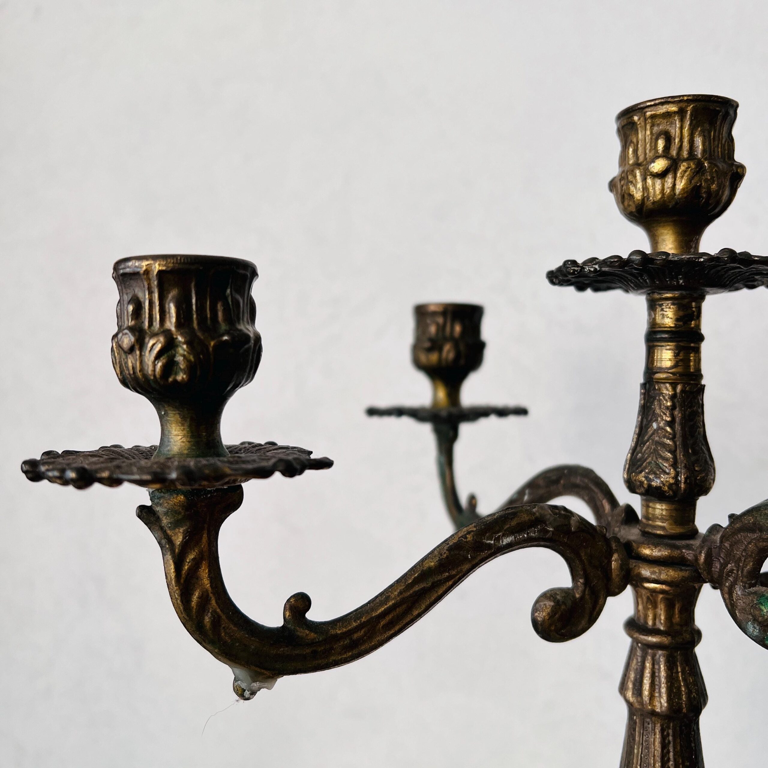 Vintage metal or brass candle holder, vintage candlestick, torchiere-style candle holders. The candlesticks have elegant motifs from the 19th century.