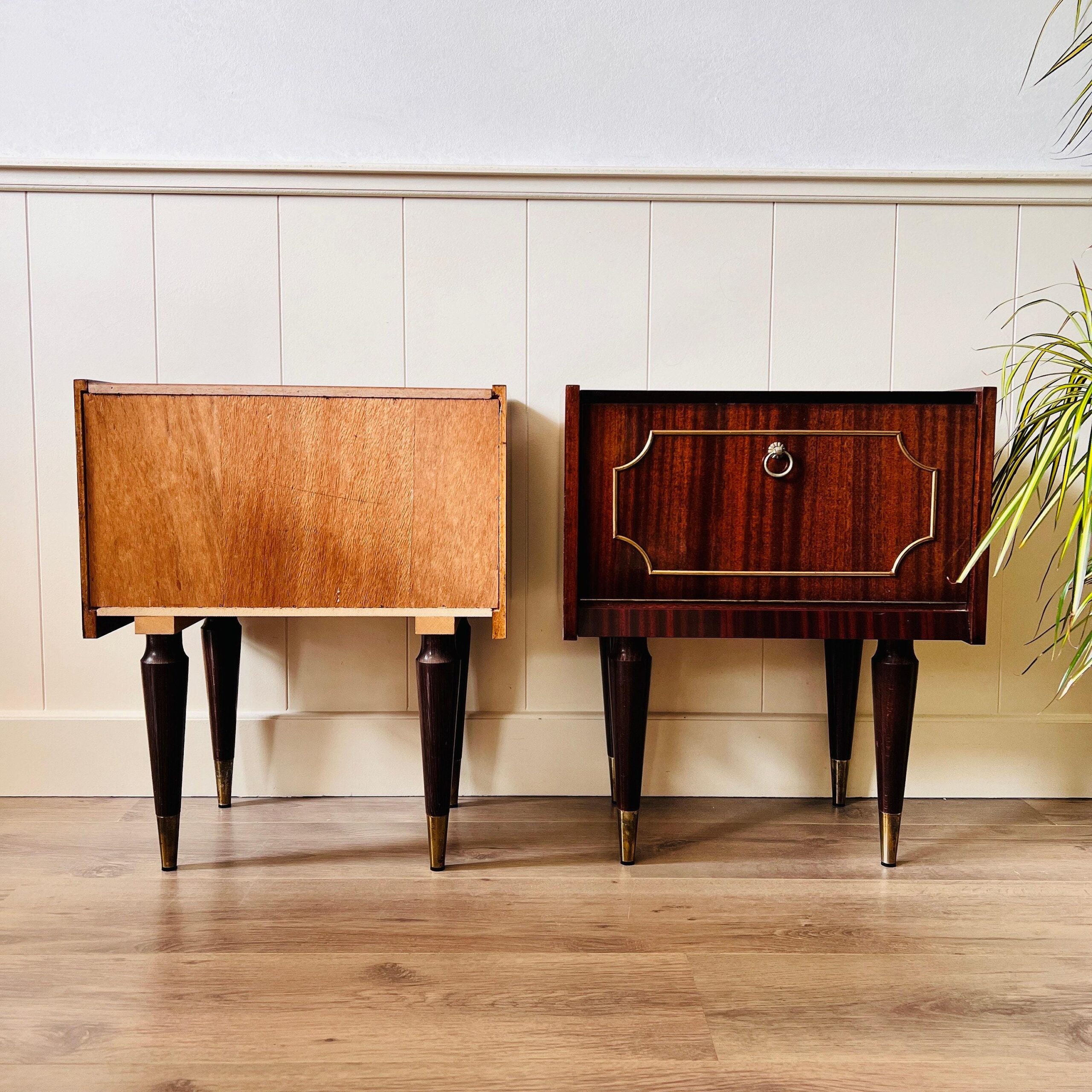 Each nightstand approx. 61 cm H x 50 cm W x 33 cm D (24″ H x 19.7″ W x 13″ D)