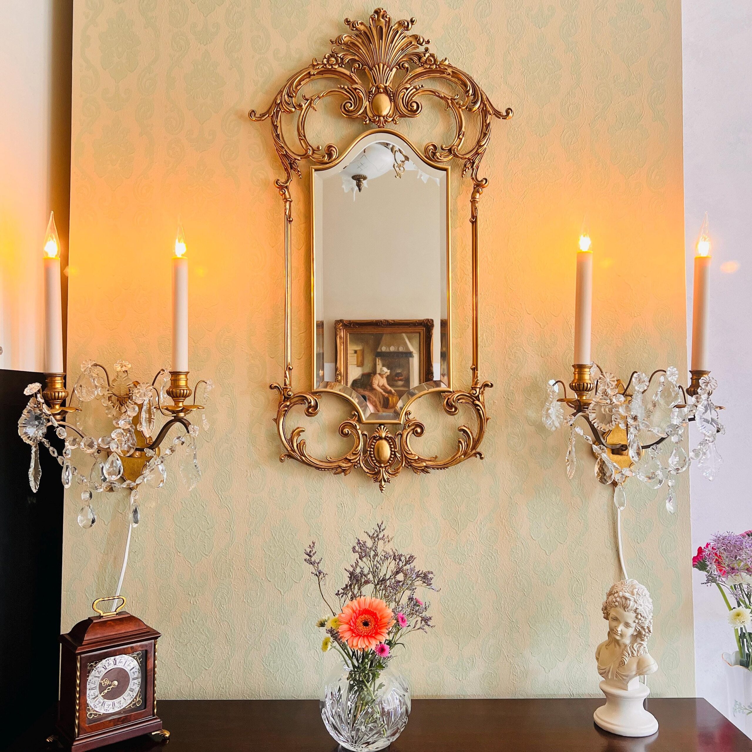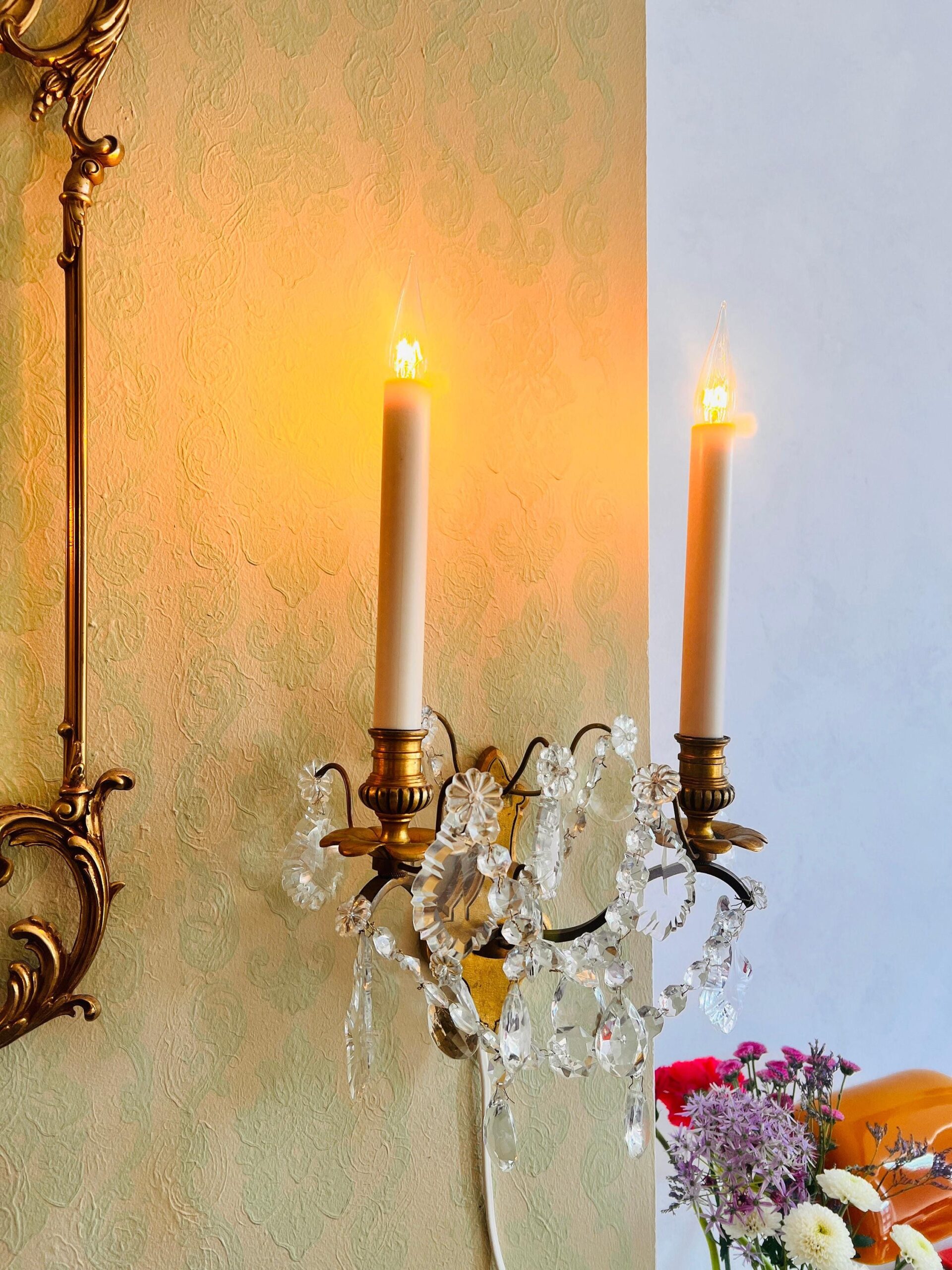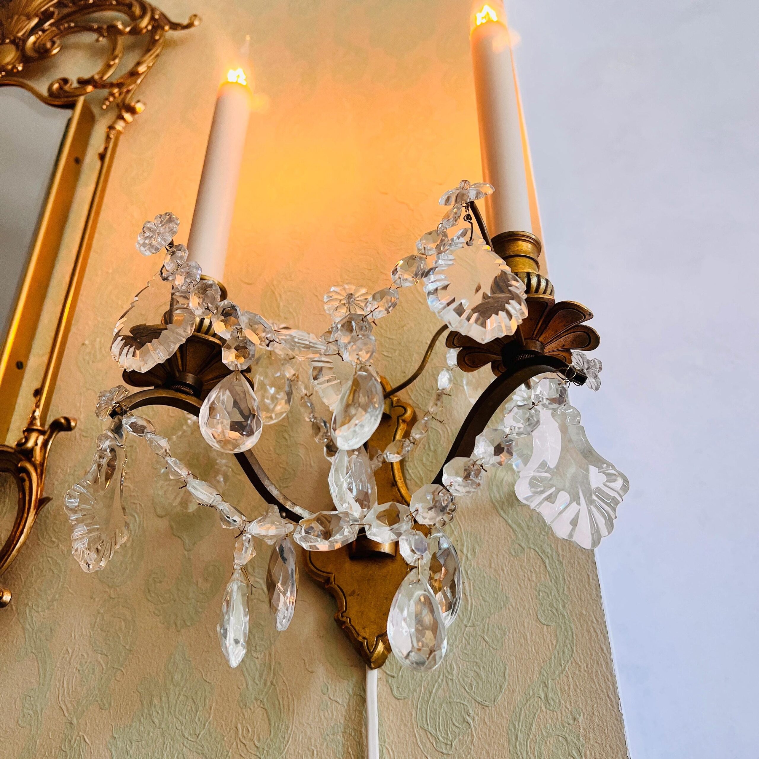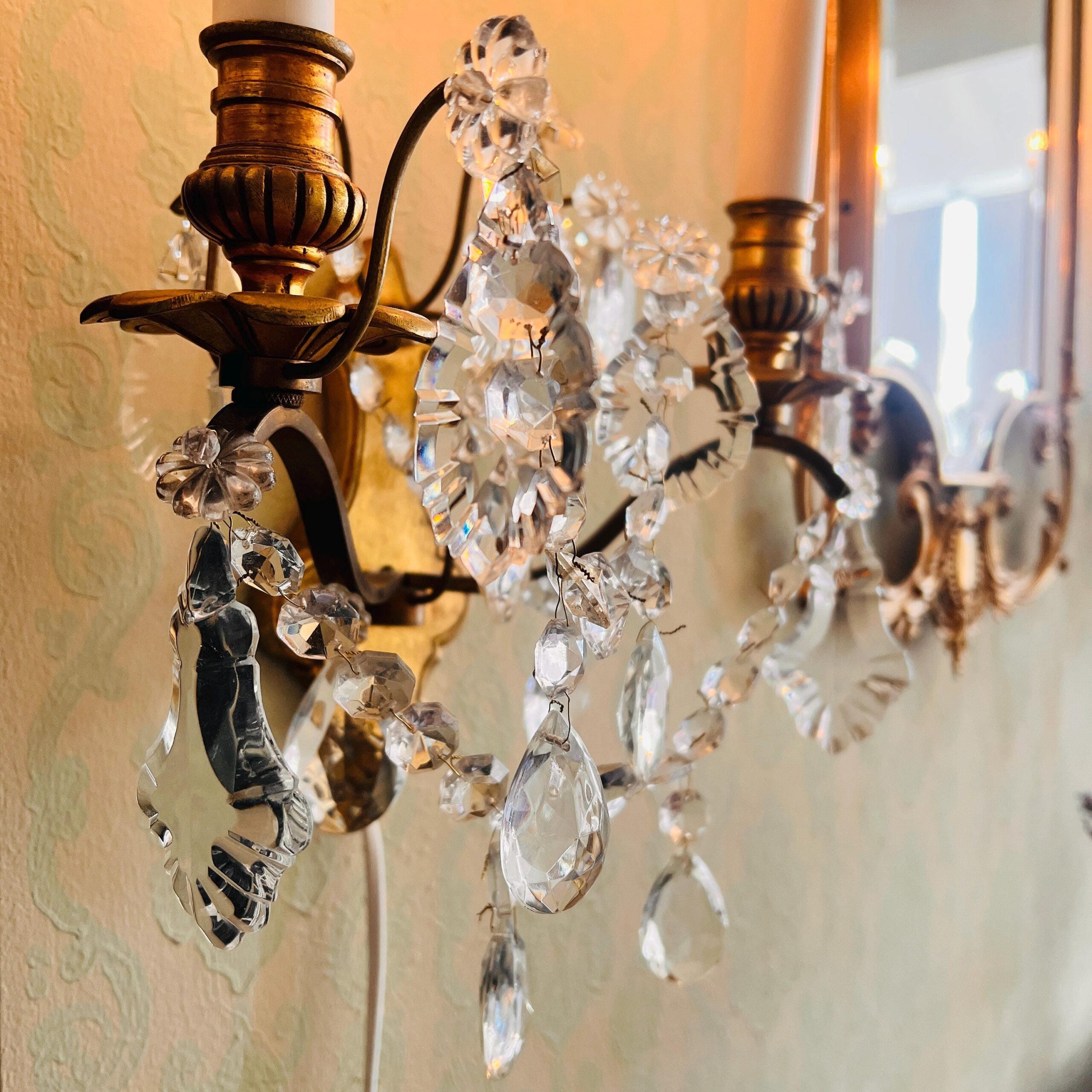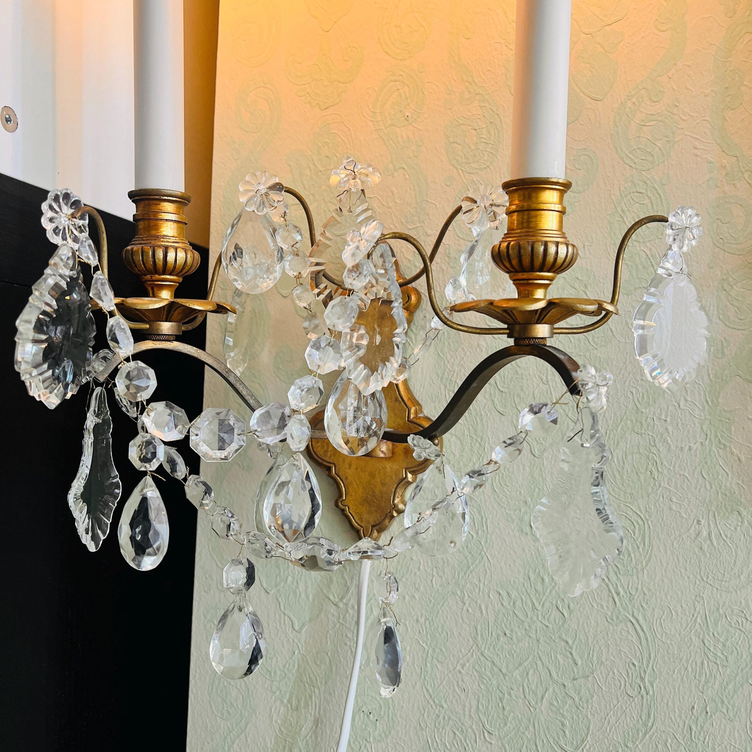 Pair of French Crystal Wall Sconces βArt Nouveau Style Lighting with Brass Arms