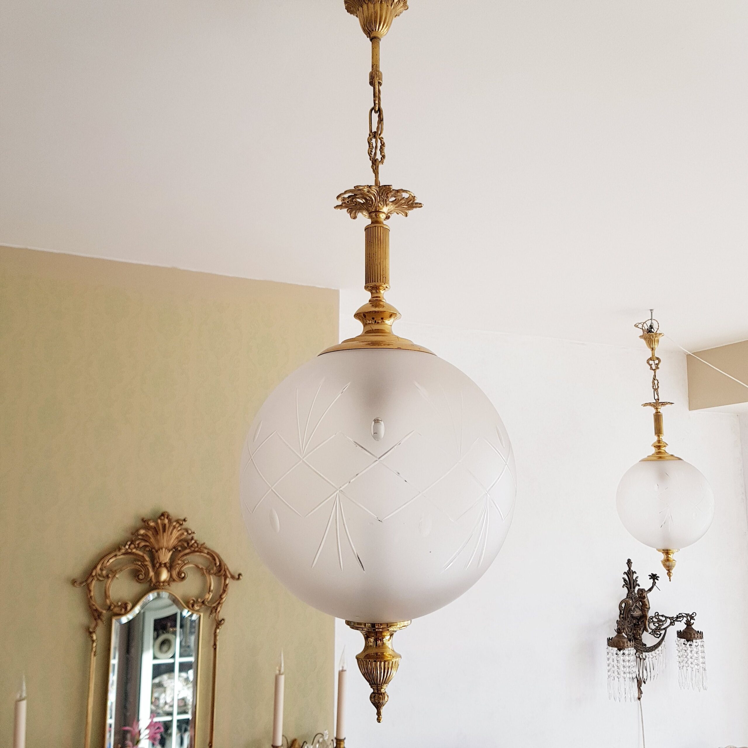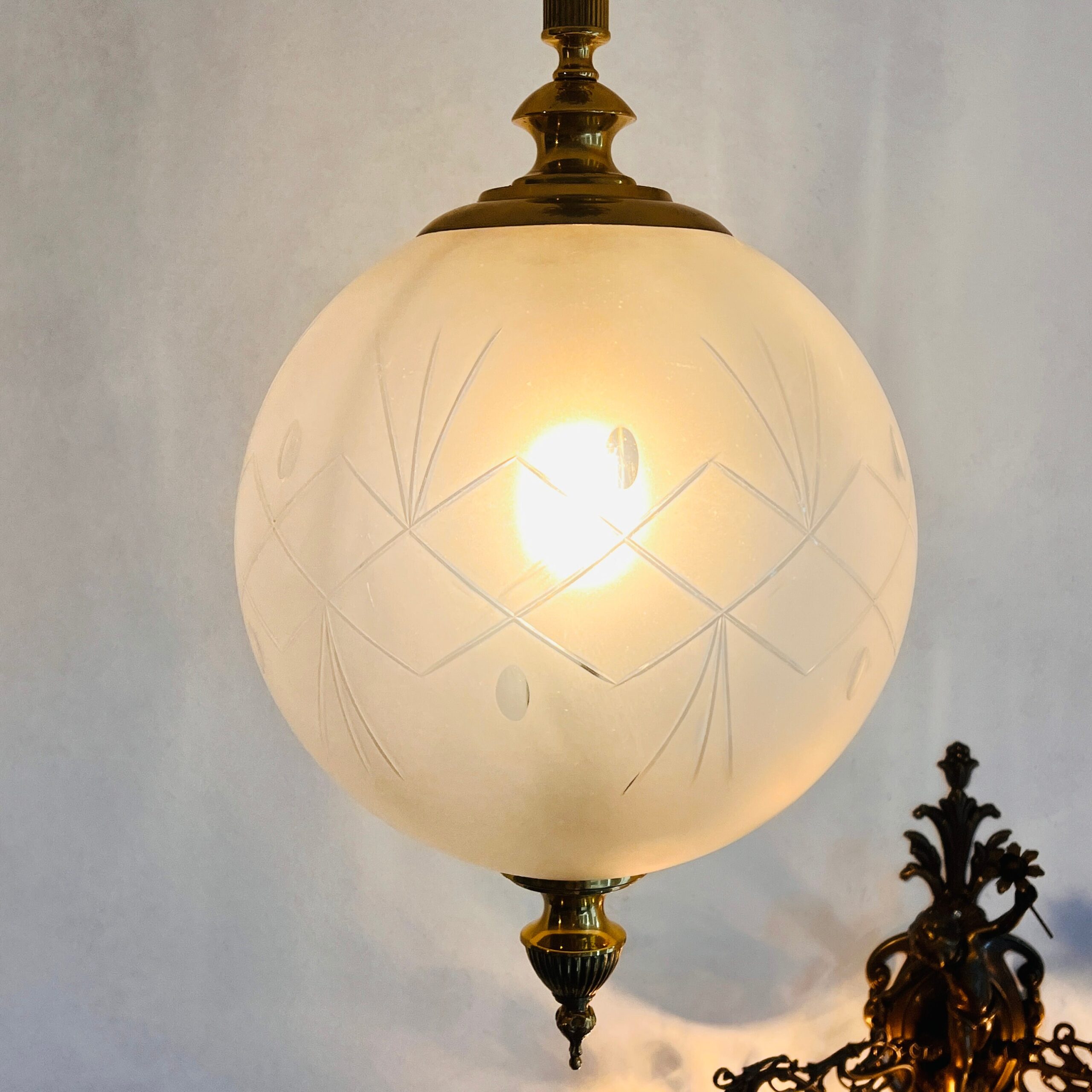 Art Nouveau Frosted Glass Lamps Mid-Century Globe Set Sculptural Table Lighting