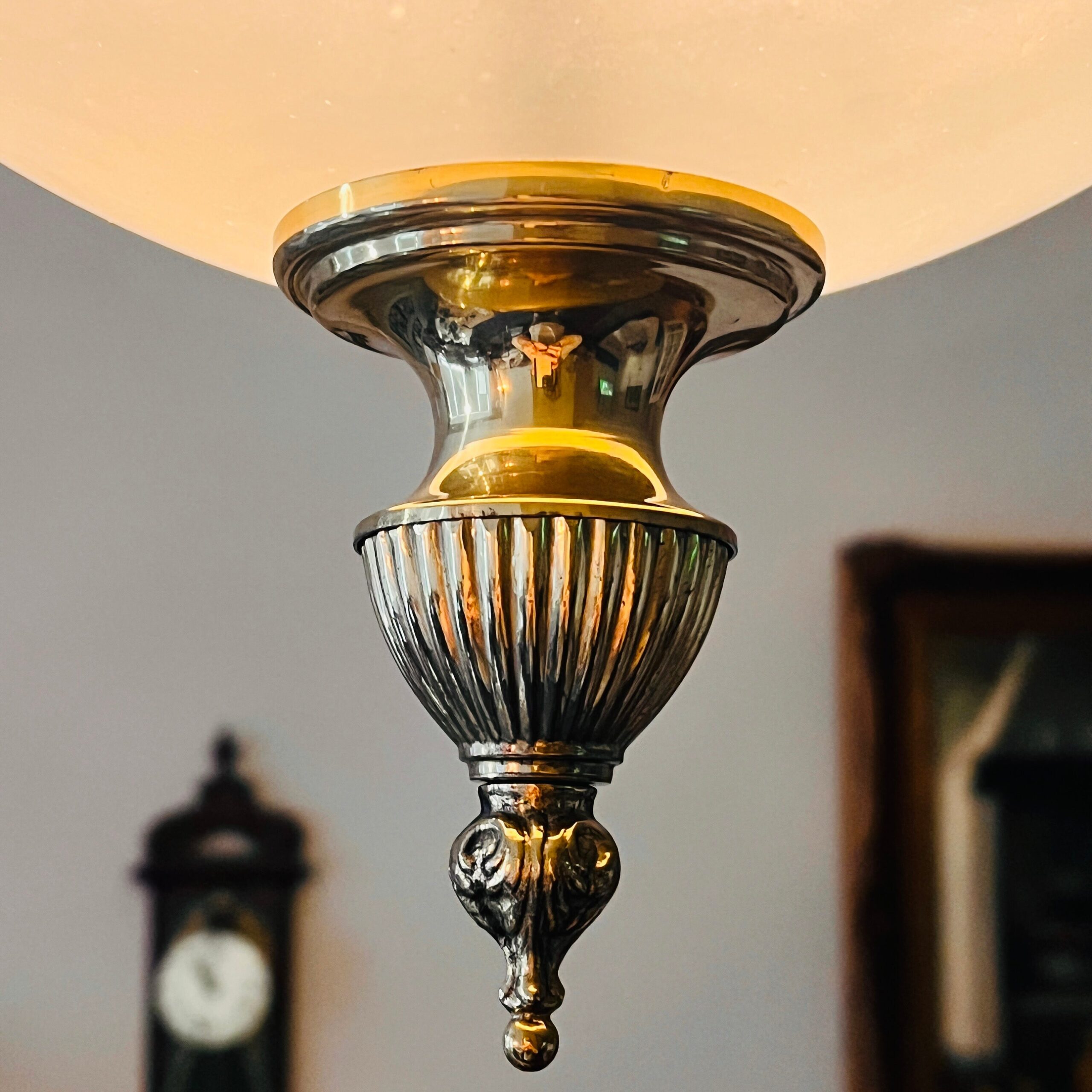A graceful interplay of form and light, this duo of Art Nouveau-style frosted glass lamps captures the elegance of mid-century design. With their rounded glass globes and richly sculptural silhouettes, they offer a luminous softness that transforms any room – whether flanking a bed, anchoring a console, or elevating a writing nook.
