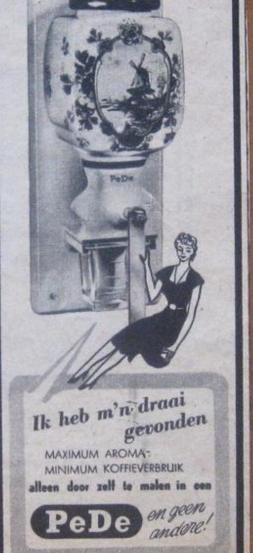 PeDe en geen andere! Vintage wall coffee grinder Dutch PeDe orange motif ceramic grinder bar decor wall decor