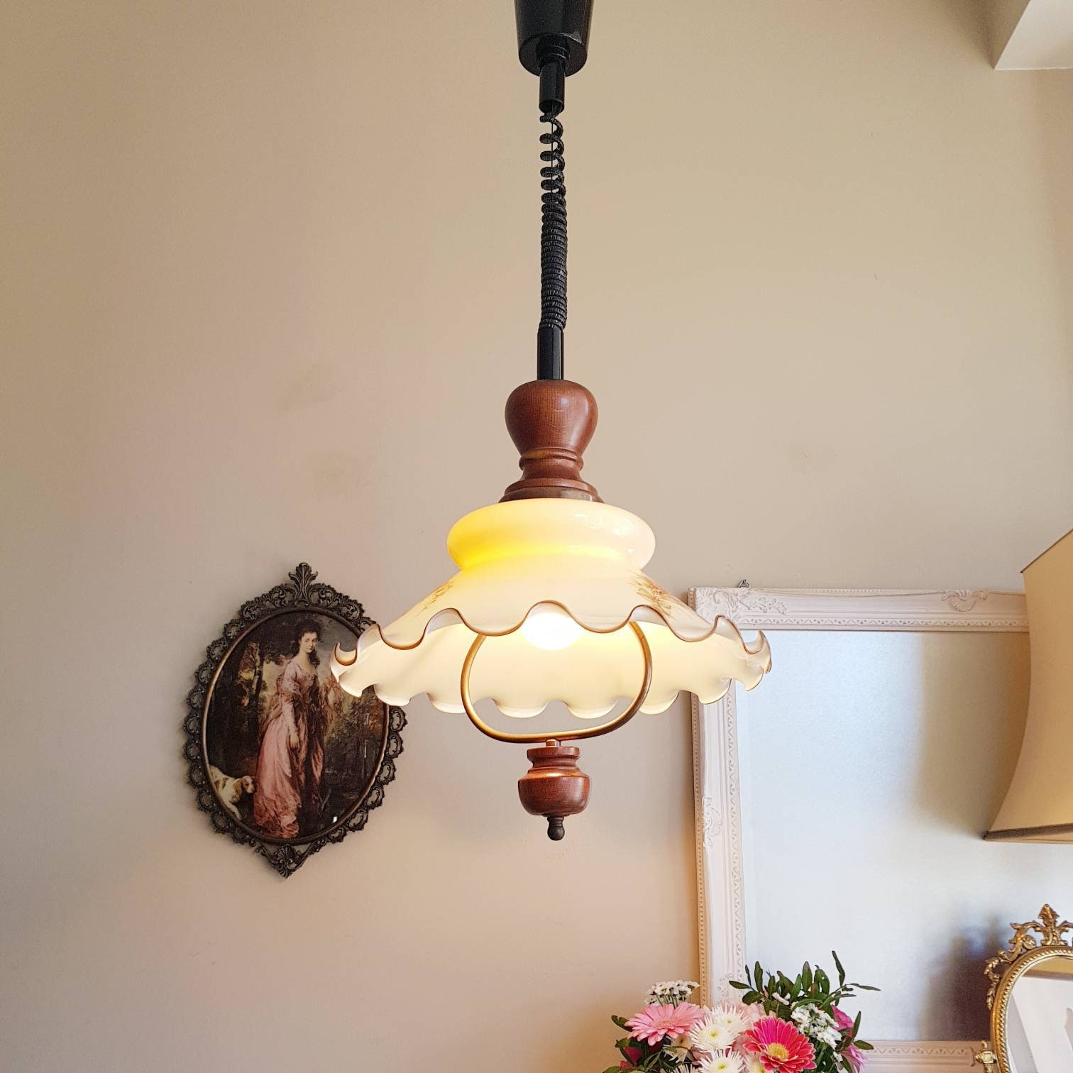 • Style: pull-down pendant lamp from mid century era